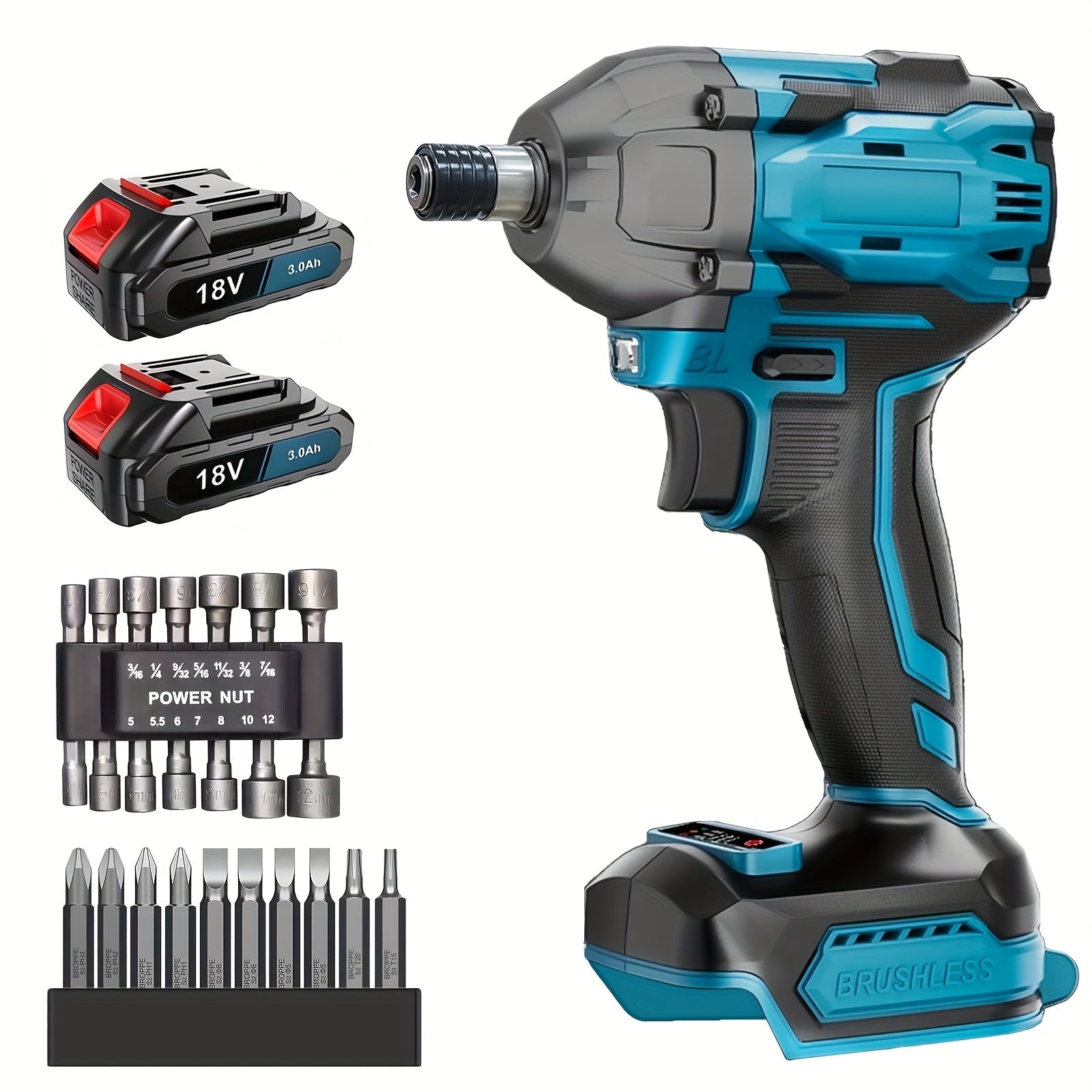 Cordless Impact Driver 18V, Velocità Variabile (0-2800RPM), Con Luce di Lavoro a LED, 10 Pezzi di Punte per Cacciaviti e 14 Accessori per Cacciaviti, Batteria e Caricatore da 2x3000mAh Compatibili con Makita