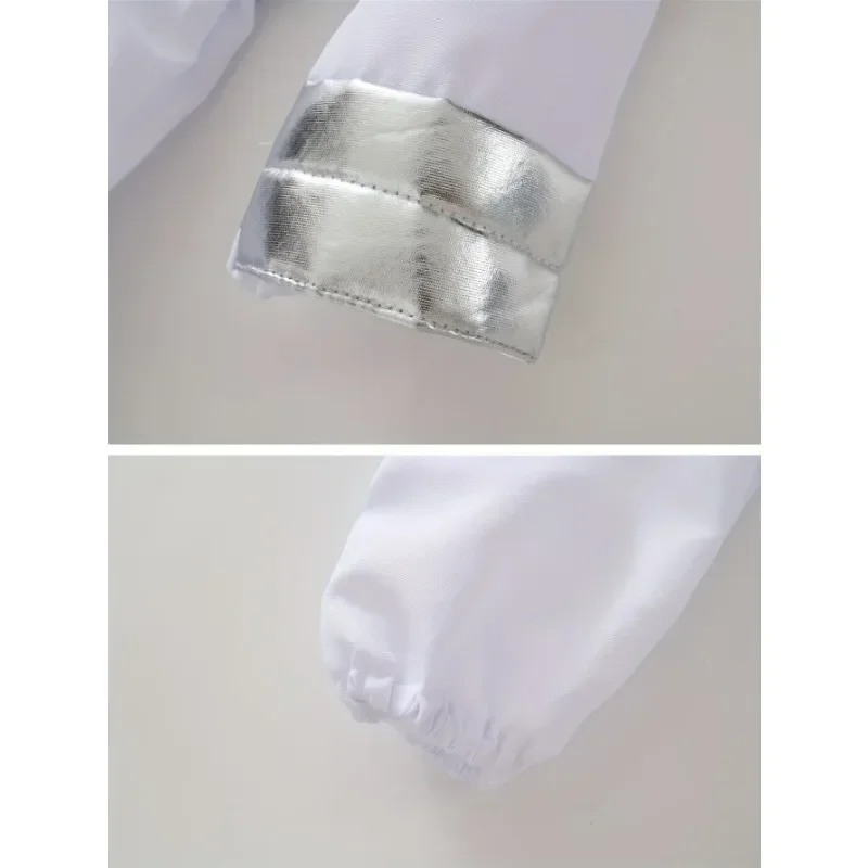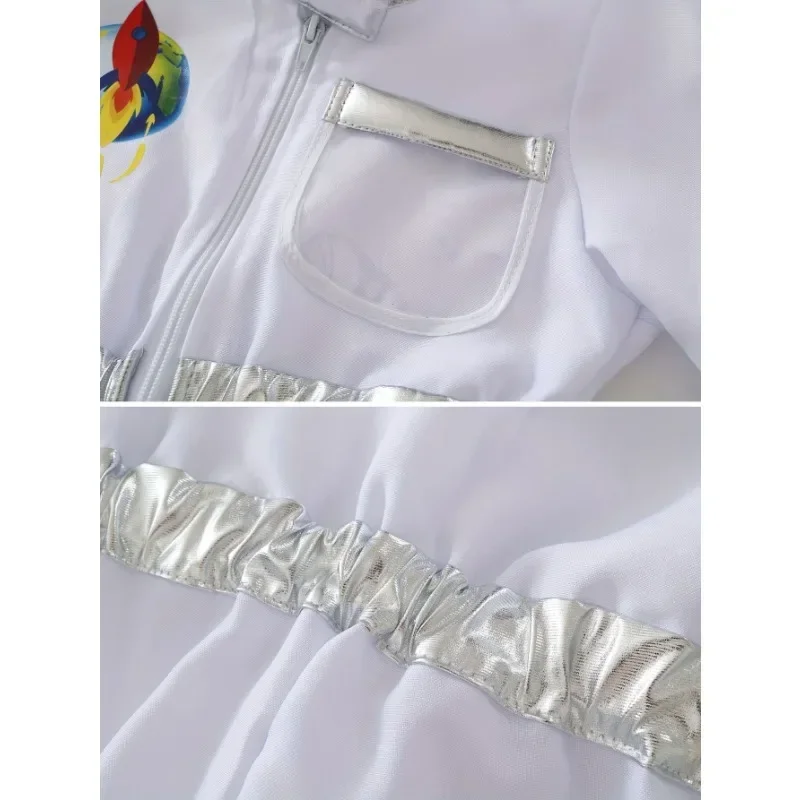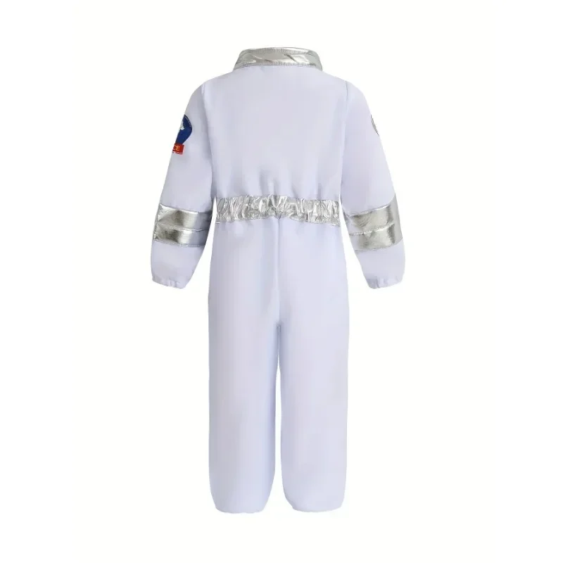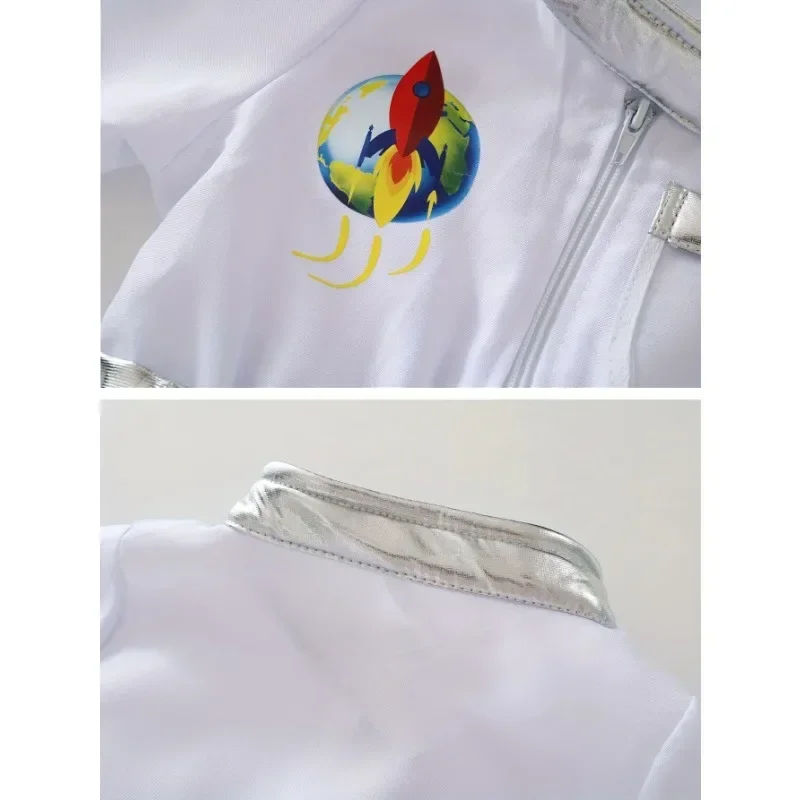 Costume da astronauta americano per bambini, costume da astronauta, stampa deluxe, cartone animato, bianco, tuta, gioco di ruolo di Halloween, guanti da avventura, set di cappelli