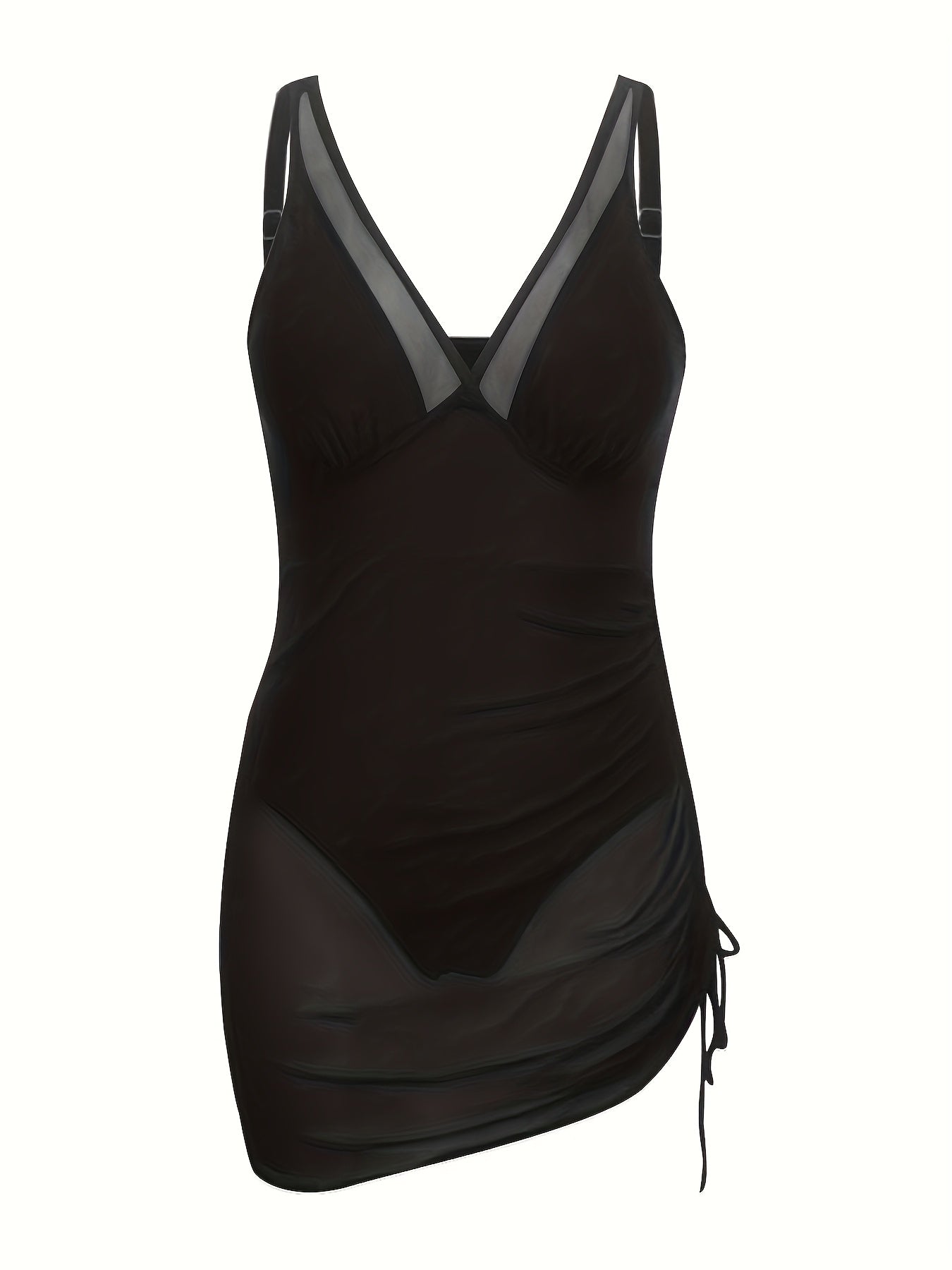 Costume da Bagno Intero Donna 2025 Sexy Slim-Fit con Pannelli in Rete - Regolabile con Cordini, Tinta Unita Elasticizzata per Spiaggia e Piscina, Abbigliamento Elegante, Vestibilità Comoda