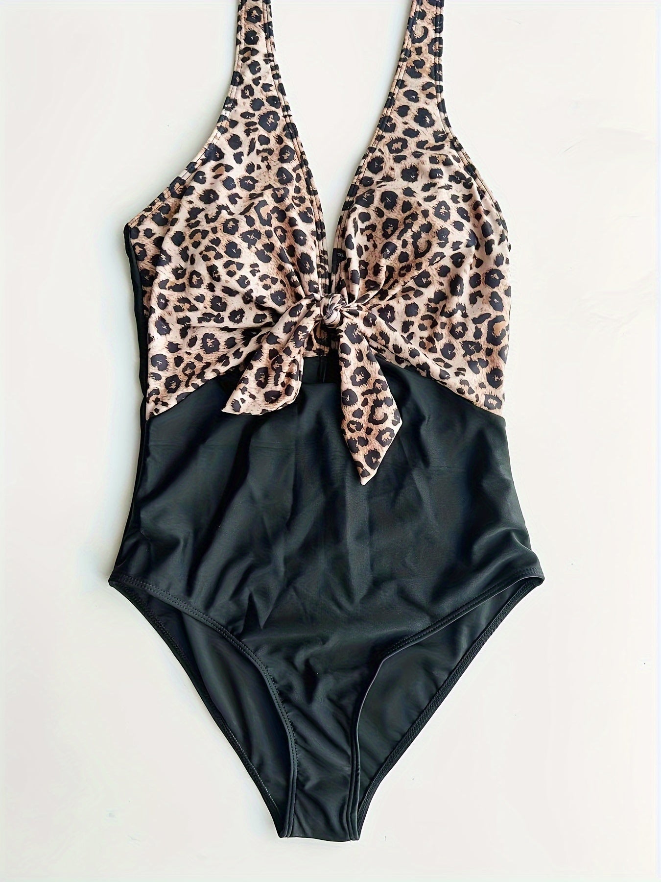 Costume da Bagno Intero Donna con Stampa Leopardata e Scollo a V - Costume Elasticizzato Lavabile in Lavatrice per Spiaggia e Piscina, Top da Nuoto, Abbigliamento da Piscina, Moda Comoda e Confortevole