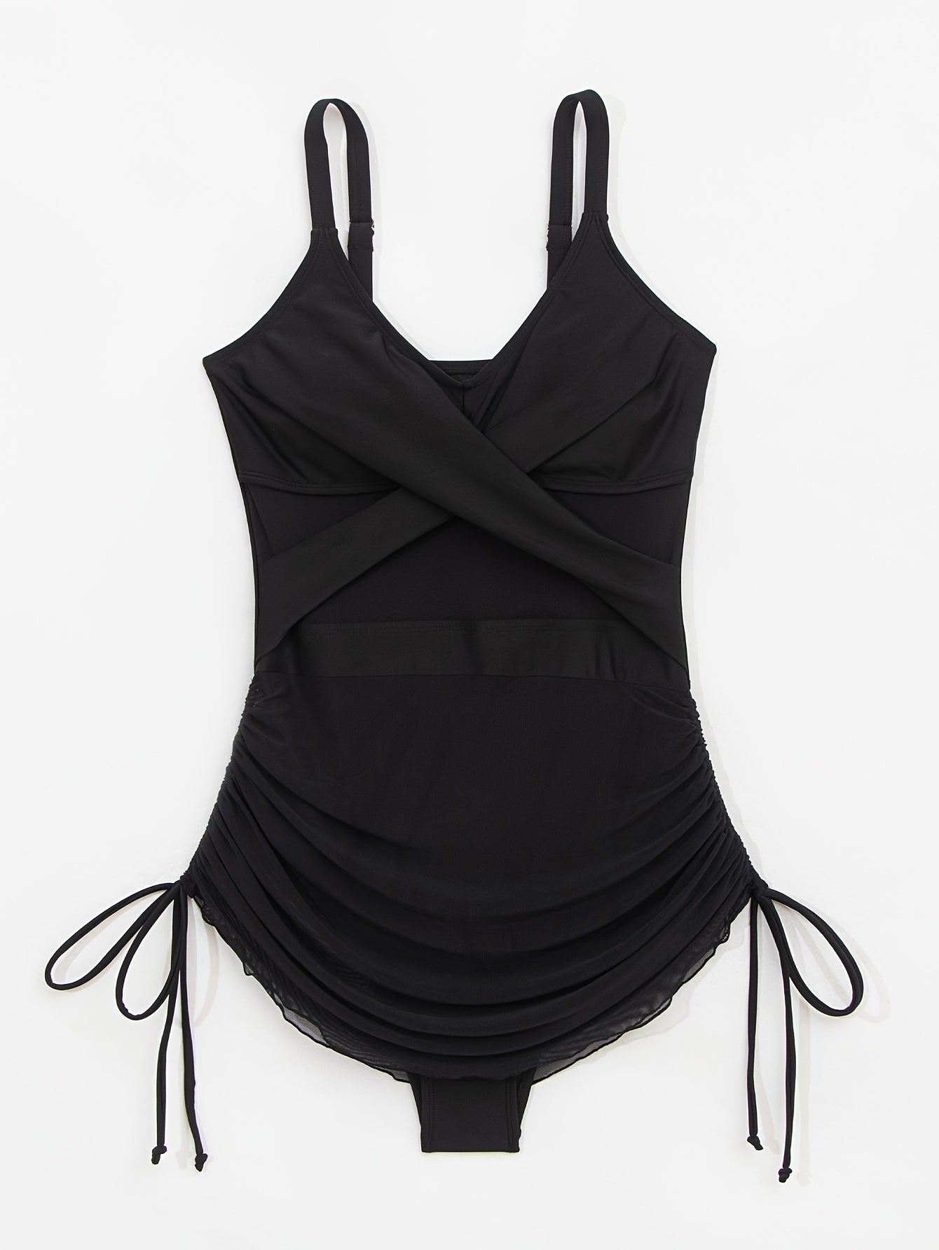 Costume da bagno nero a una sola pezza con cuciture a rete incrociata e cordoncino sul petto, costume da bagno alla moda