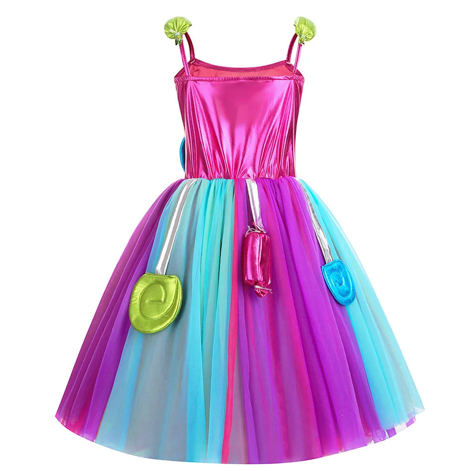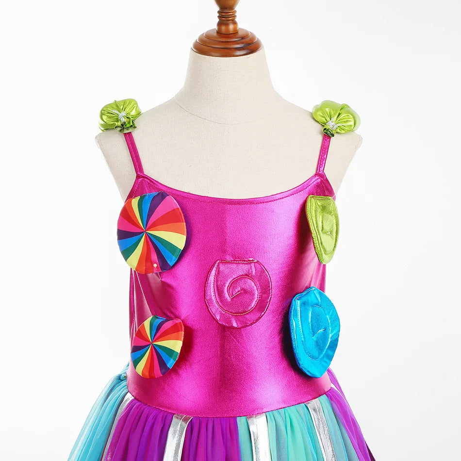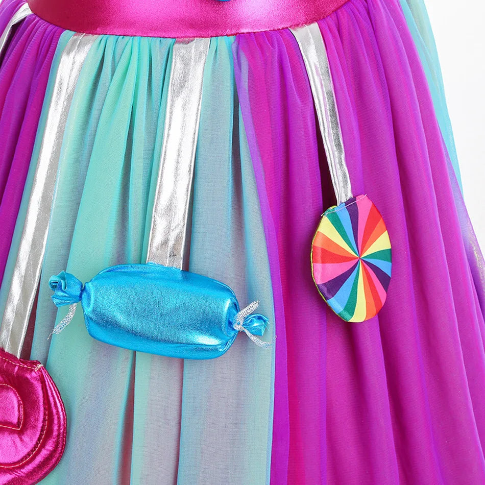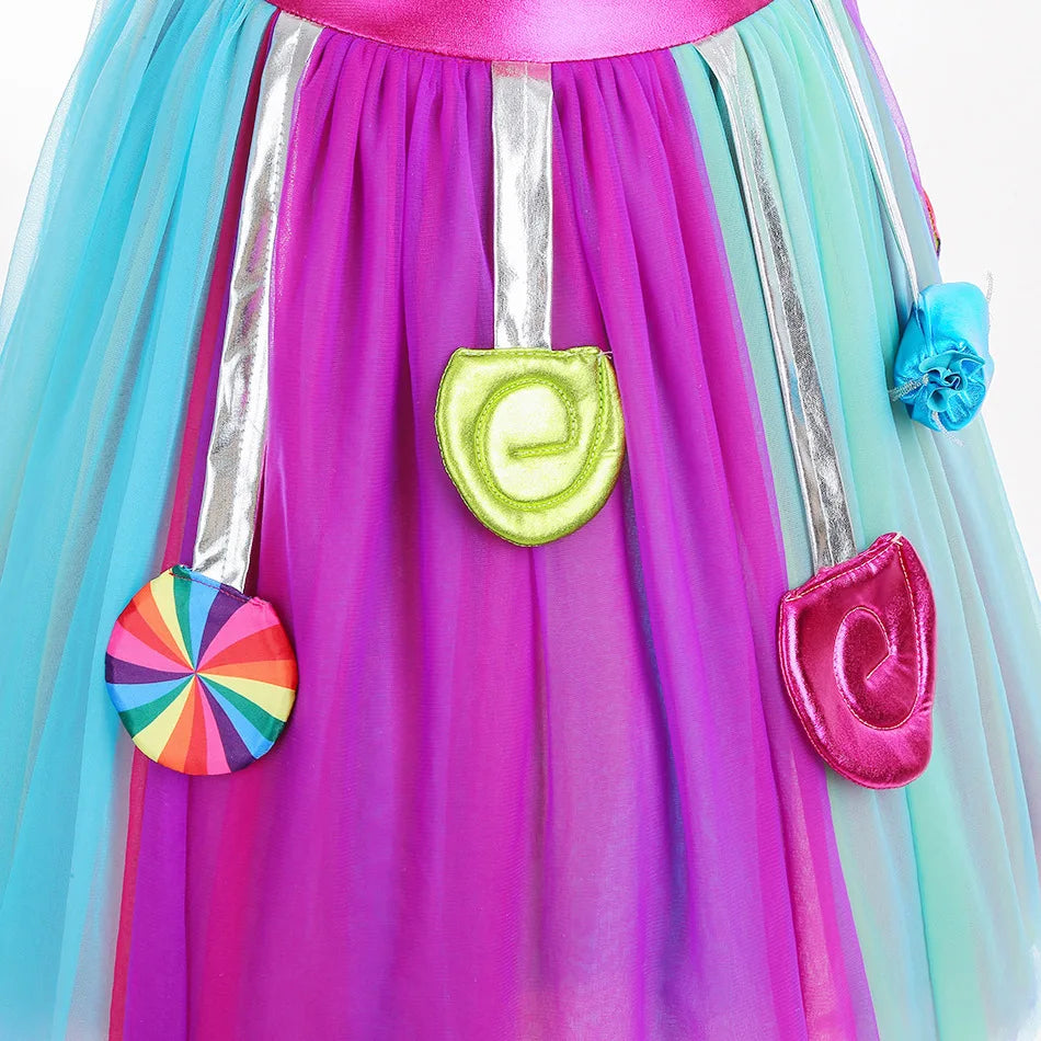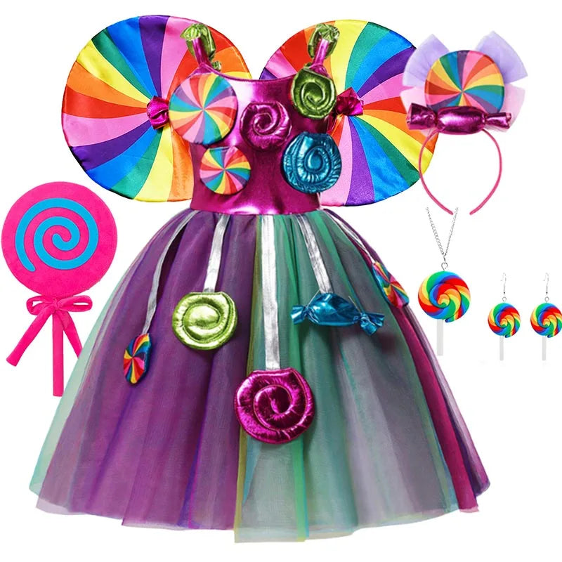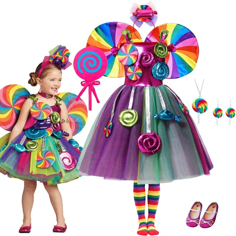 Costume da lecca-lecca arcobaleno per ragazze Abito da principessa Purim Festival Candy Vestido Fantasia Carnevale Compleanno Bambini Fantasia Ali Outfit