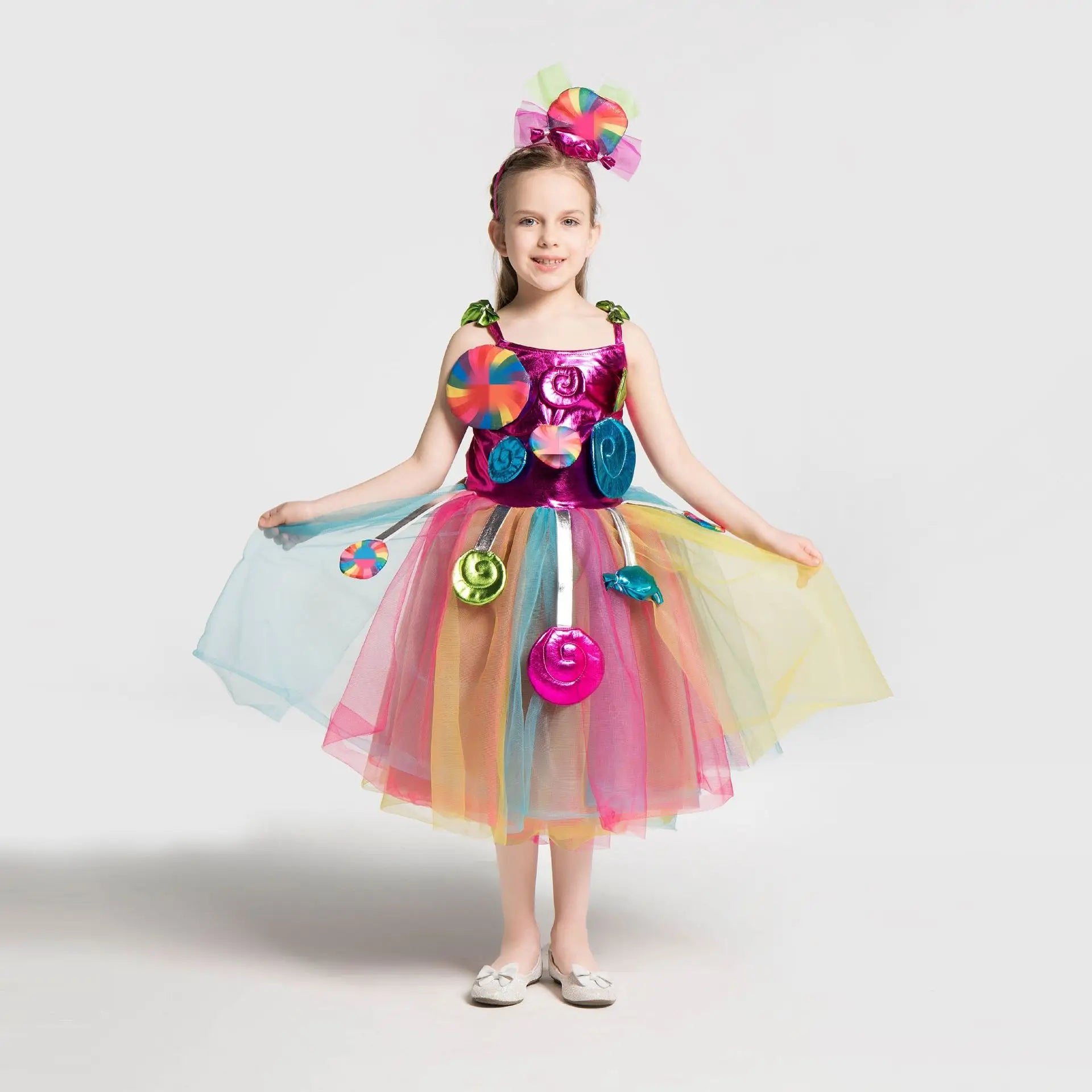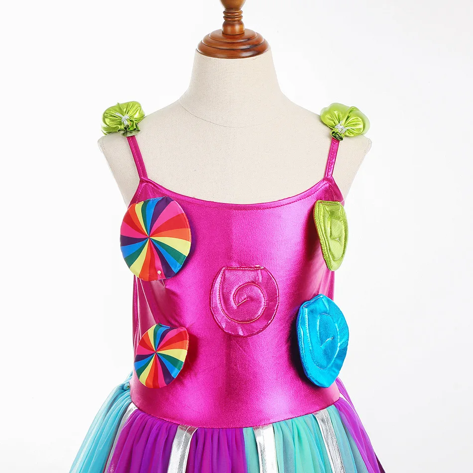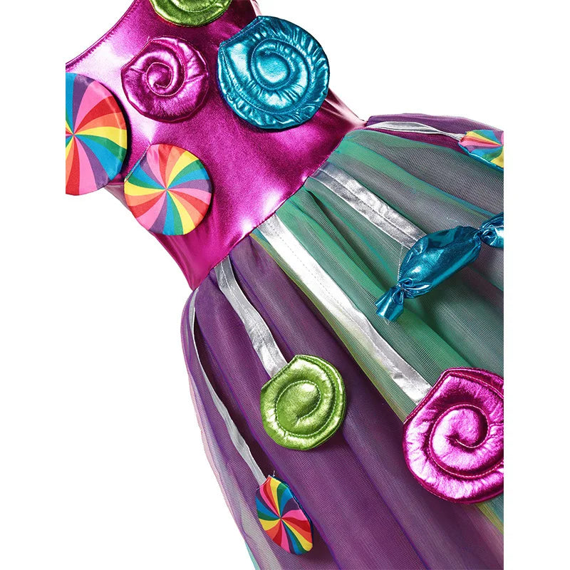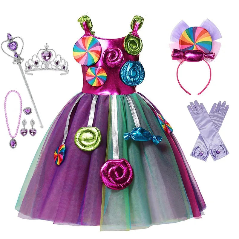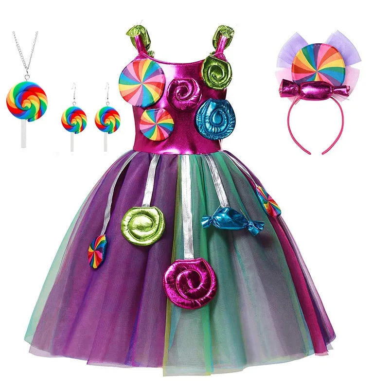 Costume da lecca-lecca arcobaleno per ragazze Abito da principessa Purim Festival Candy Vestido Fantasia Carnevale Compleanno Bambini Fantasia Ali Outfit