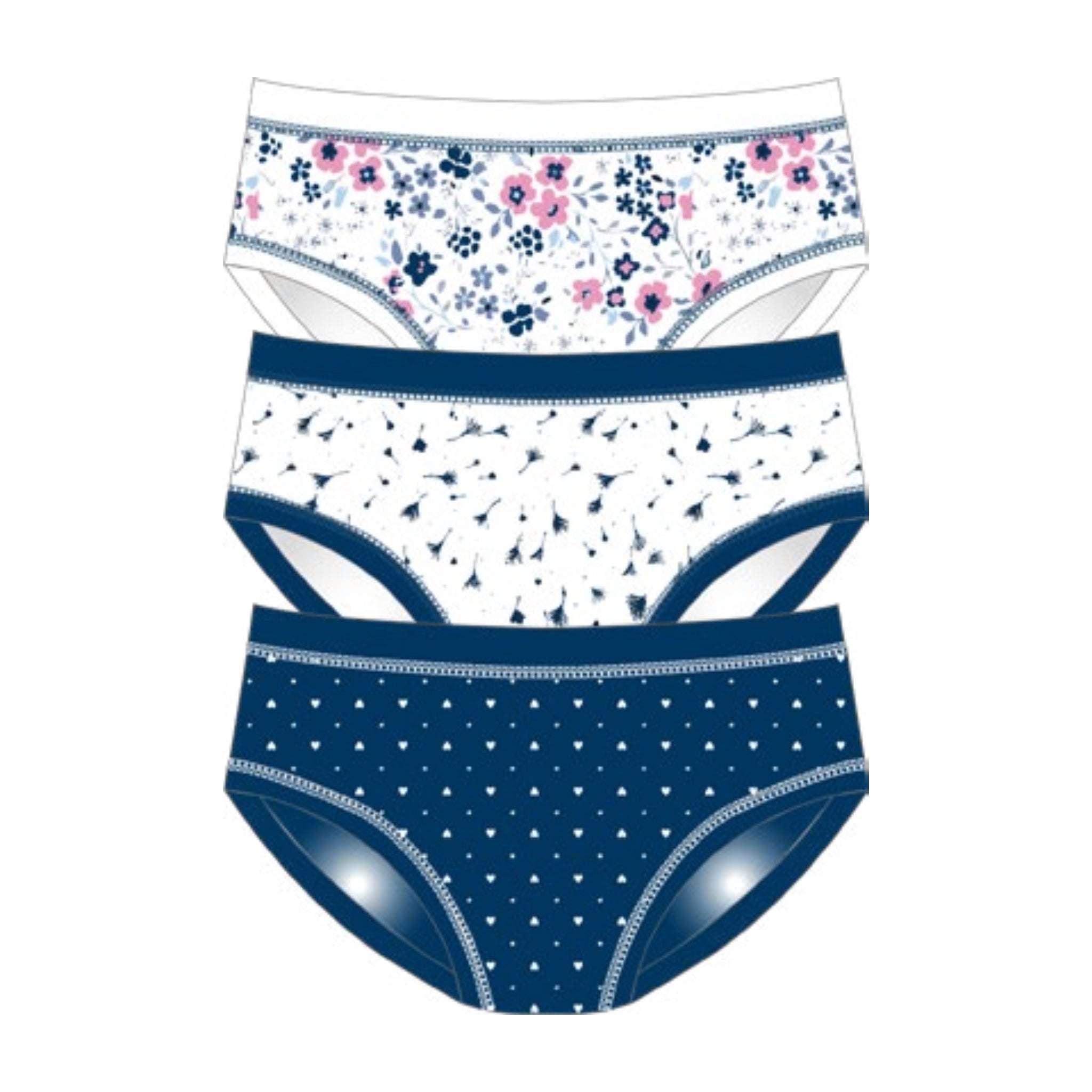 -cotonella Donna- Confezione 3 Pezzi Slip Midi In Puro Cotone Bielastico (3 Disegni) Art. 3363 E503 3h100