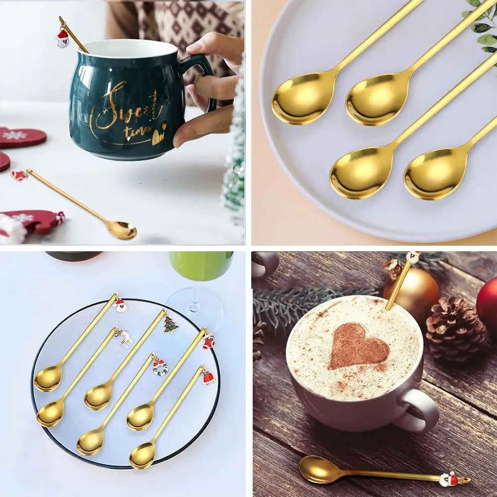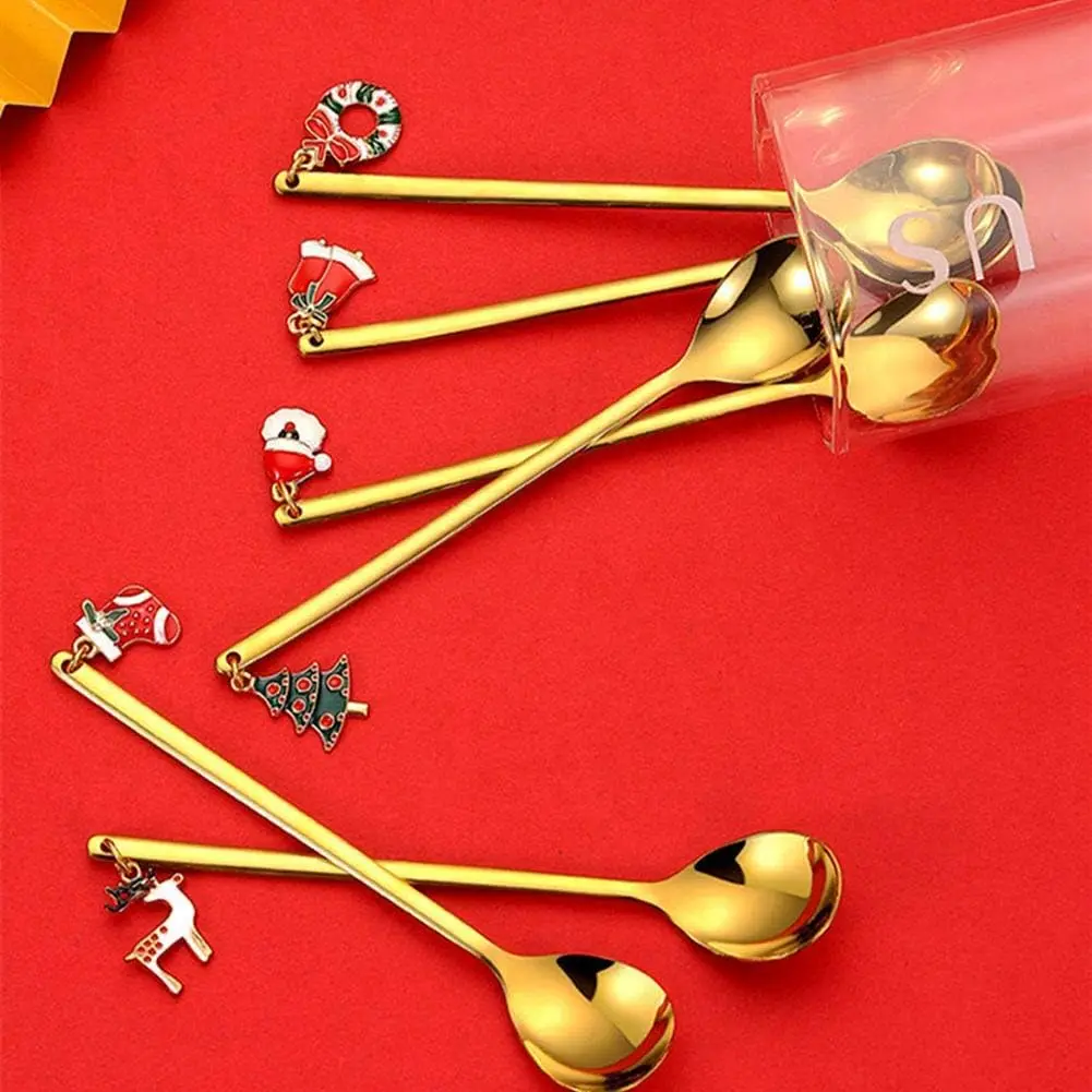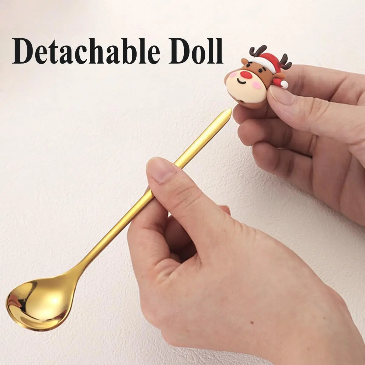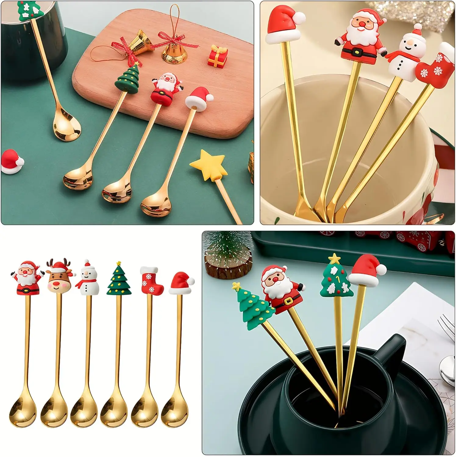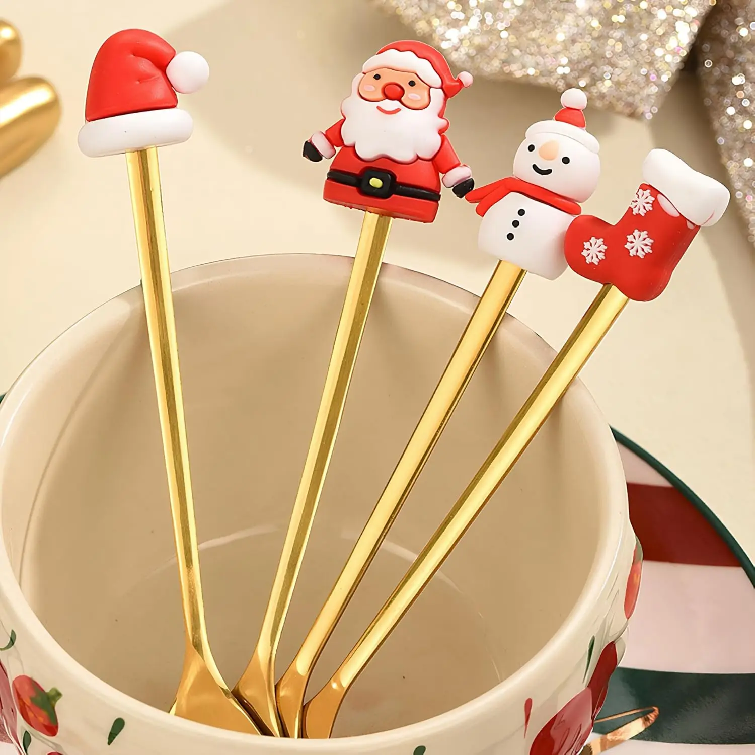 Cucchiaini da caffè e forchette per torte con decorazioni natalizie da 4 pezzi con ornamenti per bambole di Natale, set di posate in metallo dorato, forniture per feste