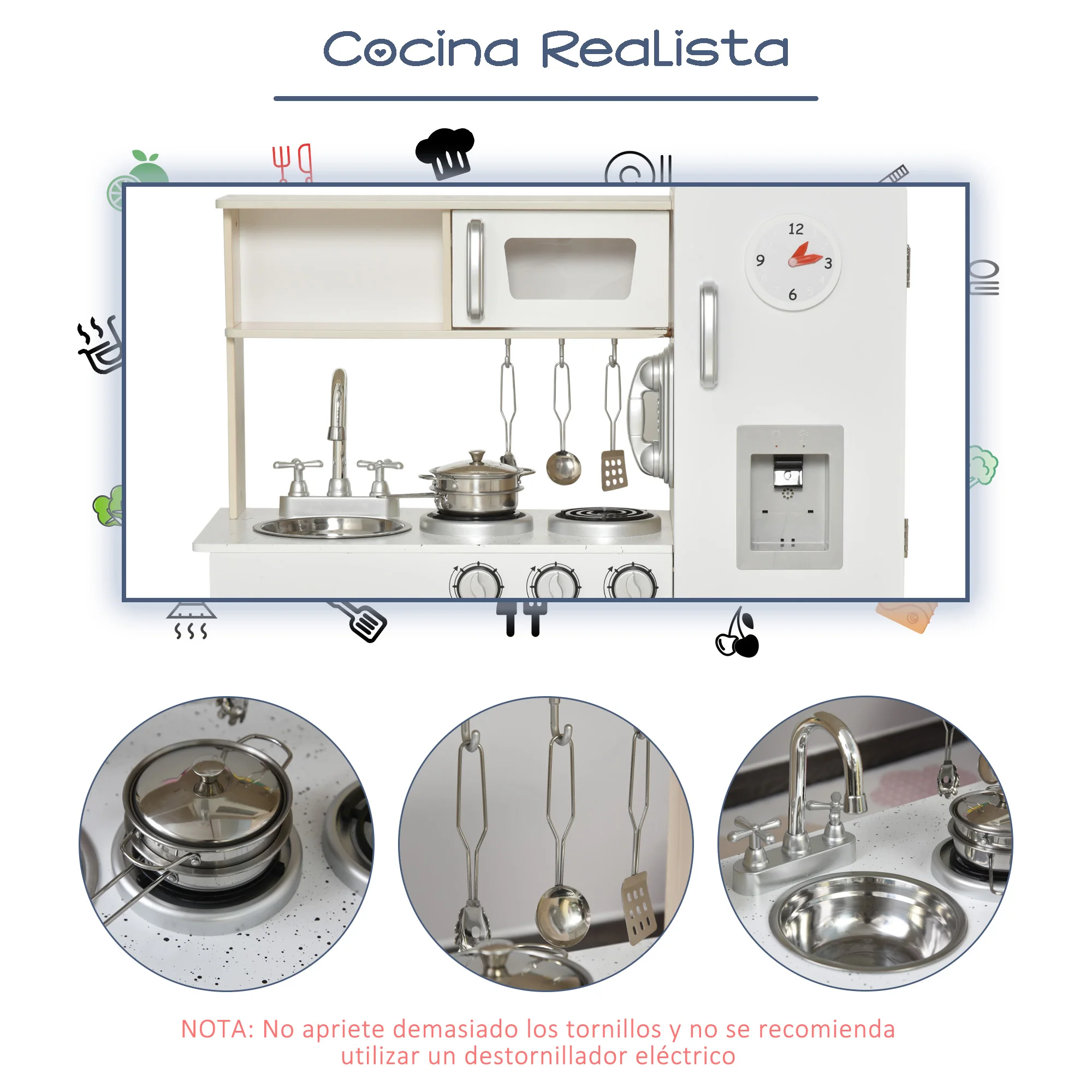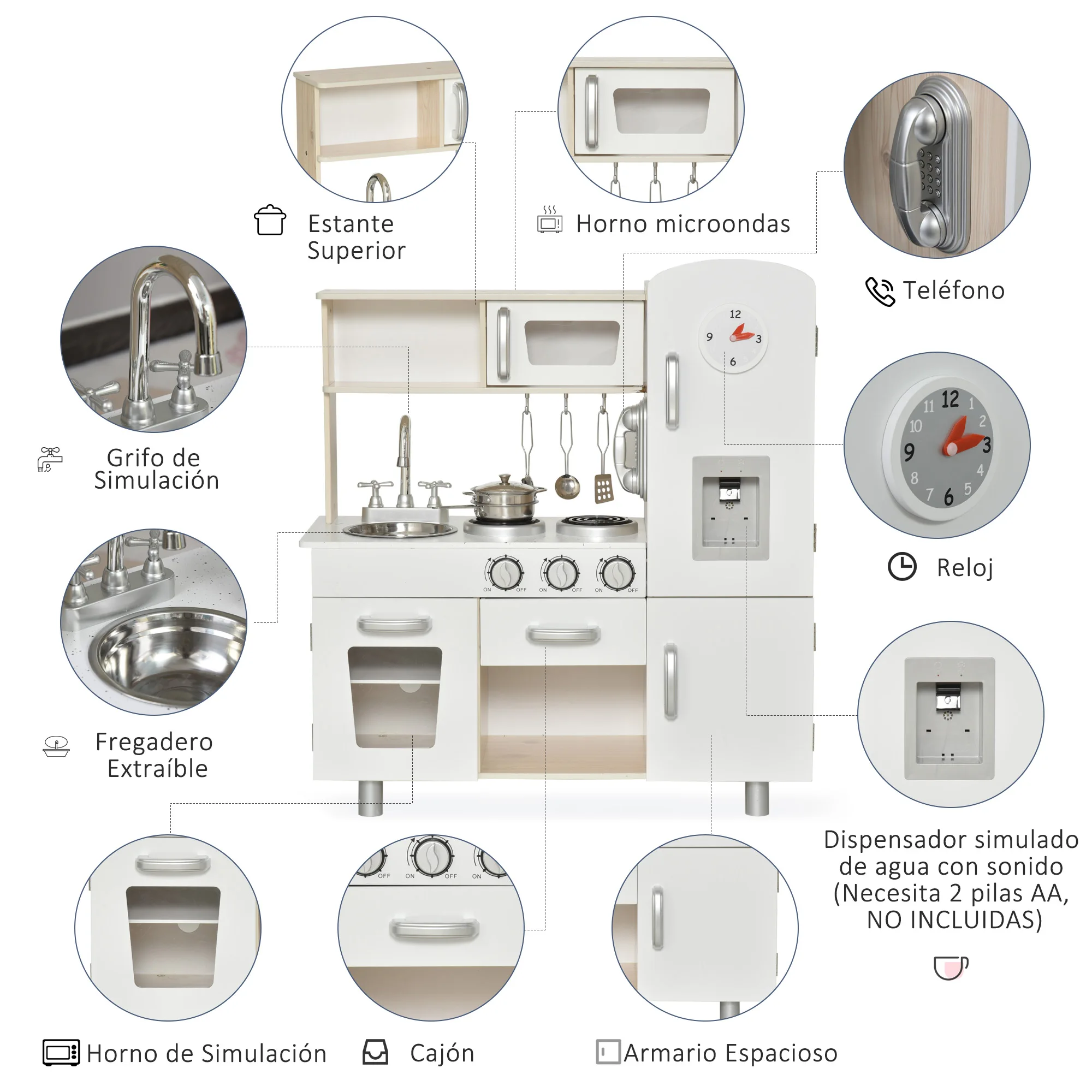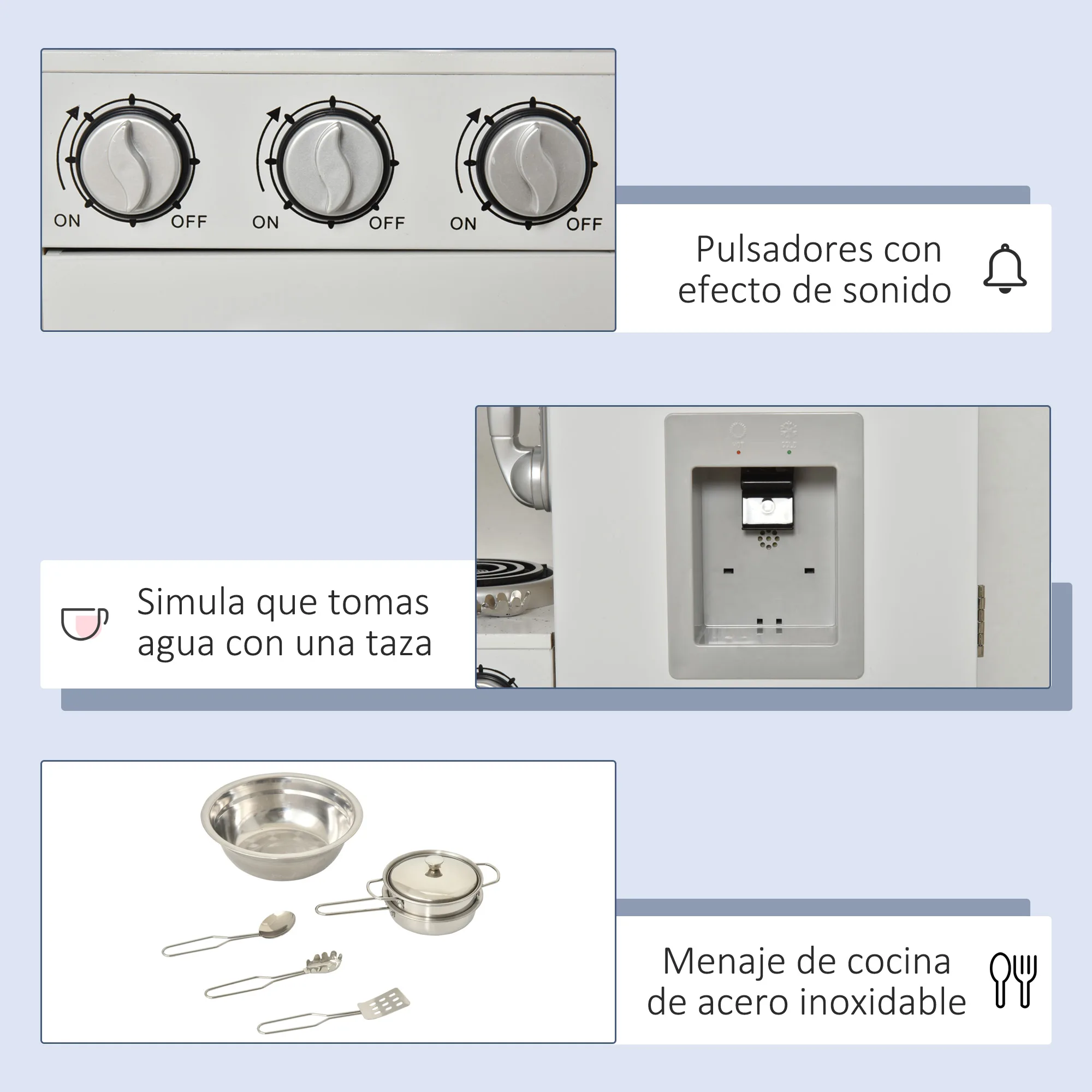 Cucina giocattolo Homcom con contenitori multipli per +3 anni 74X30X81 cm