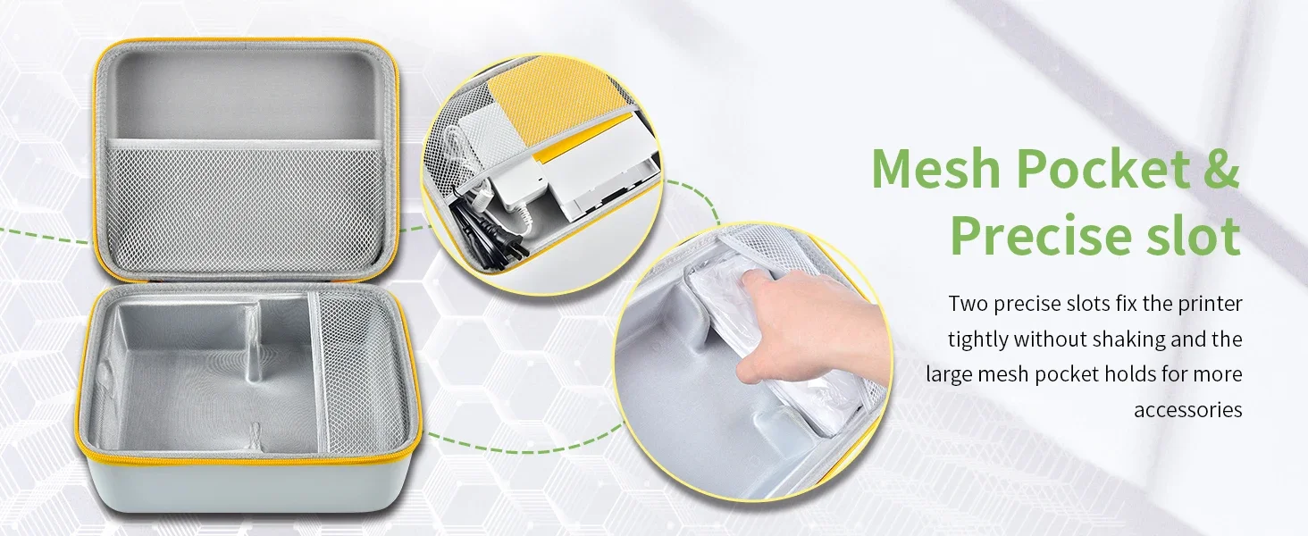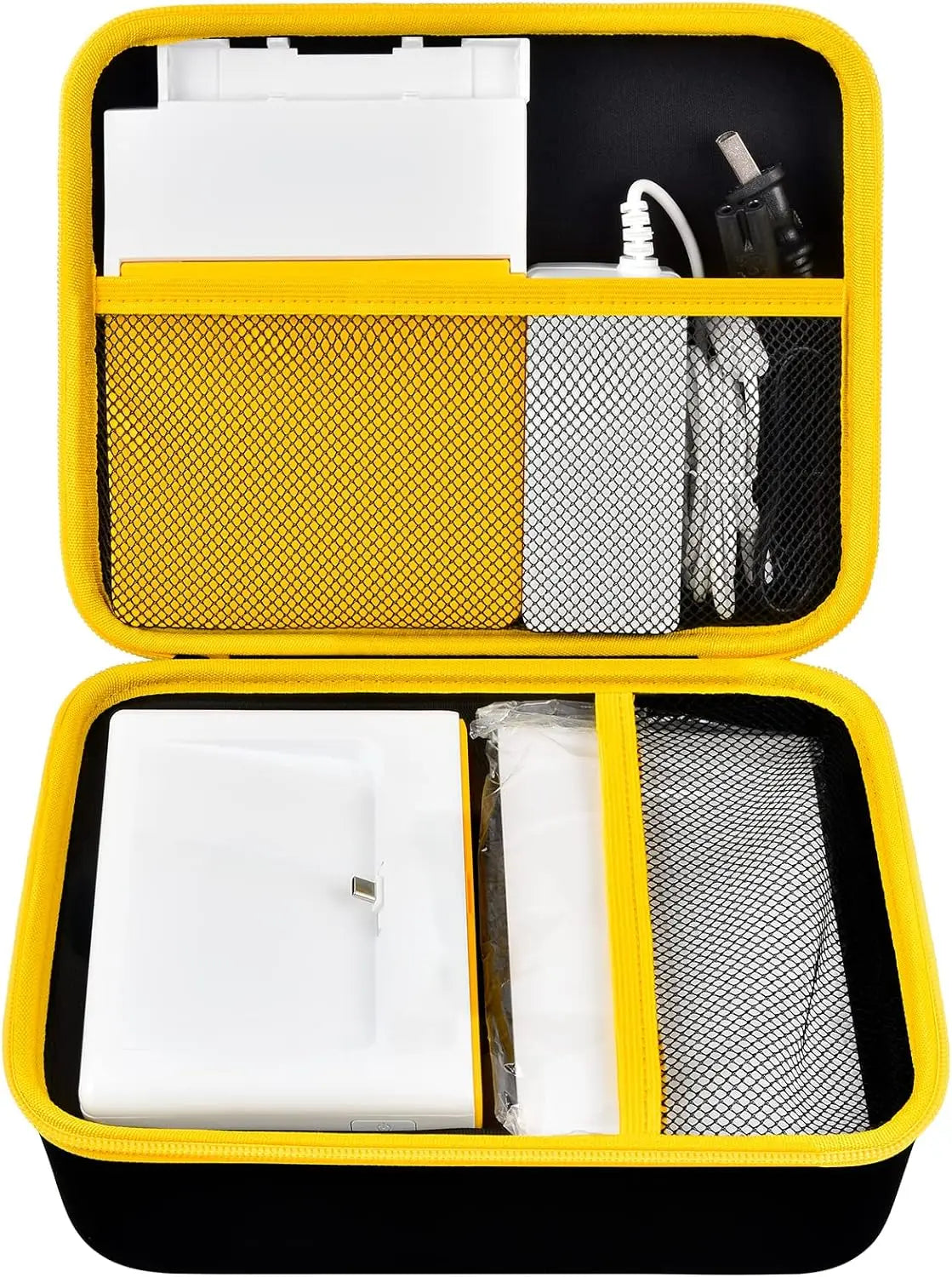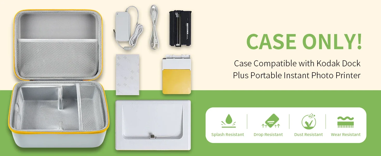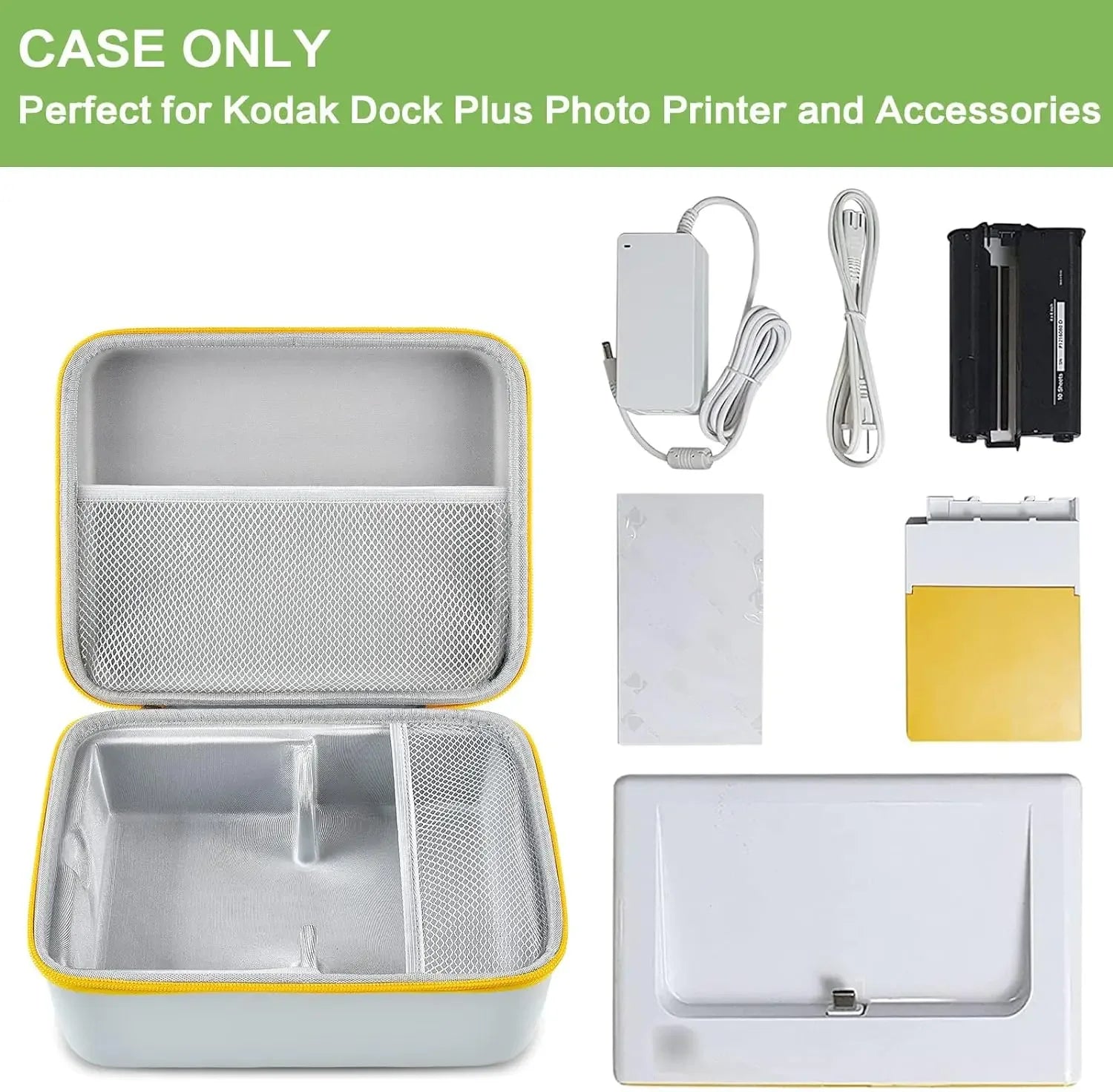 Stampante fotografica ad alta capacità per custodia per iphone-tasca a mezza rete separata per kodak dock plus carta fotografica 4x6 e cartucce di inchiostro, può contenere 200 + carte fotografiche, O 100 + confezioni di ricarica per carta fotografica e ricariche per cartucce d'inchiostro da 2 pezzi. Tasca a rete sull'altro lato della scatola contiene accessori per stampanti fotografiche portatili, come vassoio di carta, cavo di ricarica, adattatore di alimentazione, alimentatore di carta, alimentatore e cartuccia di ricambio più.