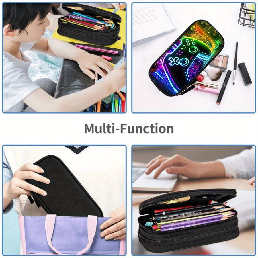 Custodia per matite stampata con controller di gioco colorato - Tessuto nero resistente con design neon vibrante, perfetto per la scuola, l'ufficio o l'accessorio di gioco