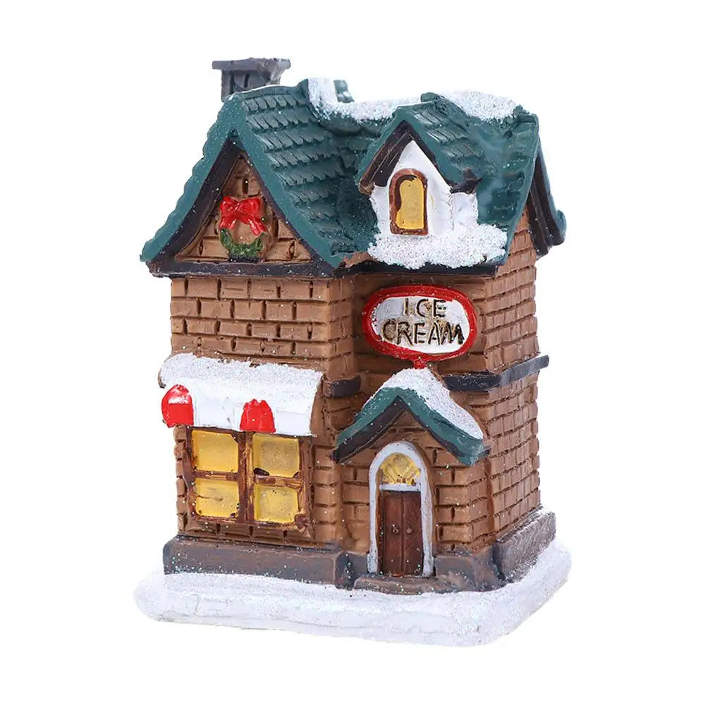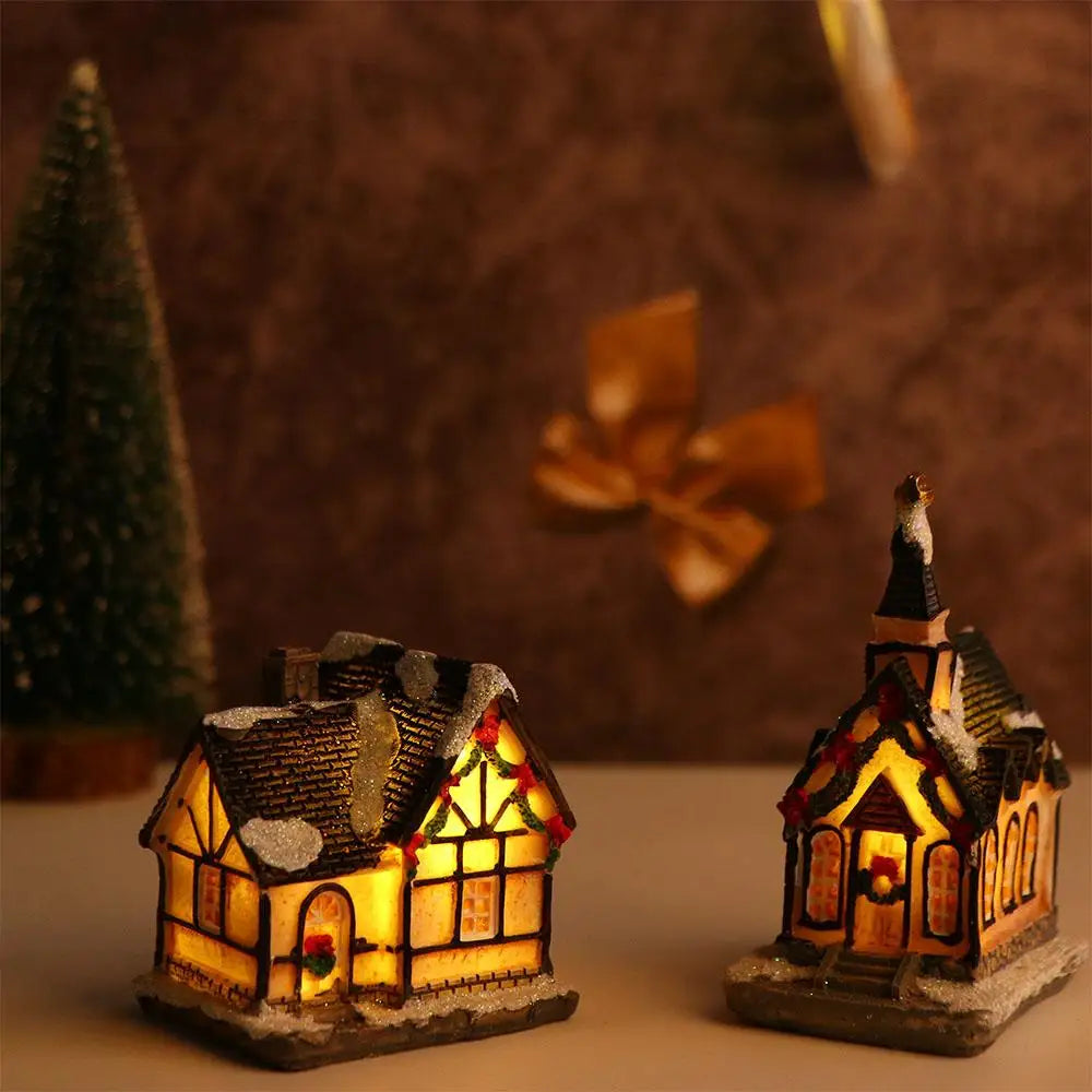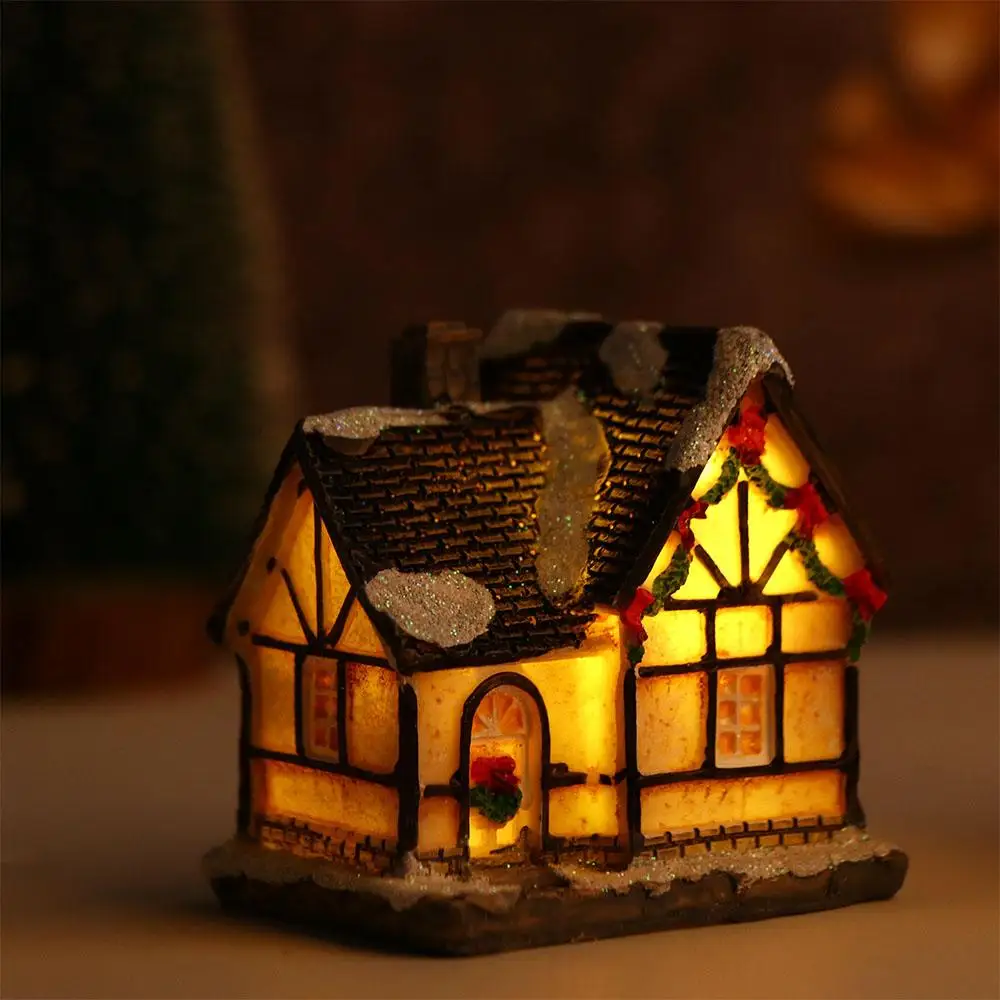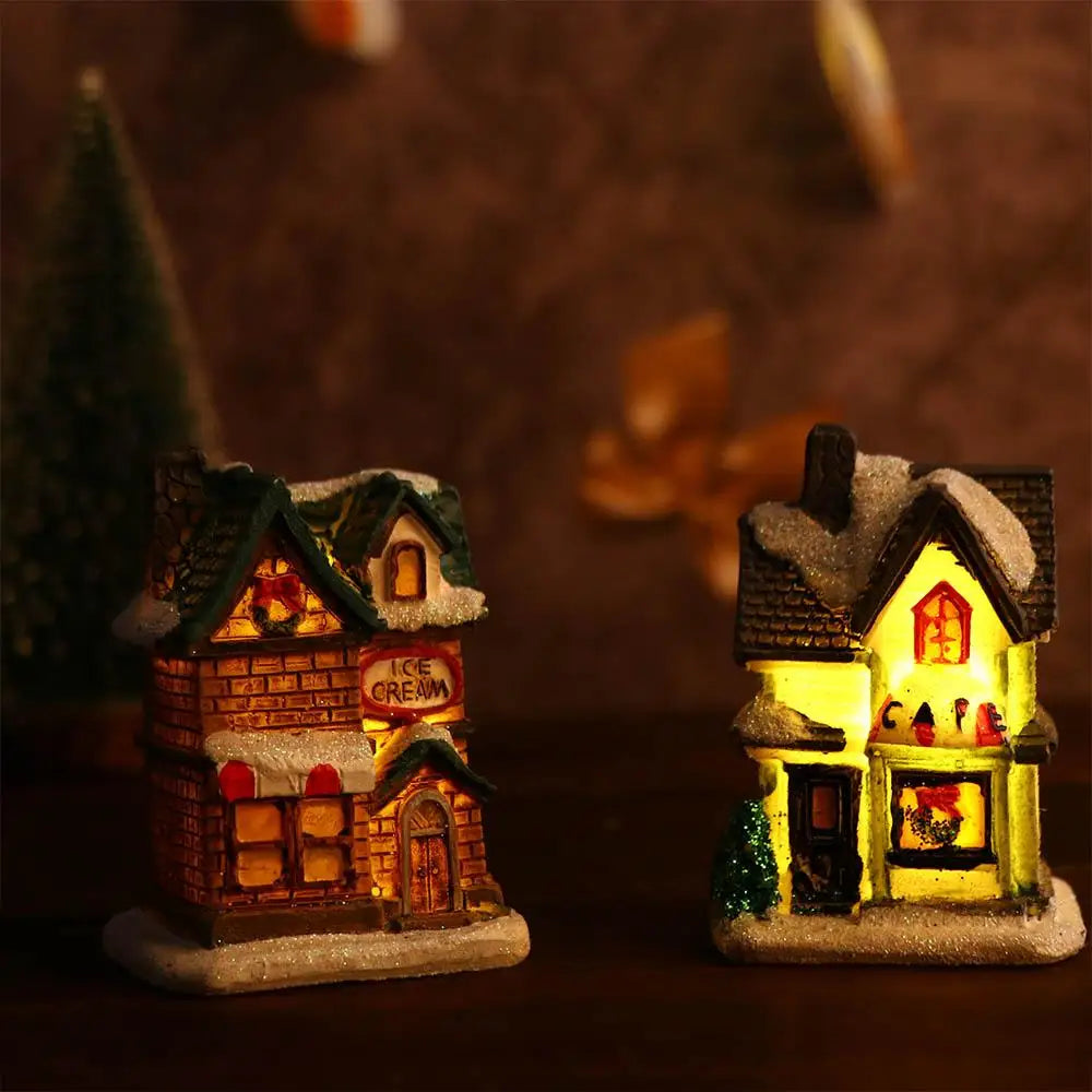 Decorazioni per la casa Figurina di Capodanno Mini resina artigianale Decorazione natalizia luminosa Decorazione della casa del villaggio Luce a LED
