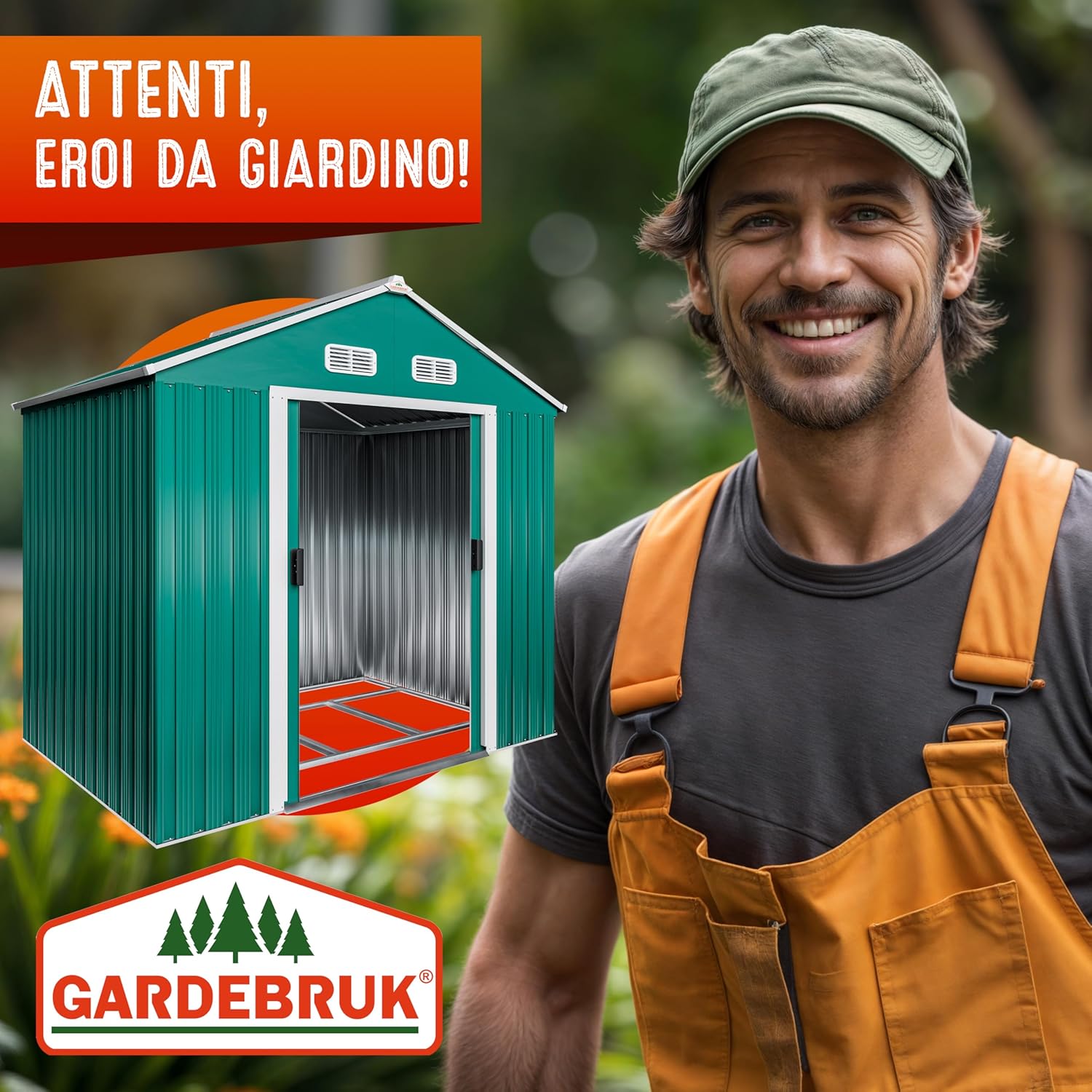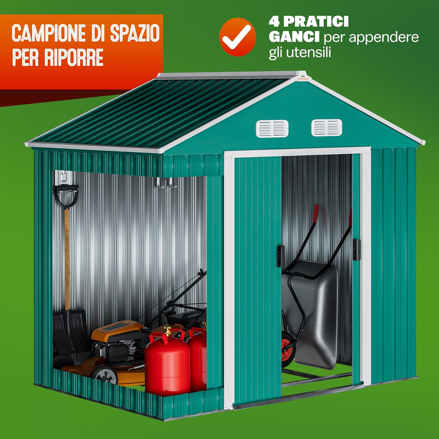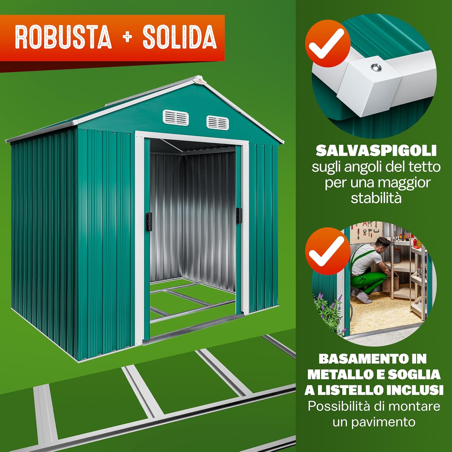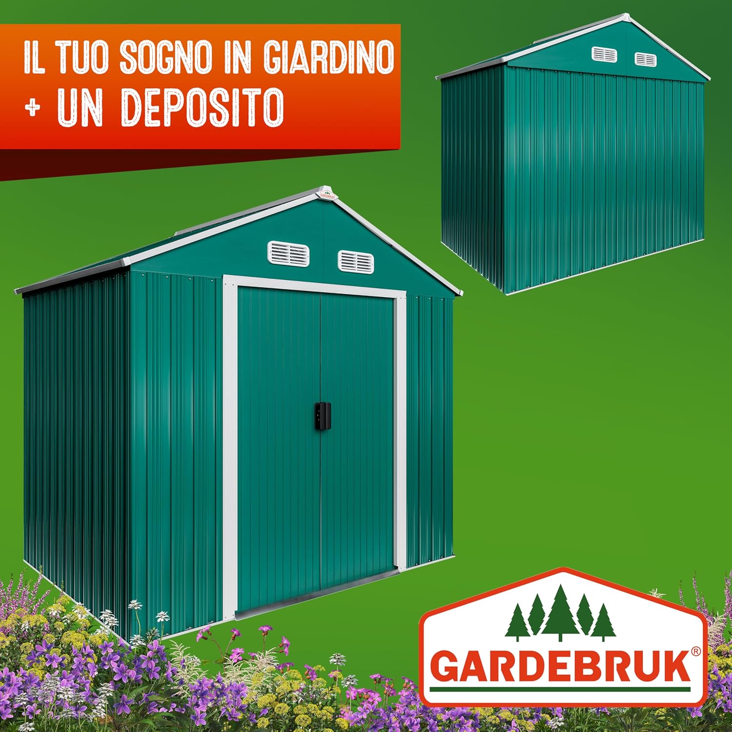 Deuba Capanno da Giardino XL 1,8m² con Fondamenta 196x132x188cm Porta Scorrevole Casetta 3,1m³ Verde