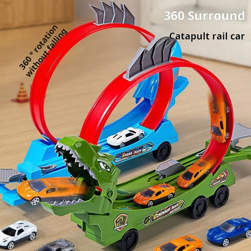 Dinosauro Pista Auto Scorrevole Ferrovia Giocattolo Squalo Binario Assemblato Fai da Te Bambini Giocano Veicoli Giocattoli Educativi per I Ragazzi Regalo
