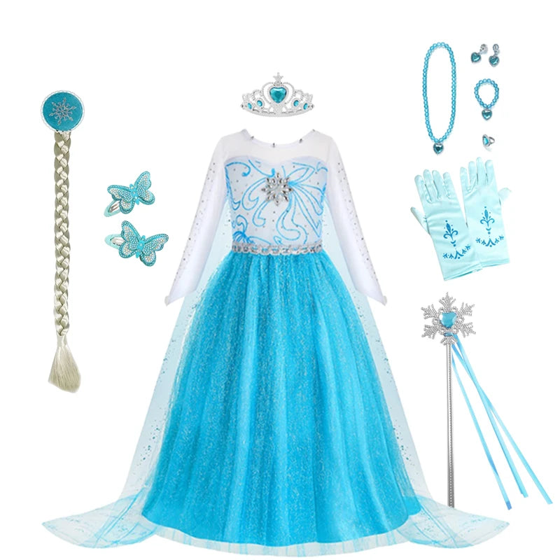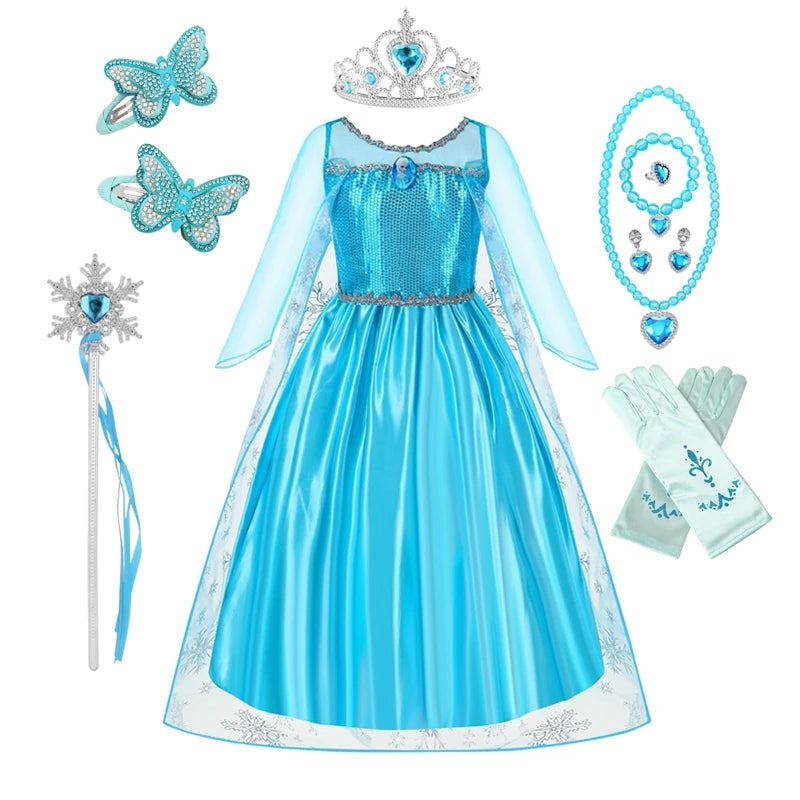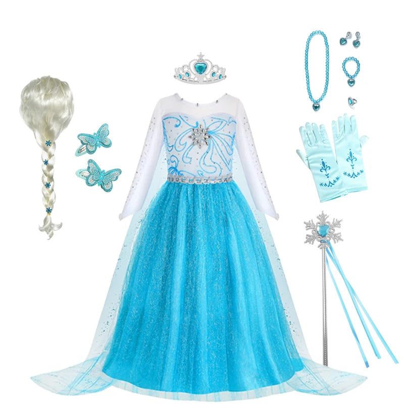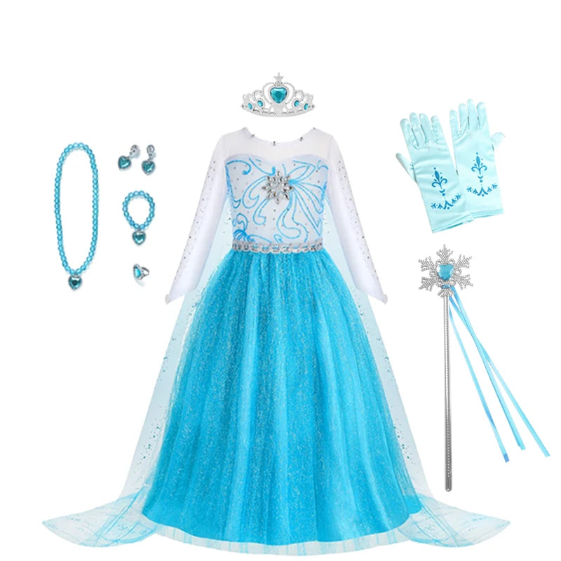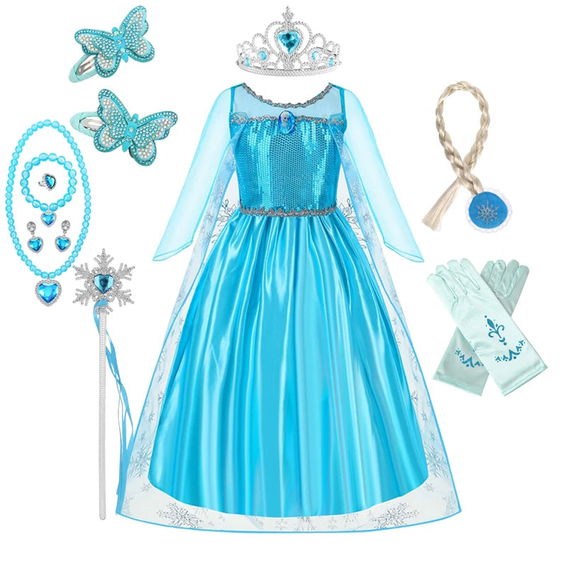 Disney Elsa Anna Abiti da principessa Ragazze vestono Bambini Cosplay Frozen Snow Queen Costumi Carnevale Festa di compleanno Abiti fotografici