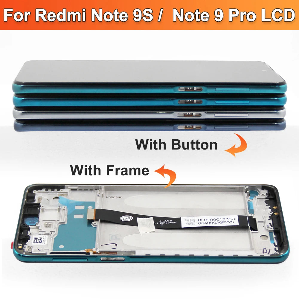 Display AMOLED per Xiaomi Redmi Note 9S Lcd M2003J6A1G Display Touch Screen con cornice per Redmi Note 9 Pro Sostituzione dello schermo