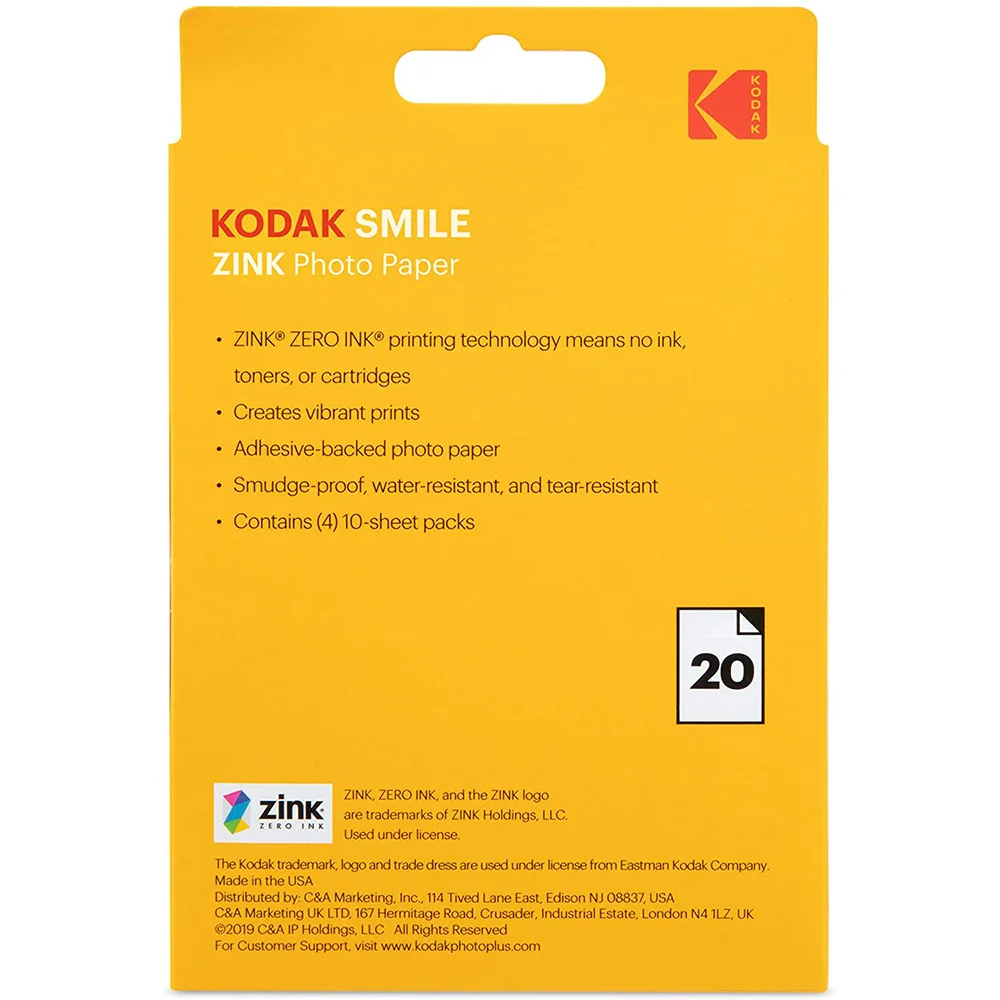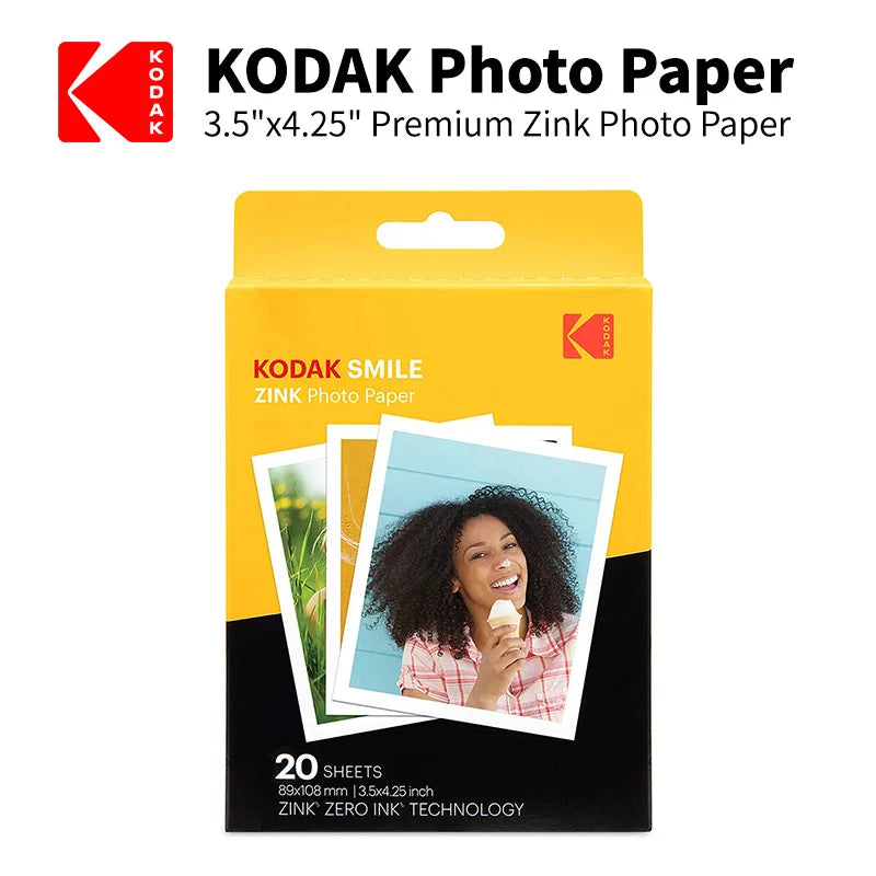 Disponibile 20/80 fogli di carta fotografica Kodak Premium Zink Print 3,5x4,25 pollici compatibile con la fotocamera istantanea Kodak Smile Classic