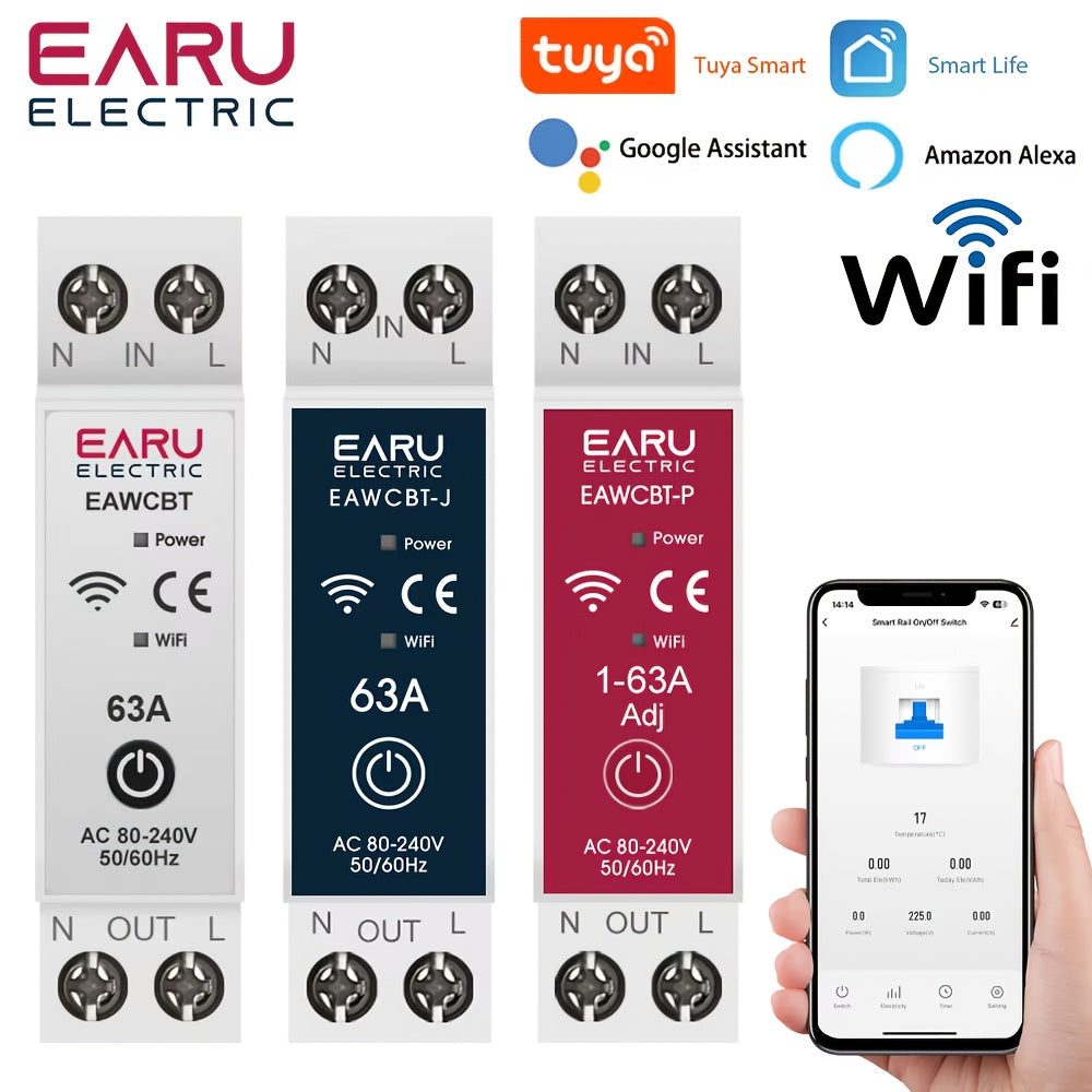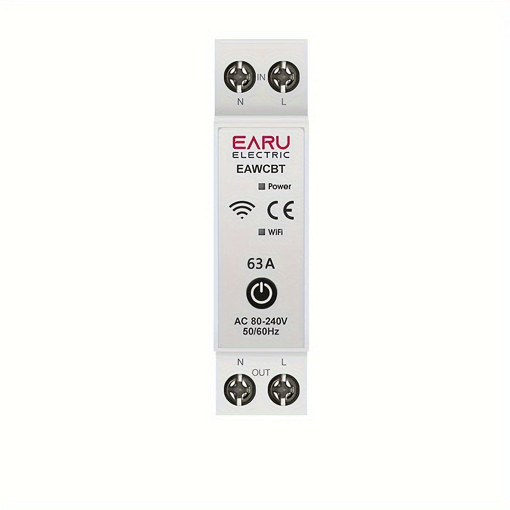 Dispositivo di Interruzione Intelligente WiFi Tuya con Timer MCB 1P+N 63A, Misuratore di Energia kWh e Corrente, Protezione con Telecomando Vocale, EARUEELETTRICO