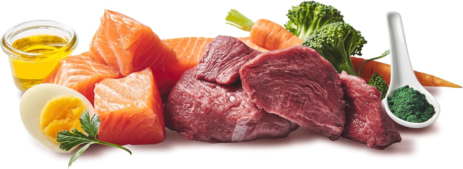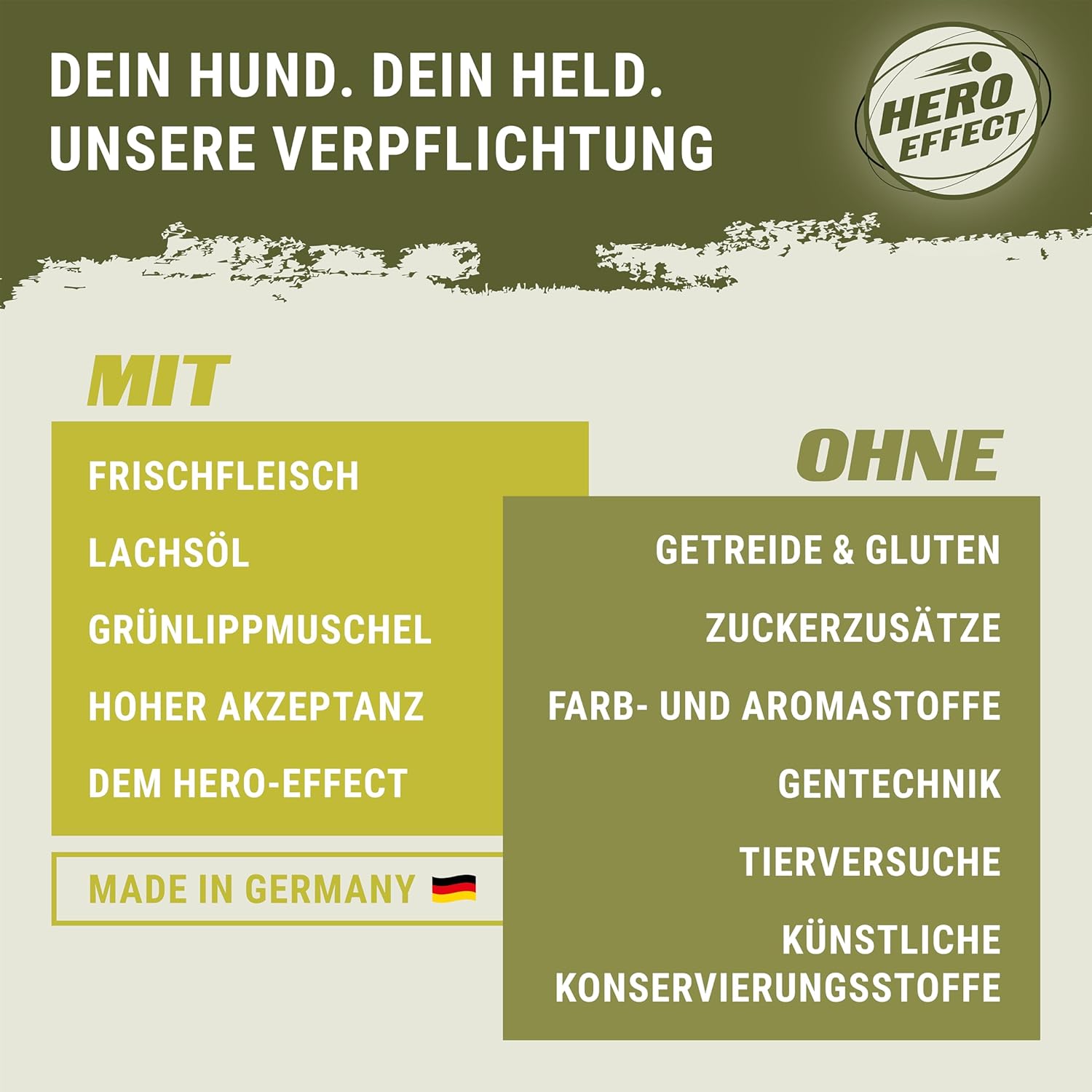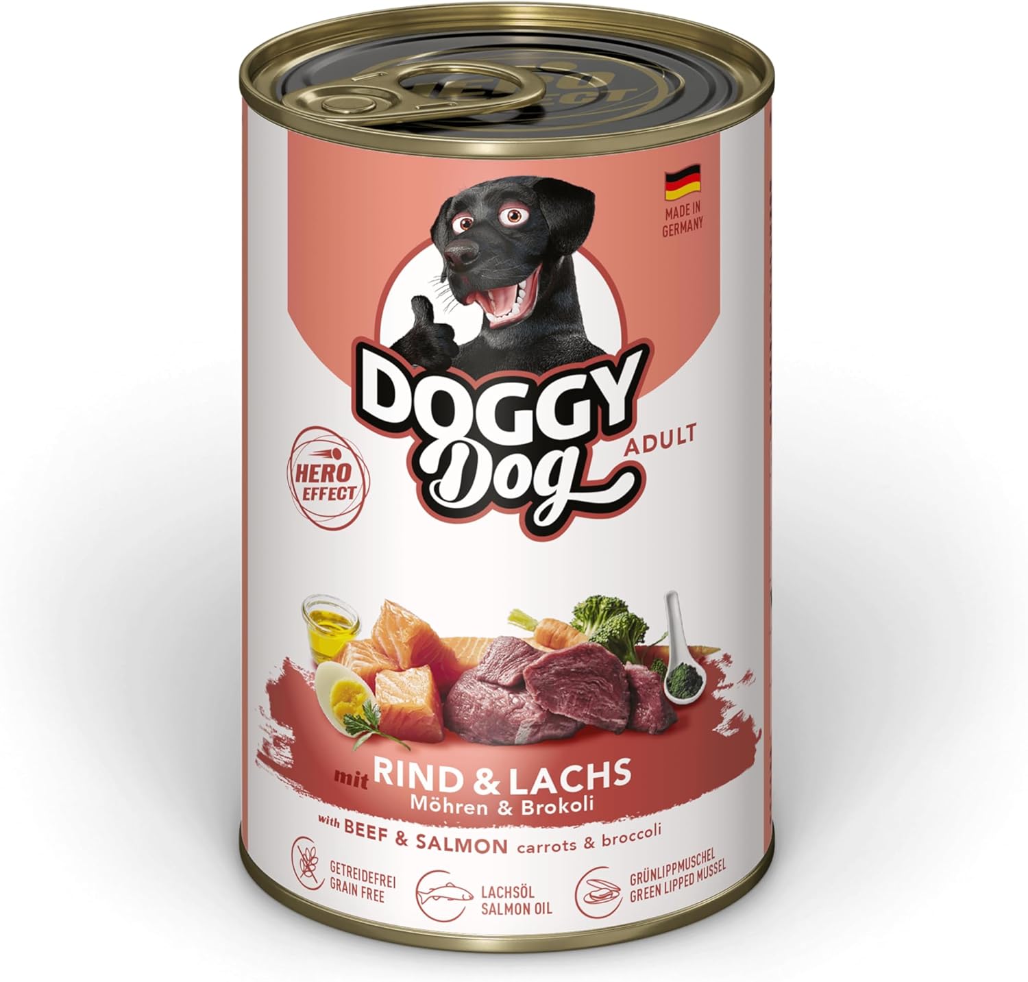 DOGGY Dog Paté Manzo & Salmone, 6 x 400 g, cibo umido per cani, senza cereali, con olio di salmone e cozze con labbra verdi, alimento completo con carote e broccoli, Made in Germany