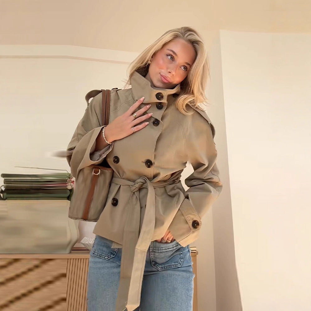Trench Corto Donna Doppiopetto con Allacciatura