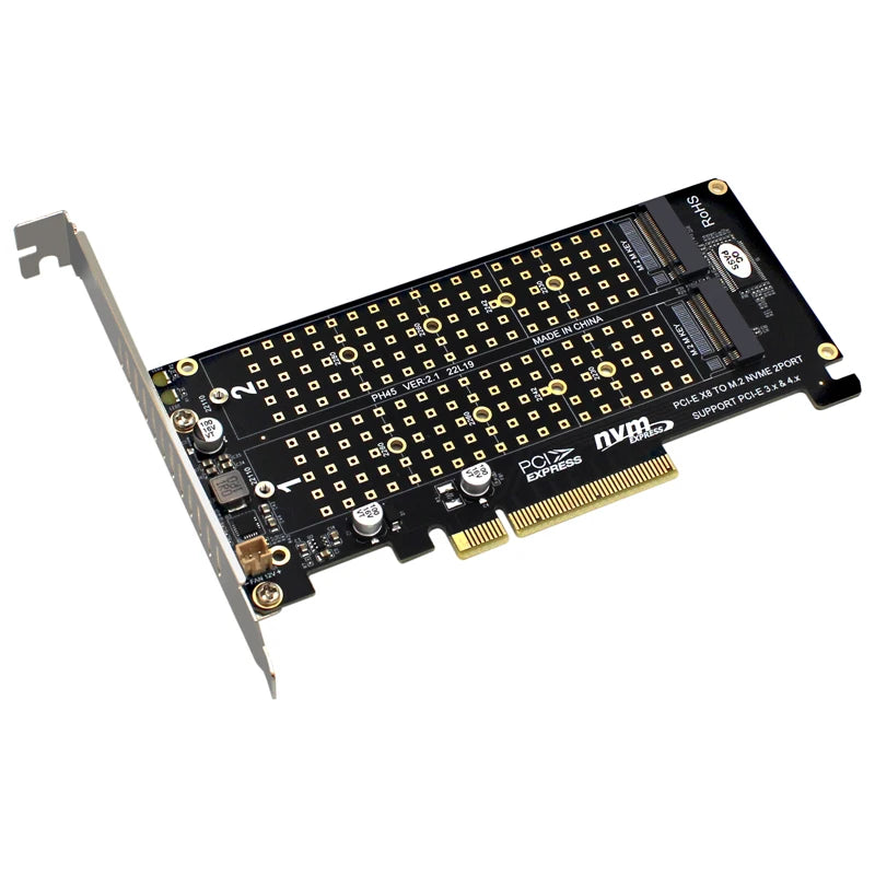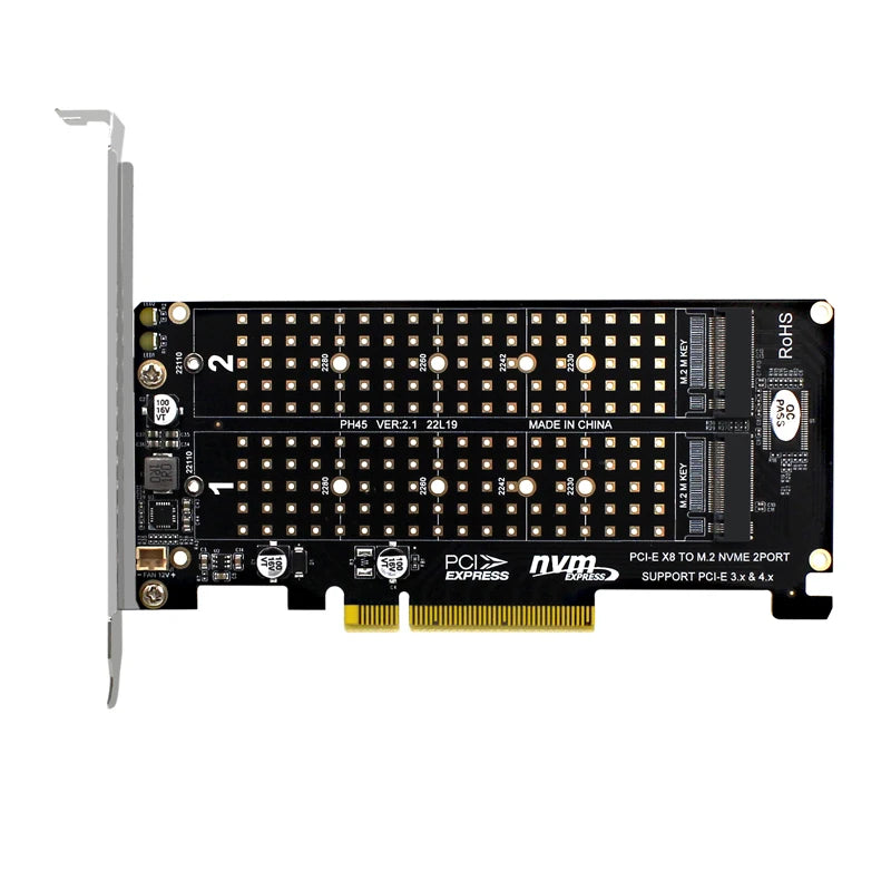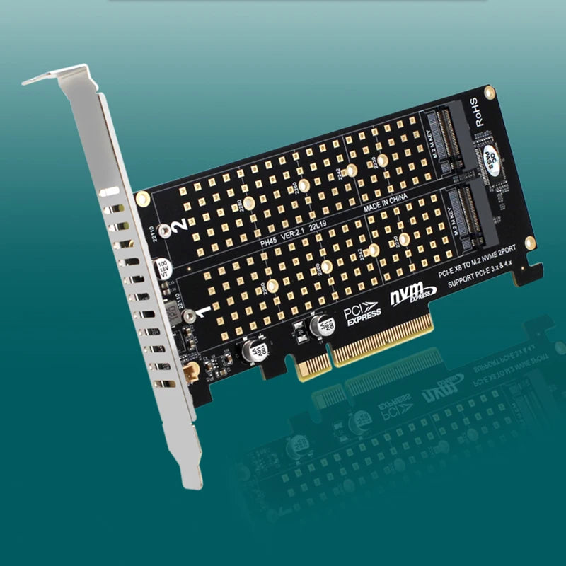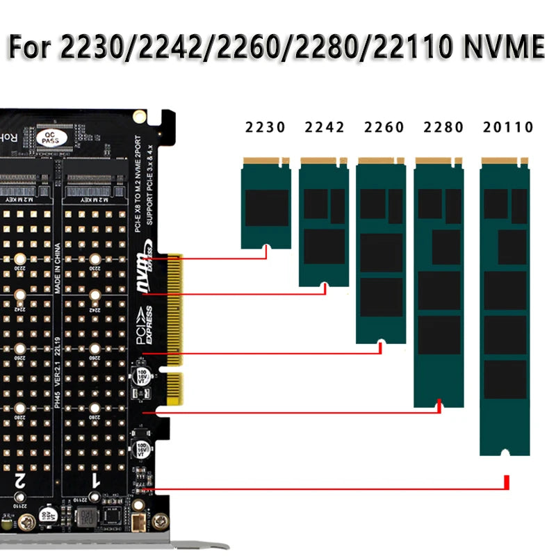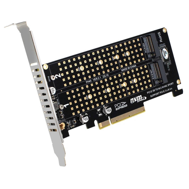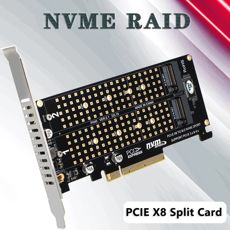 Dual M.2 NVME to PCI Express X8 4.0 Raid Controller PCIE Split Card 2 Ports M2 NVME M KEY for 2230 2242 2260 2280 22110 NVME SSD