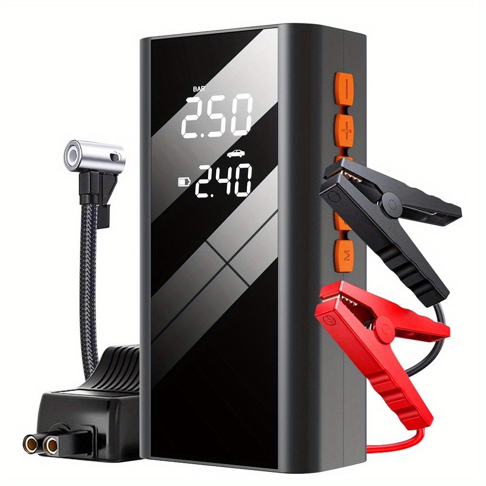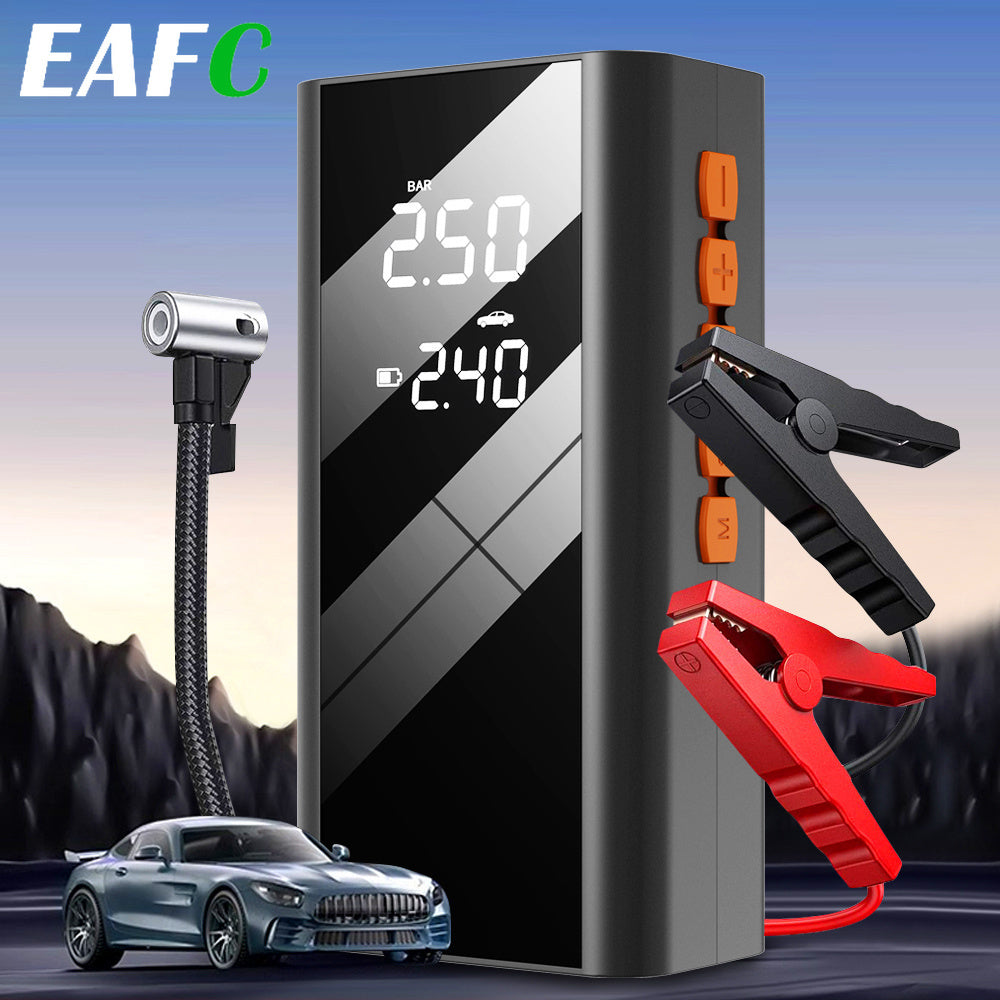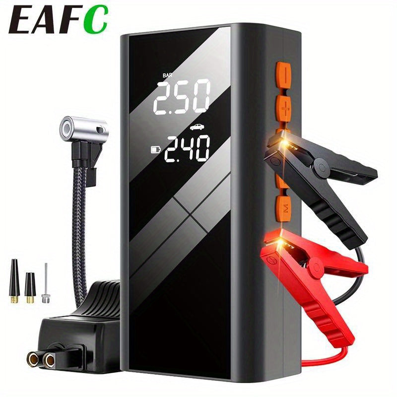 EAFC Gonfiatore per Pneumatici 150PSI, Power Bank Portatile da Emergenza 12V con Compressore d'Aria e Avviamento Auto 2in1 - Booster Batteria Caricabatterie per Motori Benzina 4.0L e Diesel 2.0L - con Torcia per Auto, Moto e SUV