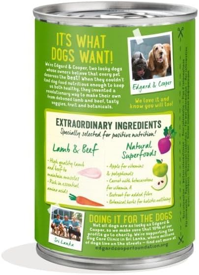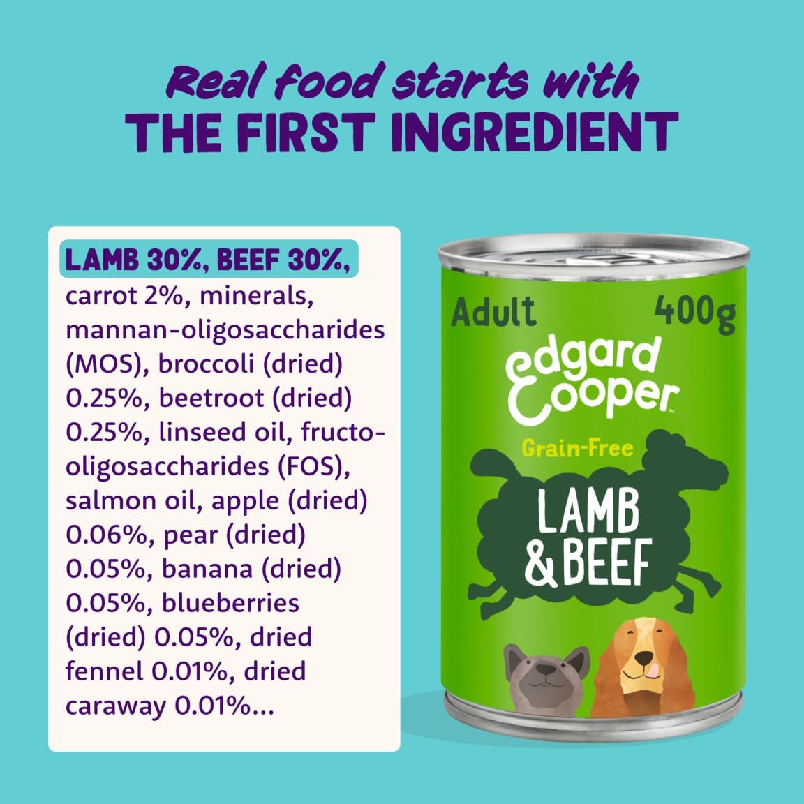 Edgard & Cooper Cibo umido per cani, Adulti, (Agnello/Manzo, 400g x 6), umido cani, carne fresca e ingredienti naturali, senza cereali, ipoallergenico, senza zuccheri aggiunti