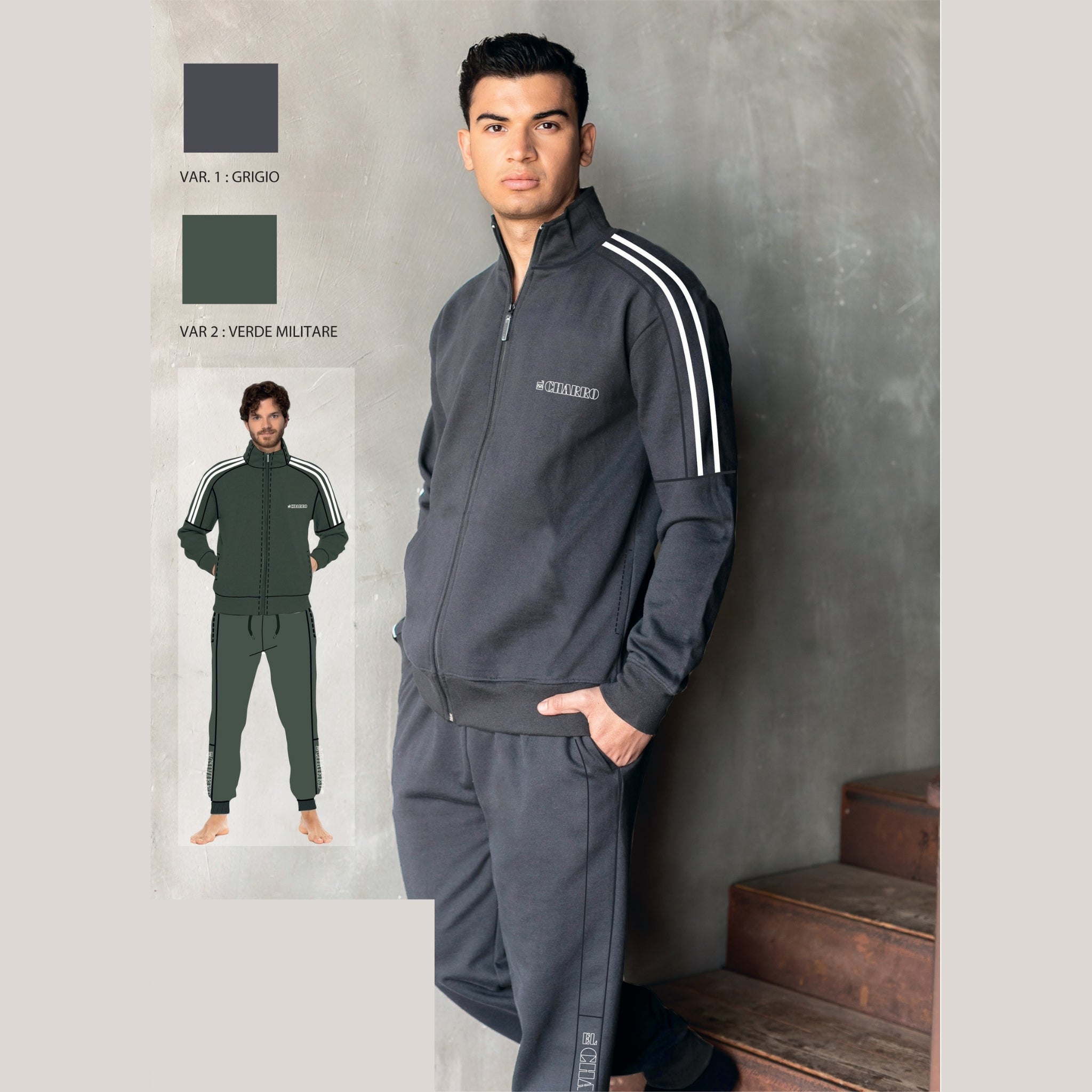 El Charro Fitness Tuta Uomo In Felpa Full Zip Con Profili E Pantalone Con Tasche Art. Gcm214