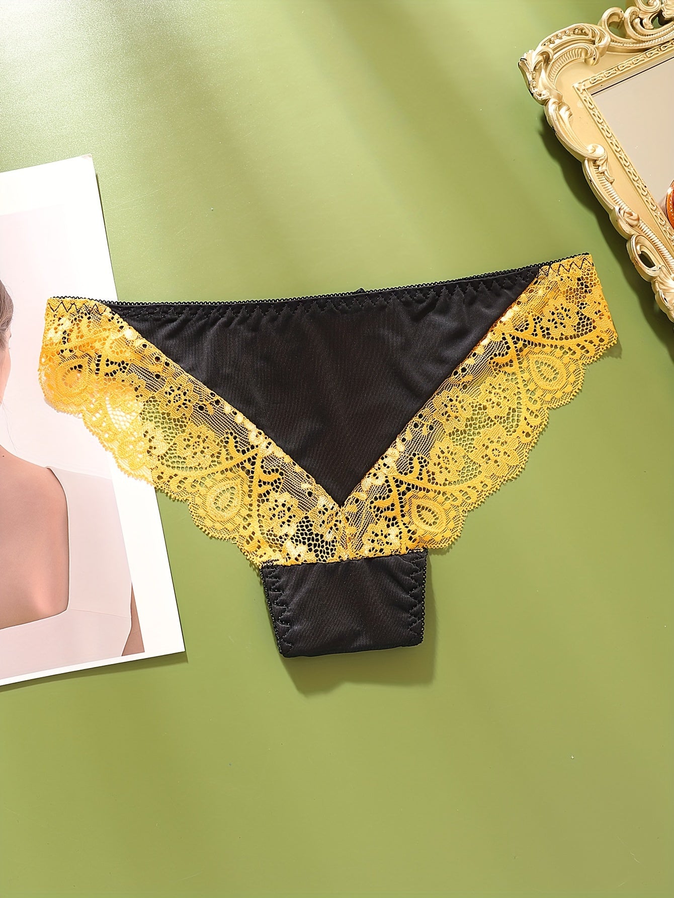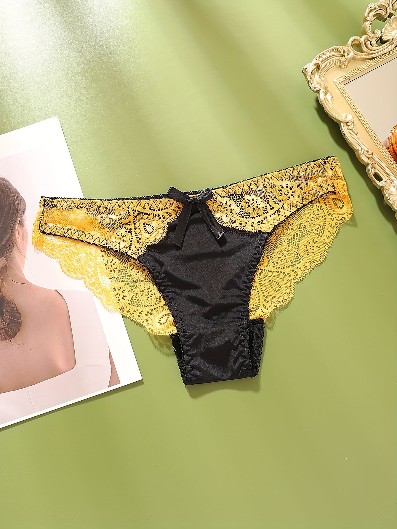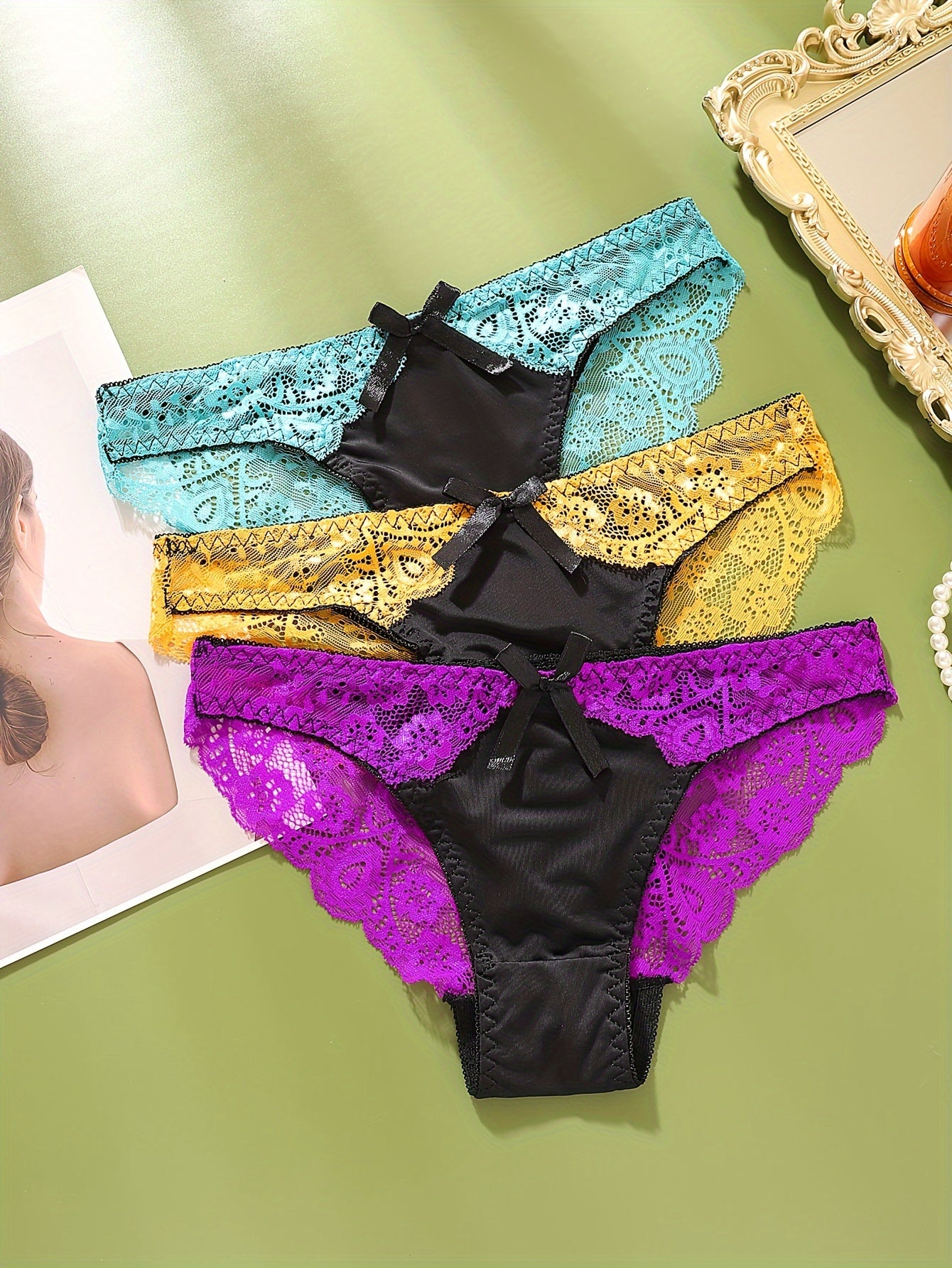 Elegante Set di Lingerie in Pizzo 3 Pezzi per Donna - Reggiseno Push-Up Sexy a Blocchi di Colore & Slip a Vita Bassa, Misto Nylon Traspirante