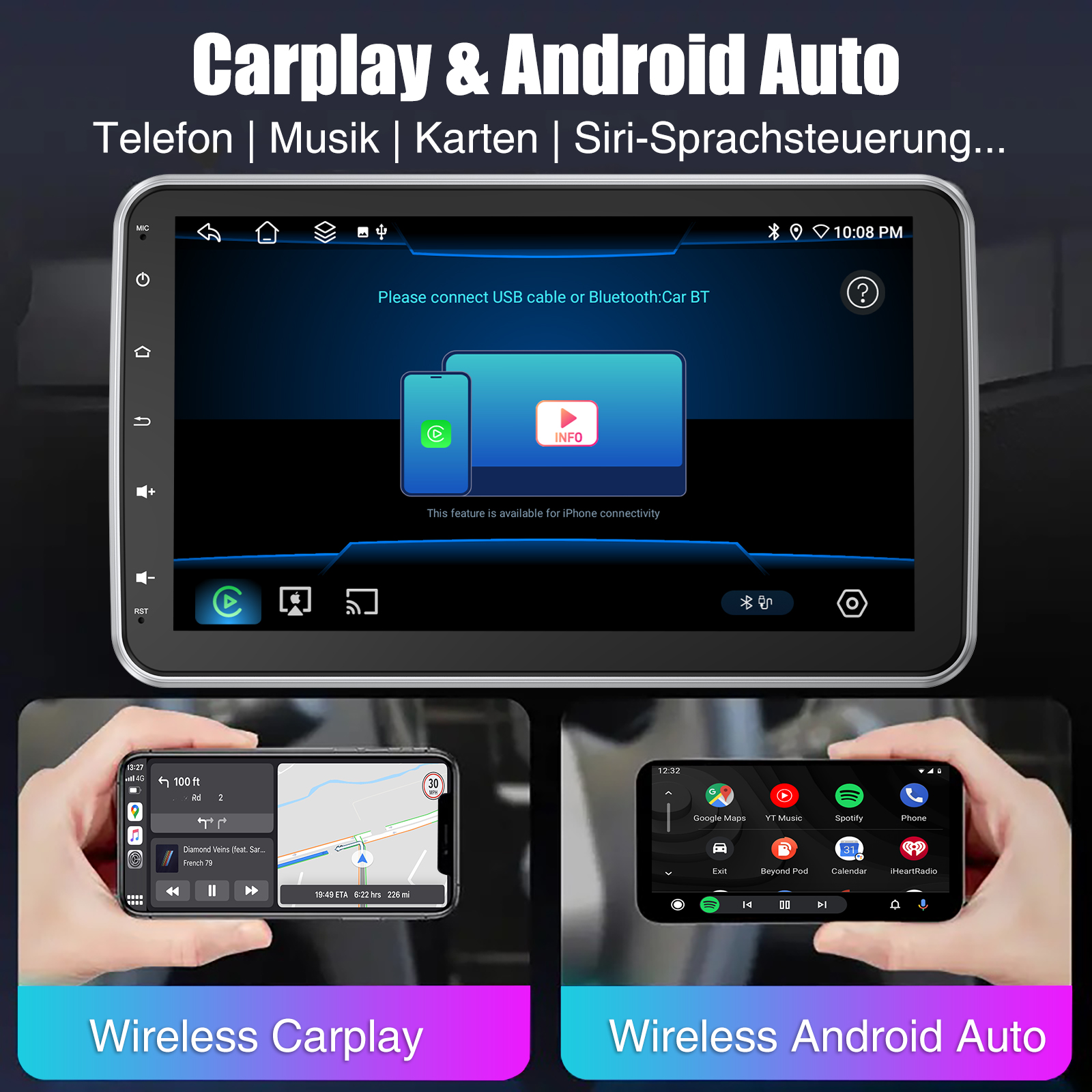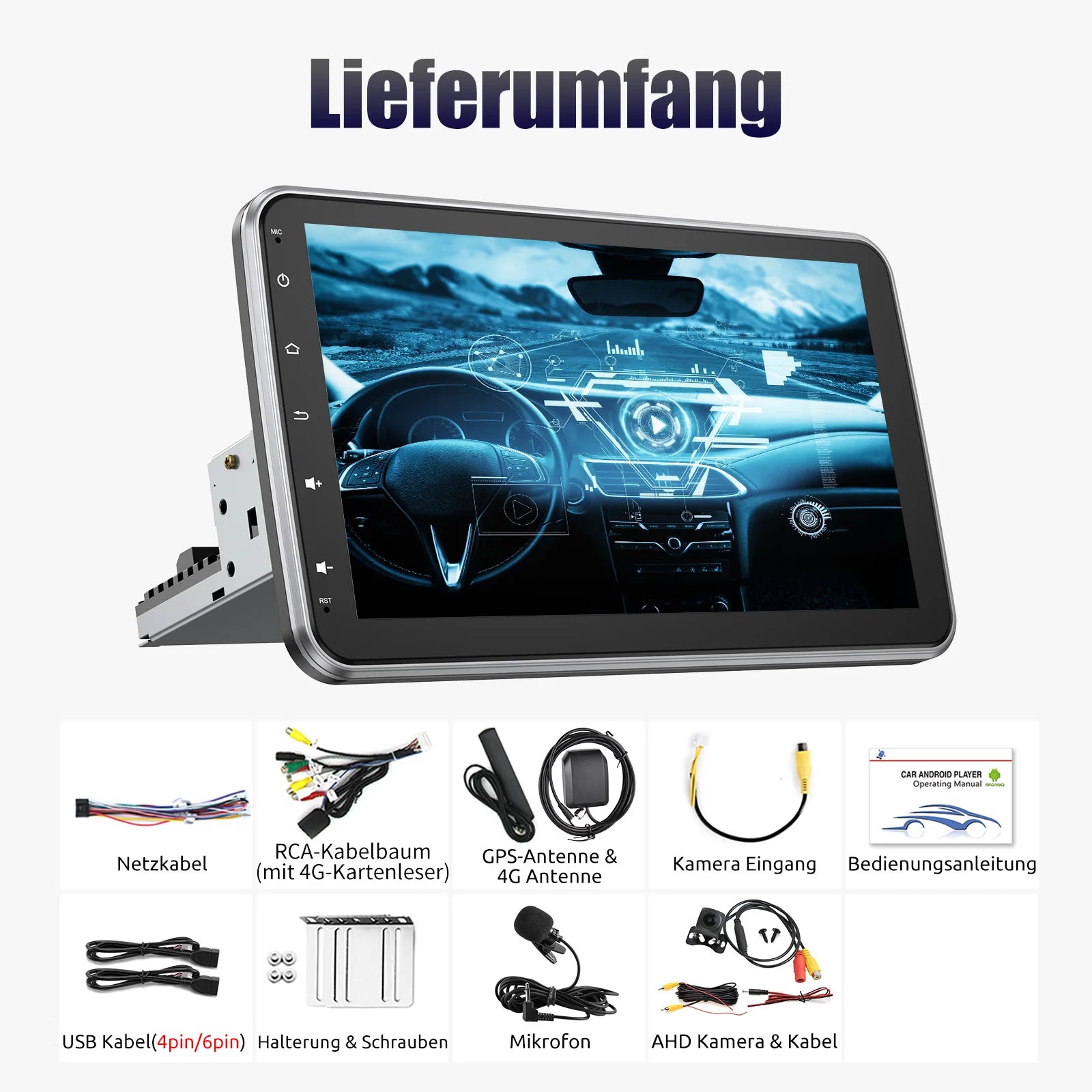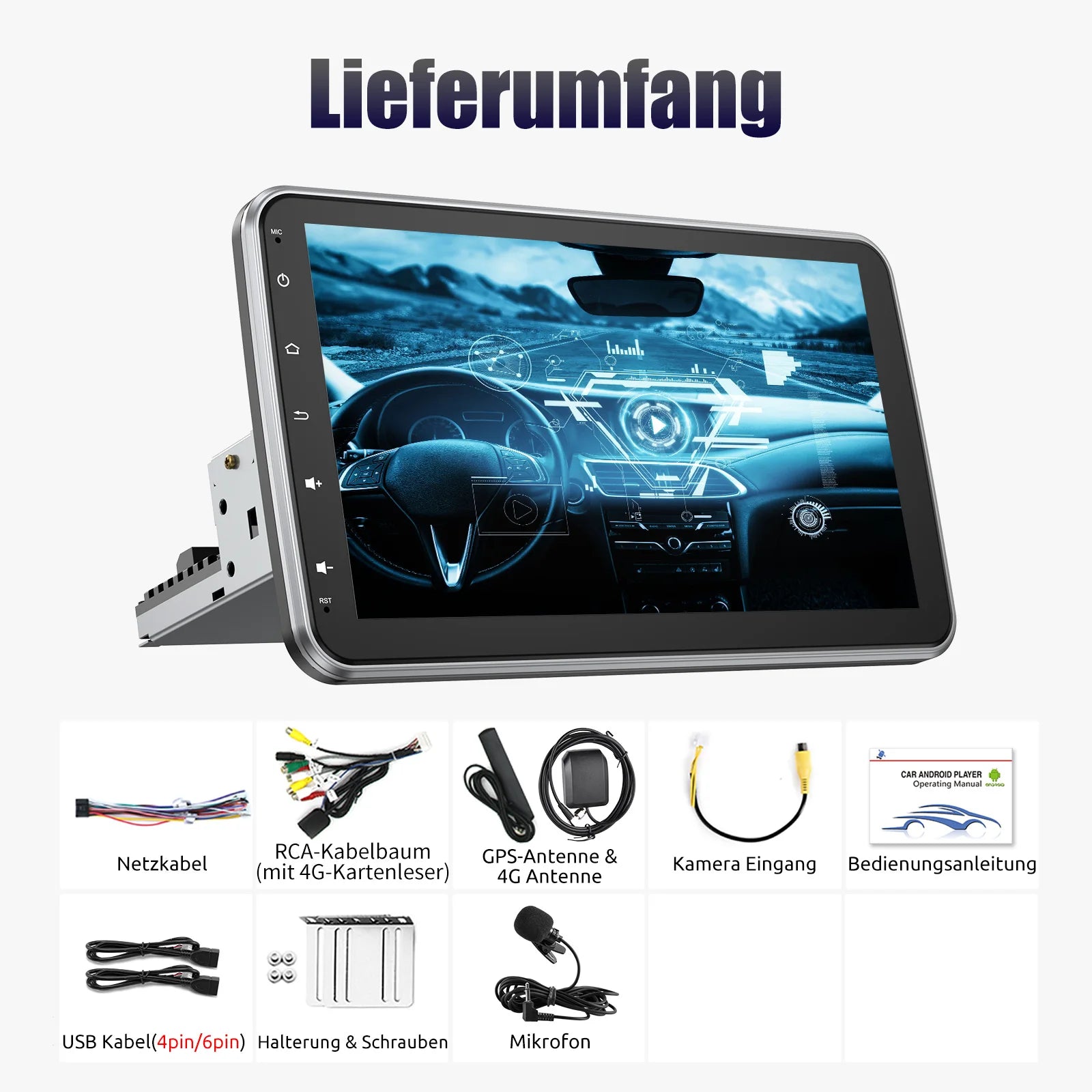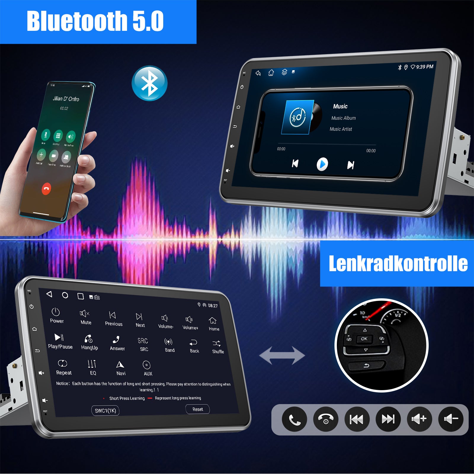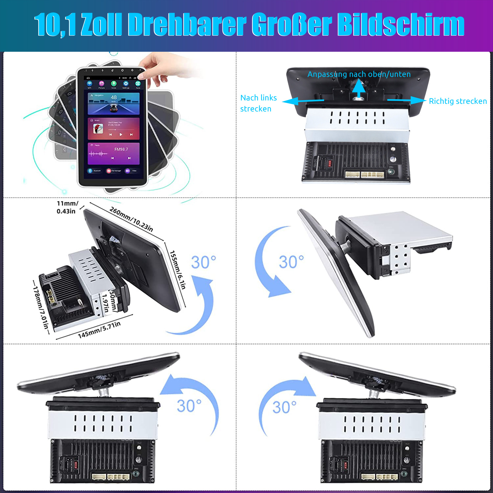 Kapazitiver 10,1-Zoll-HD-Touchscreen (1024 x 600):Dieses Autoradio mit 1024 x 600, 6 GB RAM + 128 GB ROM, 10,1-Zoll-IPS-Touchscreen (Bildschirm kann um 360 ° gedreht werden) unterstützt 1080P HD-Videowiedergabe für hervorragende Sicht, mehrere gut gestaltete Benutzeroberflächen verfügbar für Ihre beste Wahl für ein Autoradio. Die Installationsgröße des Radios beträgt 178 x 50 mm, die Bildschirmgröße 262 x 156 mm. Stellen Sie sicher, dass die Größe Ihres Armaturenbretts größer als die Radiogröße ist.