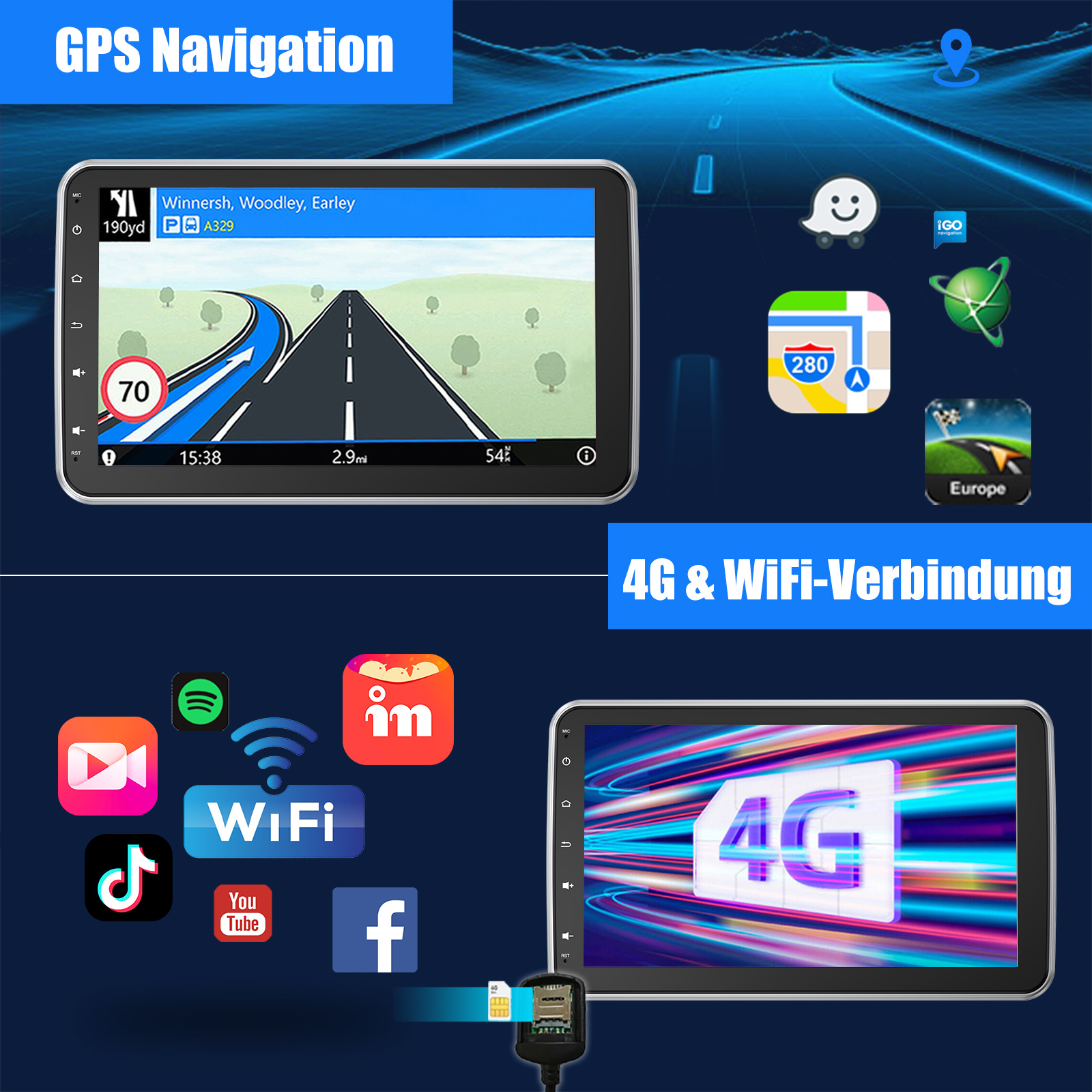 WIFI & Echtzeit-Online-GPS: Das Autoradio mit Bluetooth unterstützt WIFI-Verbindung und APP-Download direkt aus dem Play Store; Wir können die meisten Kartentools herunterladen, um eine Online-Navigation in Echtzeit zu realisieren, die mit verlorenen Online-Karten kompatibel ist.
