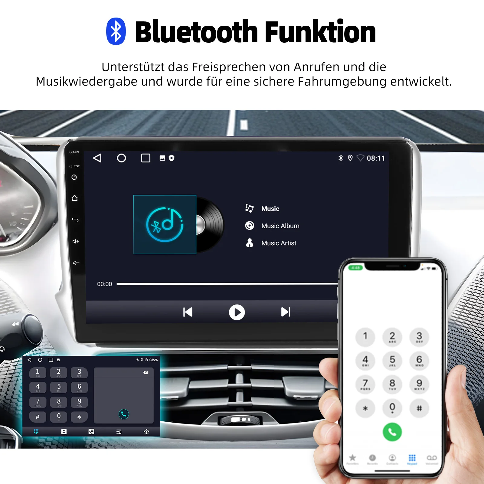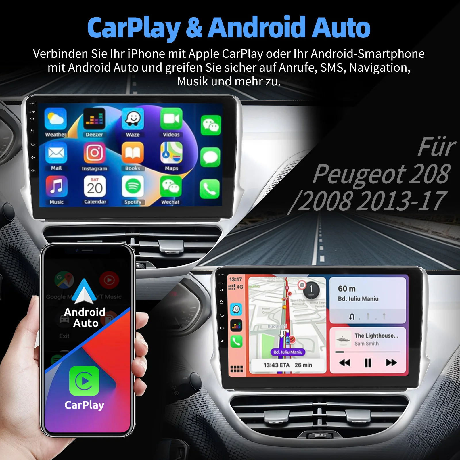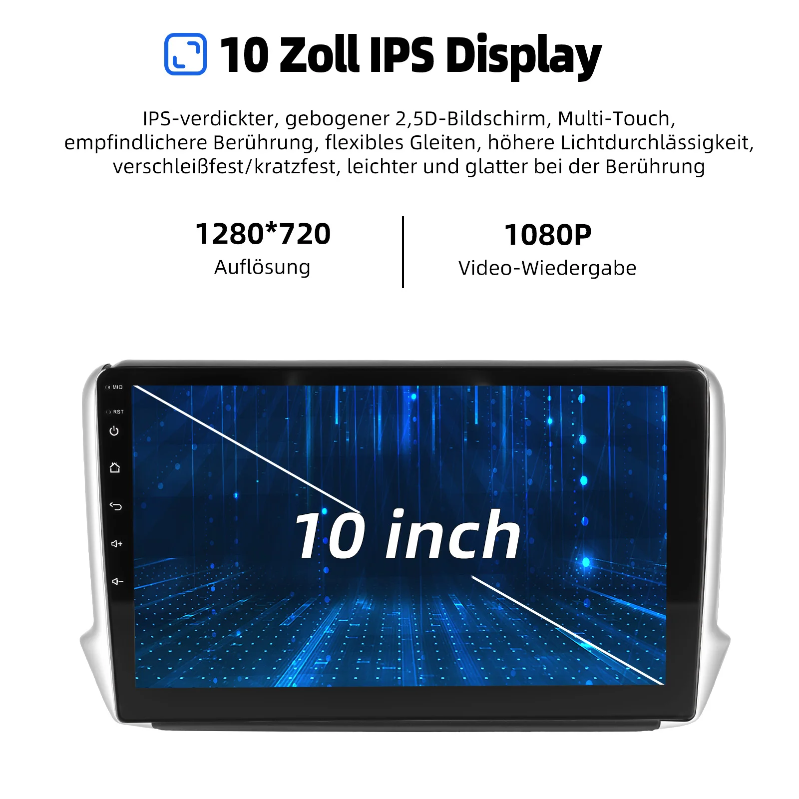10 Zoll Android 14 Autoradio Für Peugeot 208: Das Android Autoradio mit 10" 1280* 720 kapazitivem IPS Touchscreen, 2GB/4GB RAM und 32GB/64GB ROM ermöglicht das Herunterladen Ihrer Lieblings-Apps und -Videos, damit das Autofahren nicht mehr langweilig wird. Kein zusätzlicher Rahmen, kein Kabelwechsel, Plug and Play.