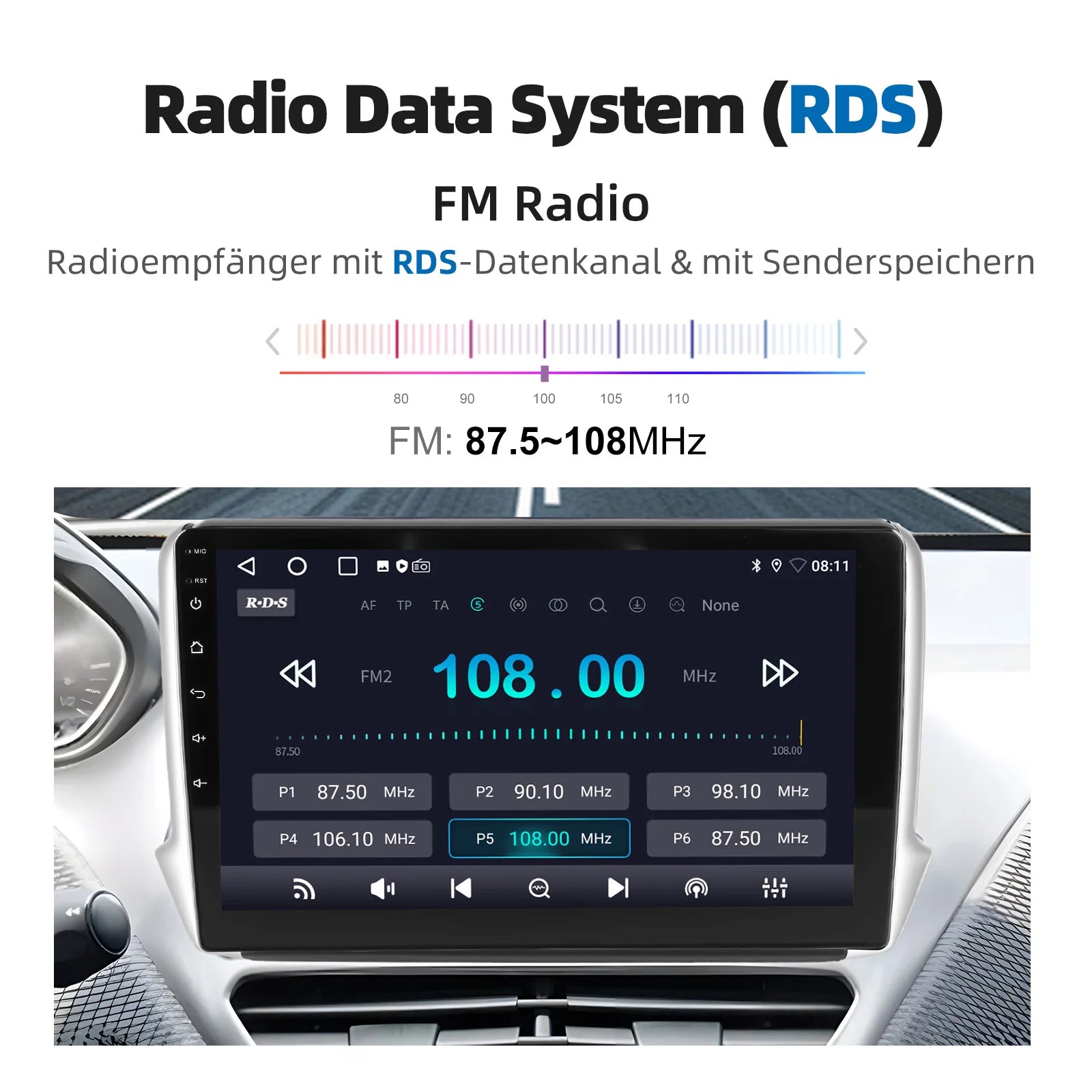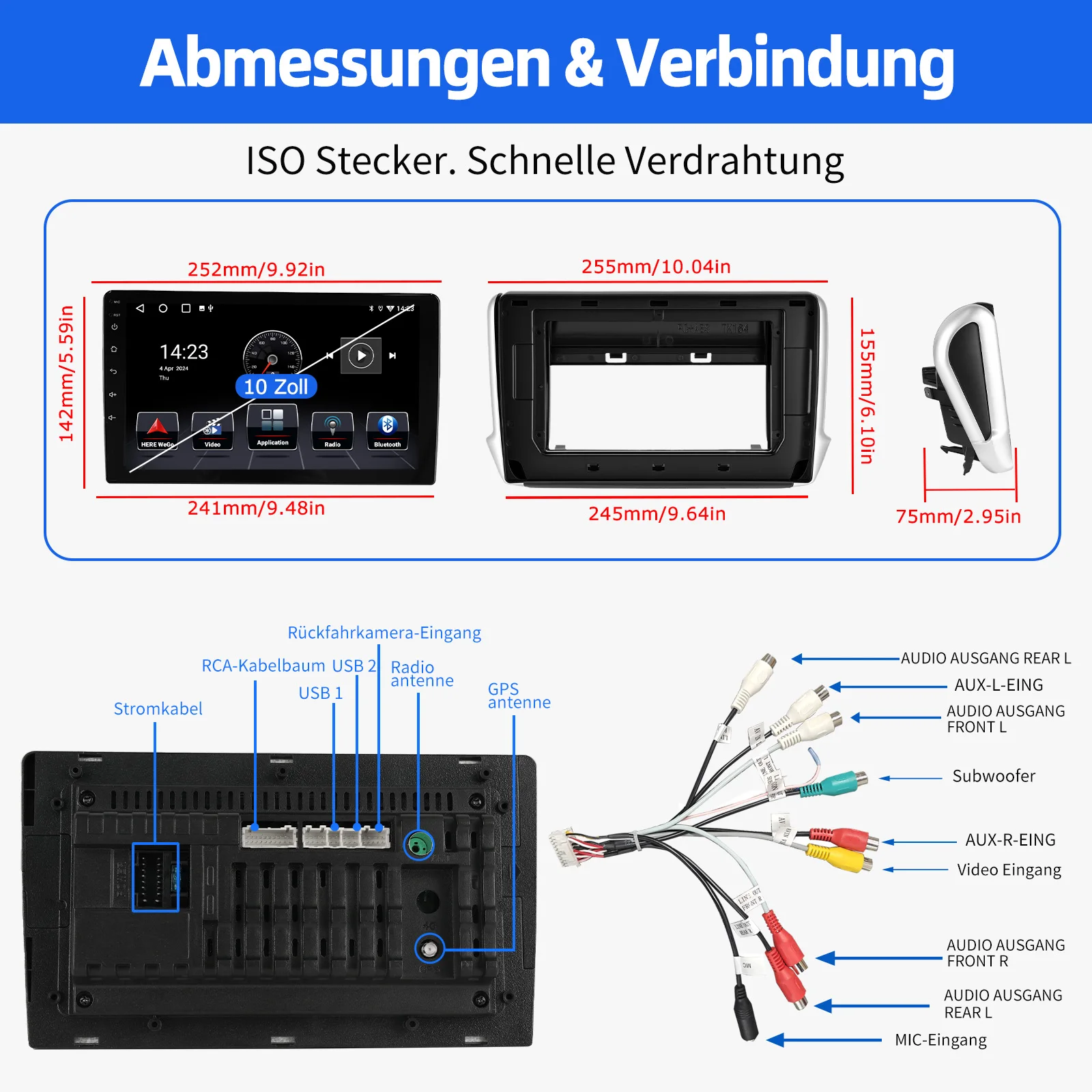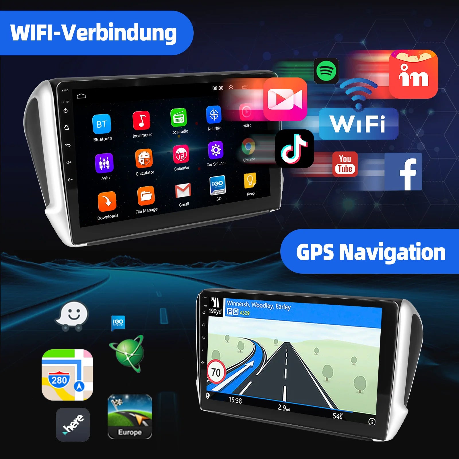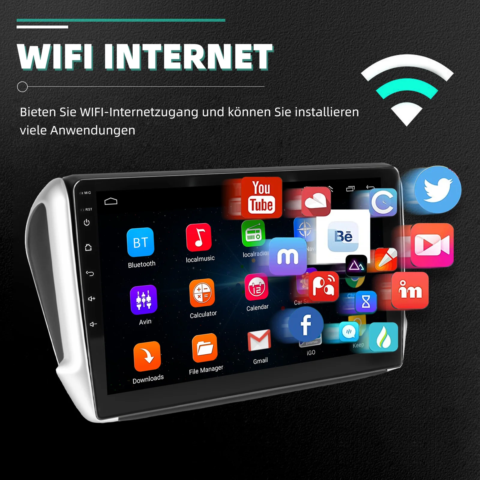 10 Zoll Android 14 Autoradio Für Peugeot 208: Das Android Autoradio mit 10" 1280* 720 kapazitivem IPS Touchscreen, 2GB/4GB RAM und 32GB/64GB ROM ermöglicht das Herunterladen Ihrer Lieblings-Apps und -Videos, damit das Autofahren nicht mehr langweilig wird. Kein zusätzlicher Rahmen, kein Kabelwechsel, Plug and Play.