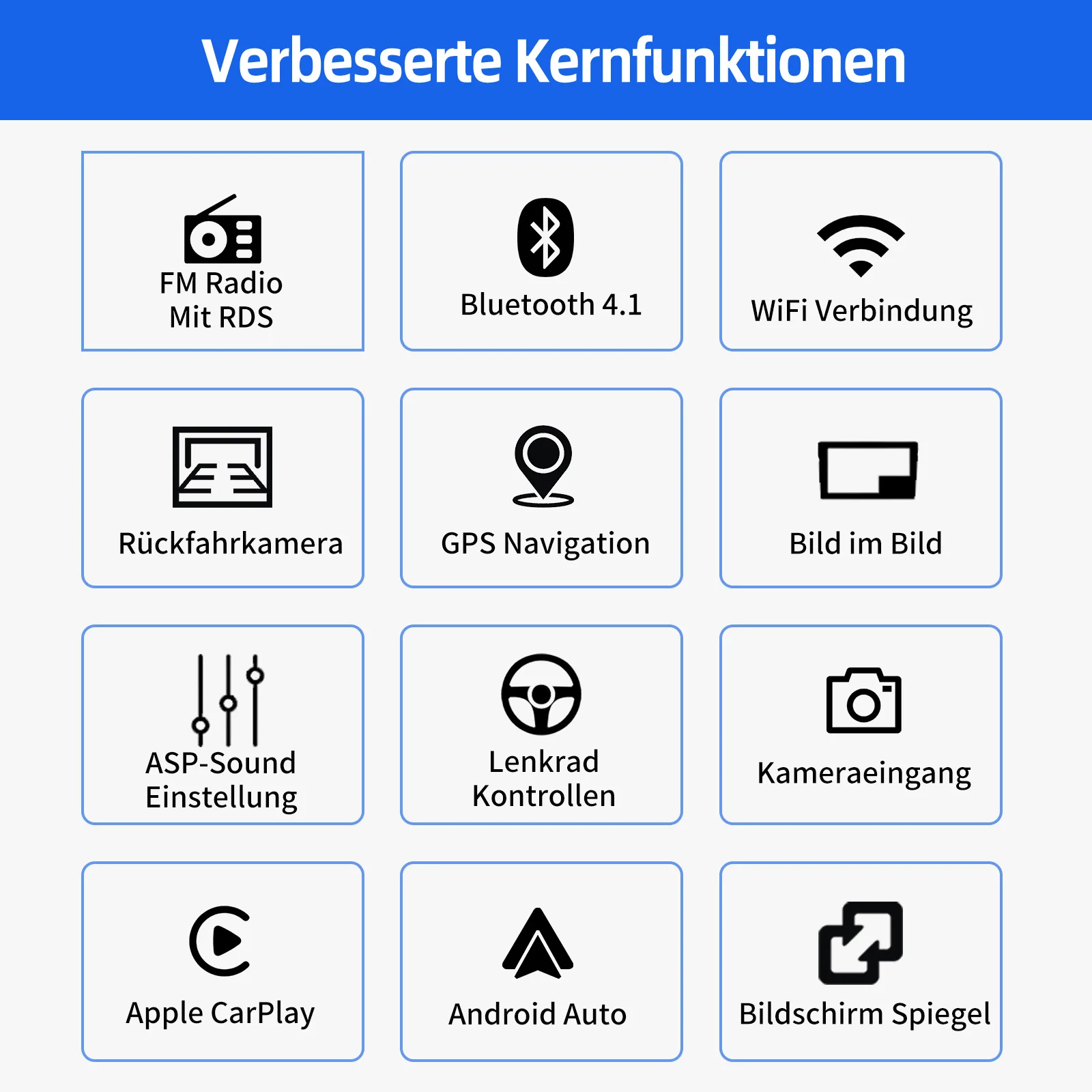 :  Unterstützt Bluetooth 4,1, mit integriertem Mikrofon und Lautsprecher, damit Sie während der Fahrt freihändig telefonieren können. Unterstützt den Zugriff auf das Telefonbuch, die Musikwiedergabeschnittstelle usw.  RDS unterstützt. Sie können 18 FM Radiosender speichern. Eingebauter ASP-Chip. Unterstützt 32-Band-EQ-Einstellung, die nach Ihren persönlichen Vorlieben eingestellt werden kann.Der Ihrem Originalsound sehr ähnlich ist.4 x 45W Verstärker, Surround-Sound und Subwoofer-Ausgang.