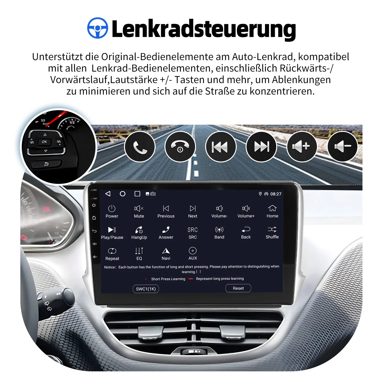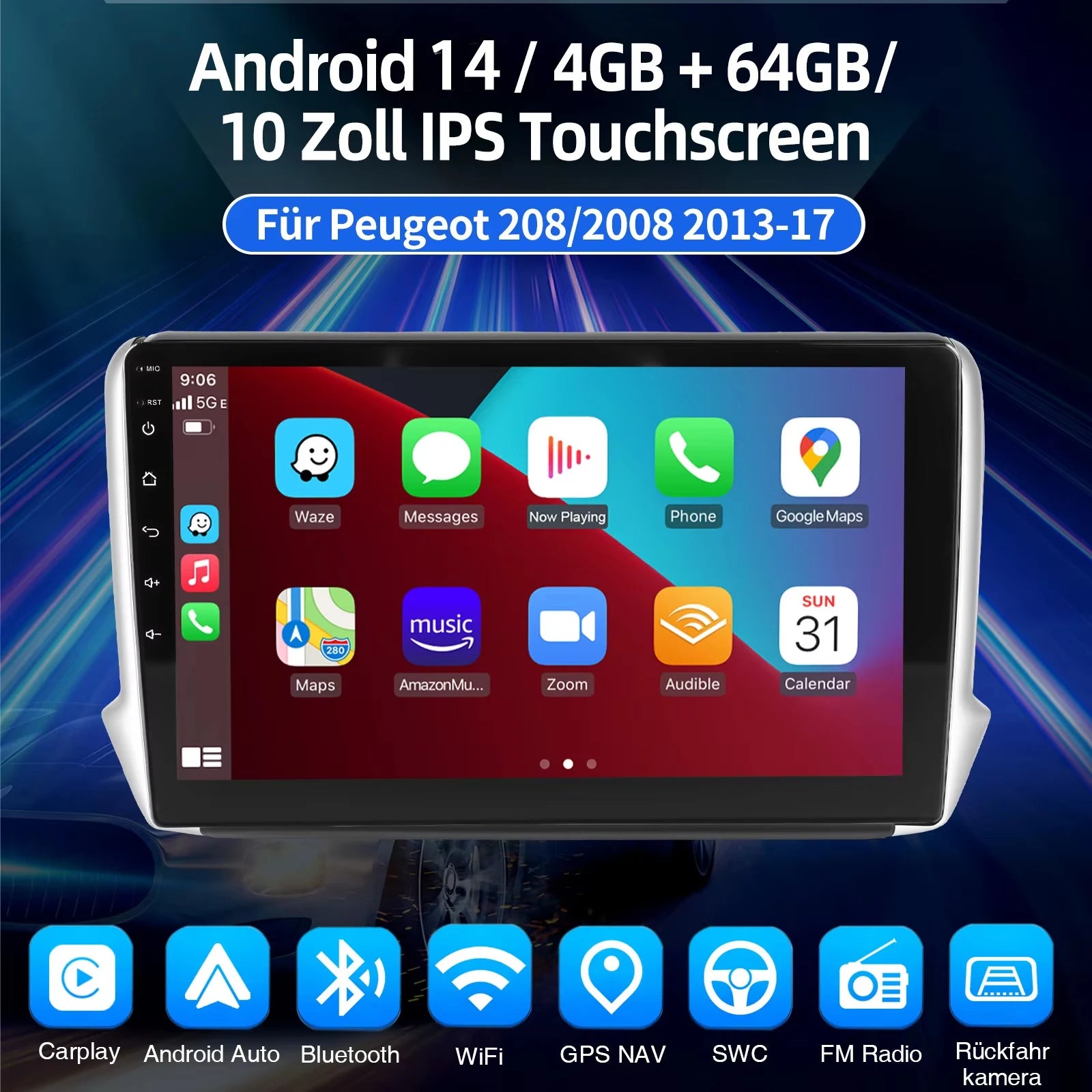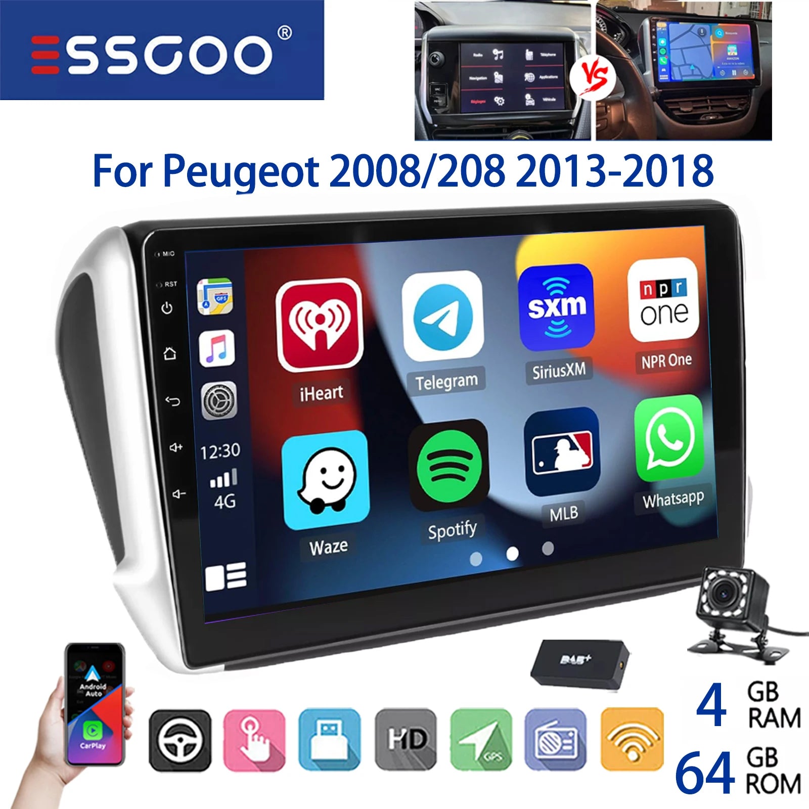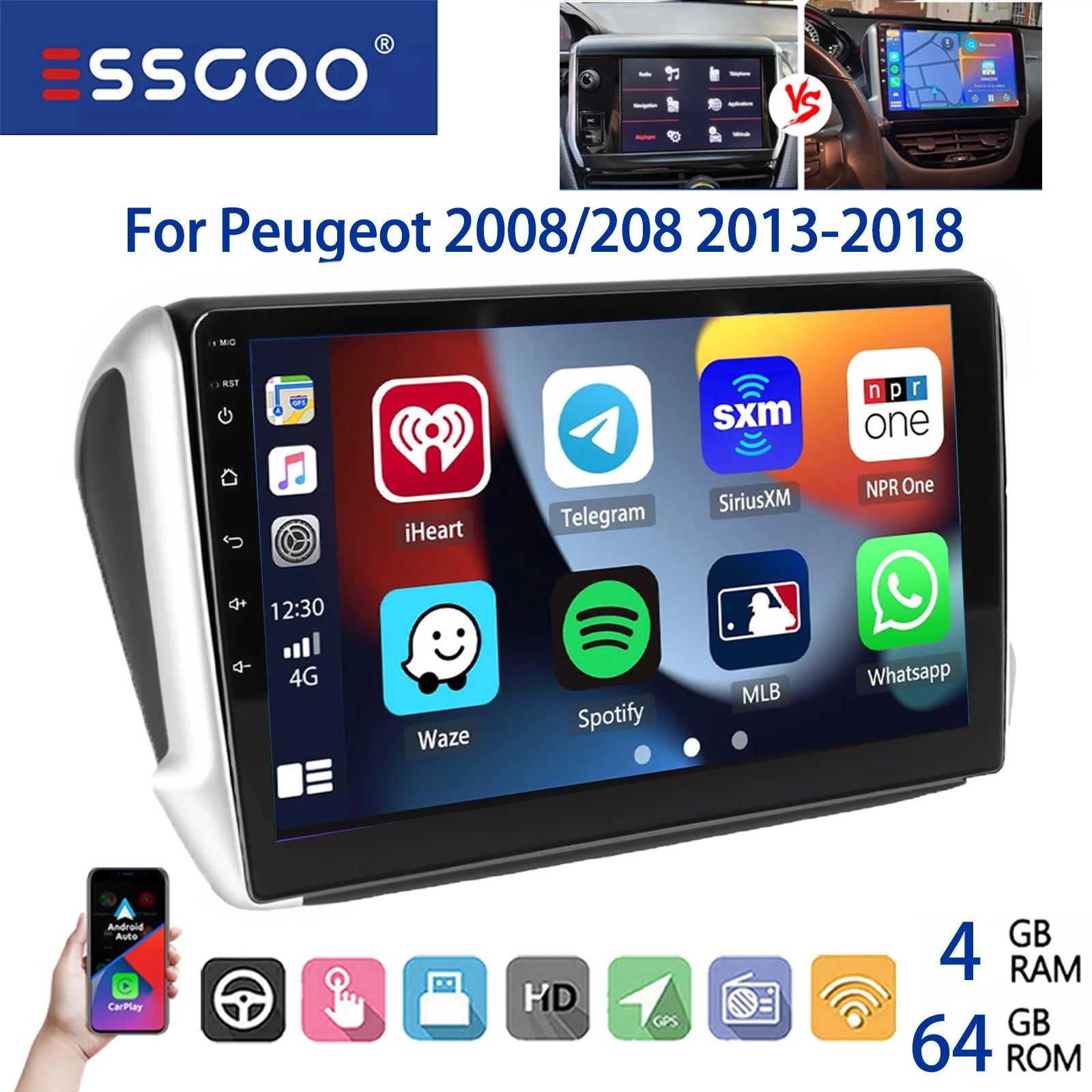 ESSGOO Android 14 For Peugeot 208 12-18 10"Display Car Stereo Radio GPS Navi Carplay Android Auto Wifi BT FM RDS Mirror Link SWC