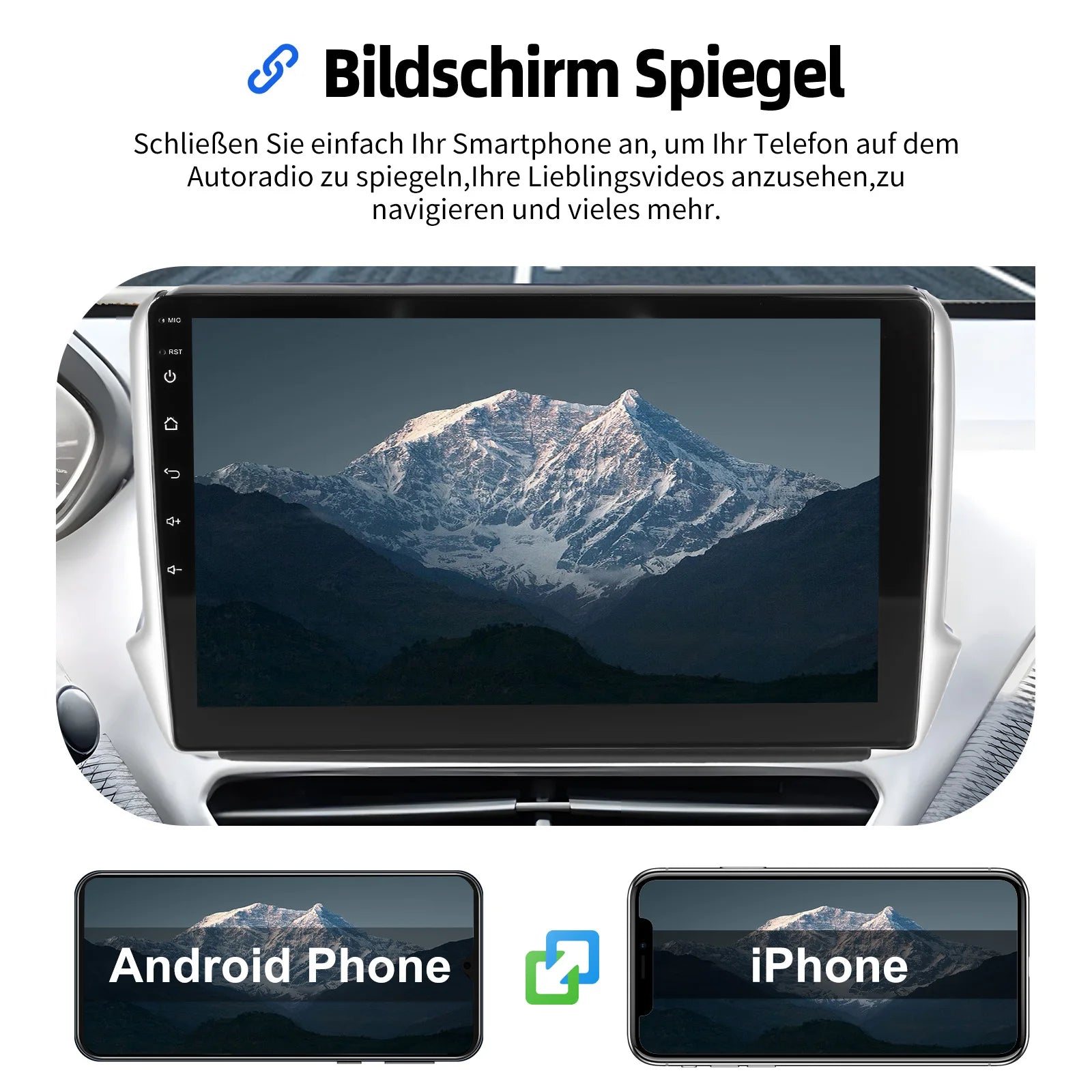 Bildschirm Spiegelfür iOS/Android: Das Autoradio unterstützt Mirror Link für iOS/Android-Telefone. Nachdem Sie das Radio angeschlossen haben, können Sie die Telefonseite mit dem 10-Zoll-Touchscreen des Radios synchronisieren. Das iPhone stellt eine Verbindung über WLAN her, und das Android-Telefon stellt eine Verbindung über WLAN oder das Original-USB-Kabel her (gilt nicht für Samsung- und Huawei-Telefone).