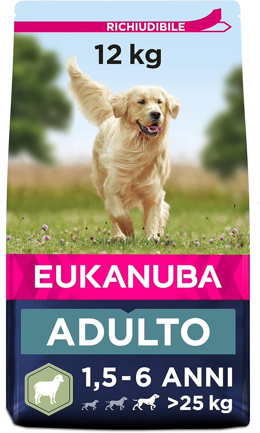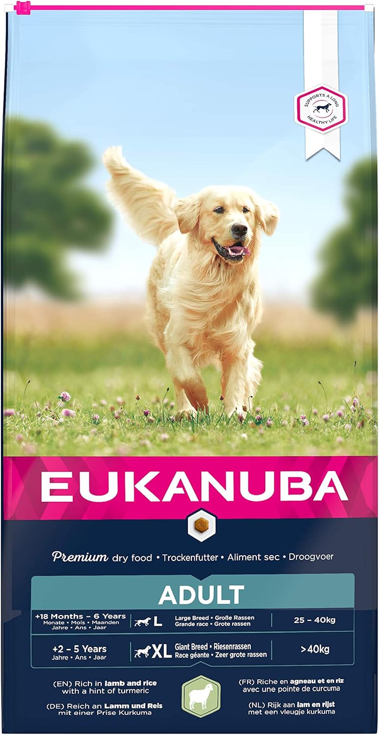 Eukanuba Cibo Secco per Cani Adulti Attivi di Taglia Grande, Ricco di Agnello e Riso, 12 kg