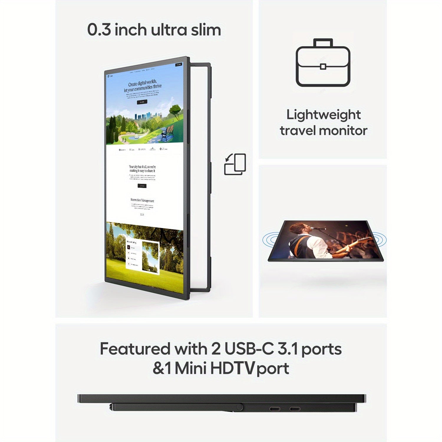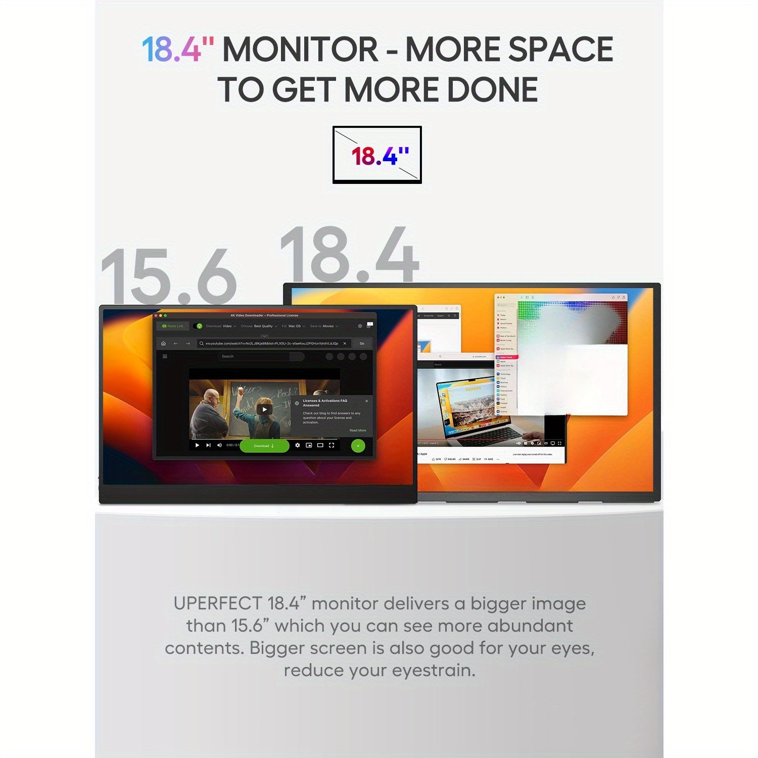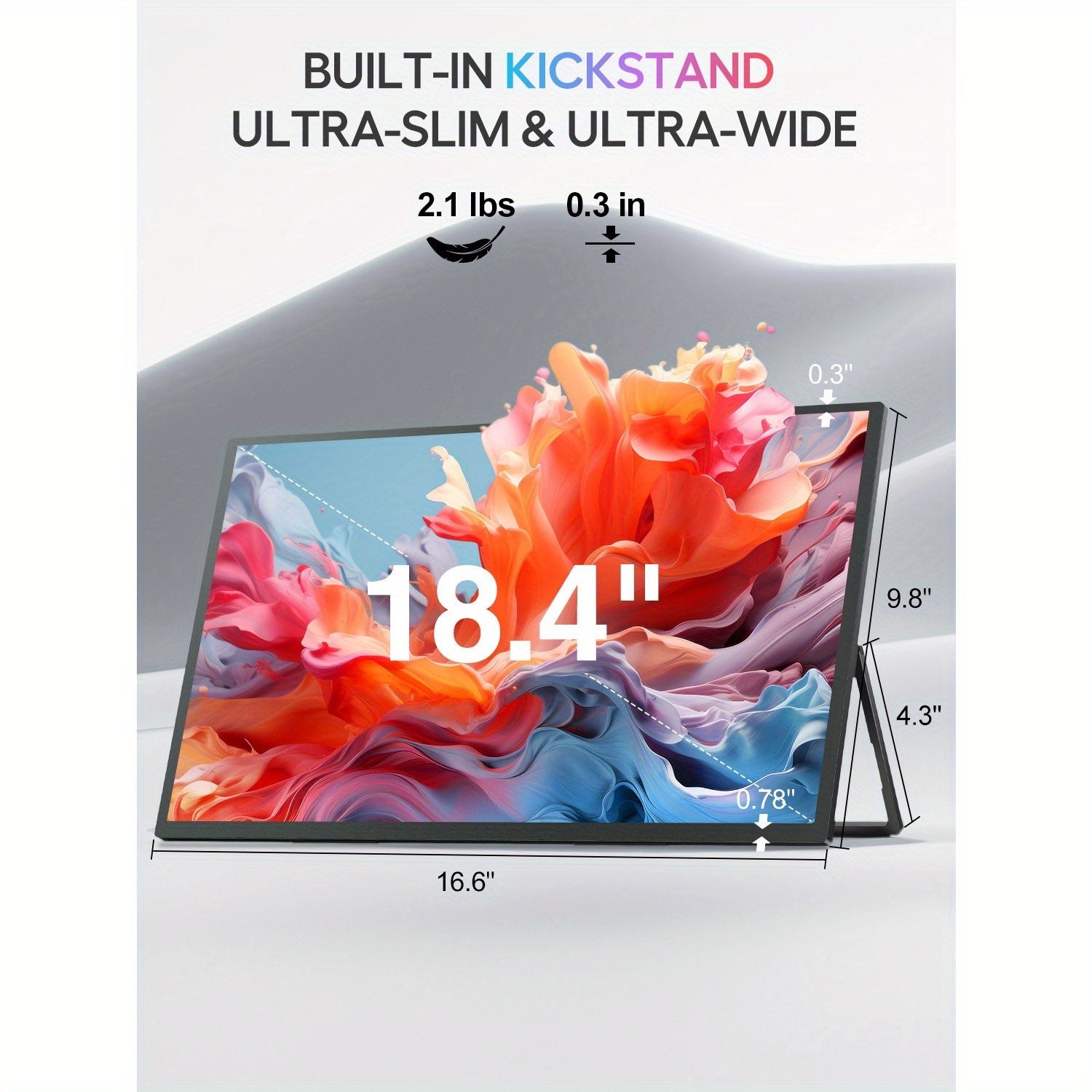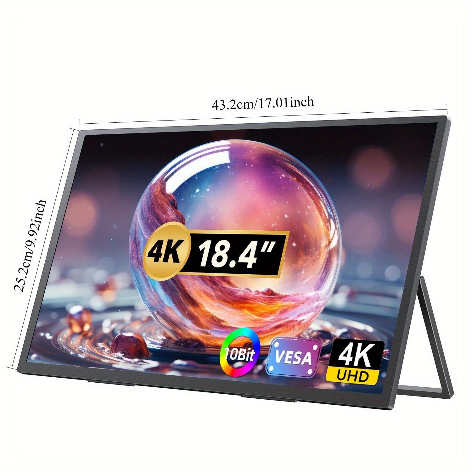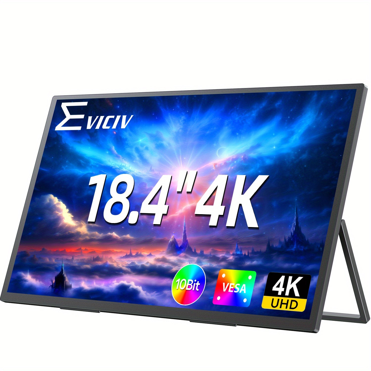 EVICIV Monitor Portatile 18.4" 4K 60Hz HDR IPS con Supporto VESA e Base, Design Ultra-Slim Regolabile a 180° Senza Cornice Leggero, USB-C, per Laptop/pz/Viaggio, Ufficio Domestico, Display Premium Freesync, per Gamer