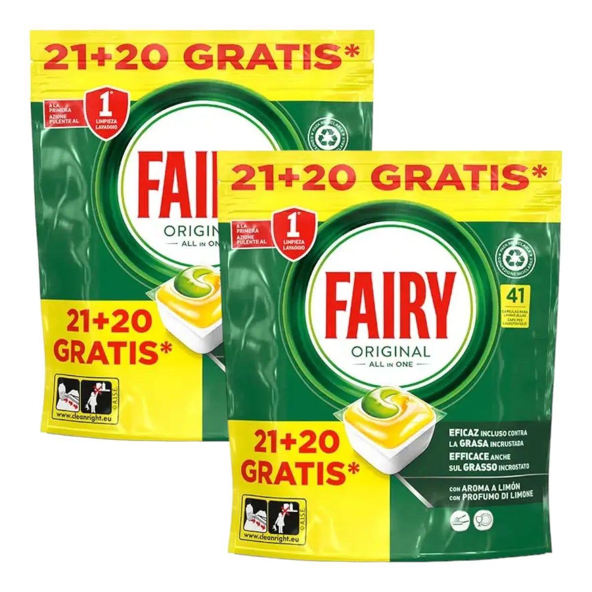 Fairy Original All in One - Confezione da 2 sacchetti da 41 capsule per lavastoviglie (82 capsule) - Elimina grassi e traffico, detersivo con aroma pulito e fresco