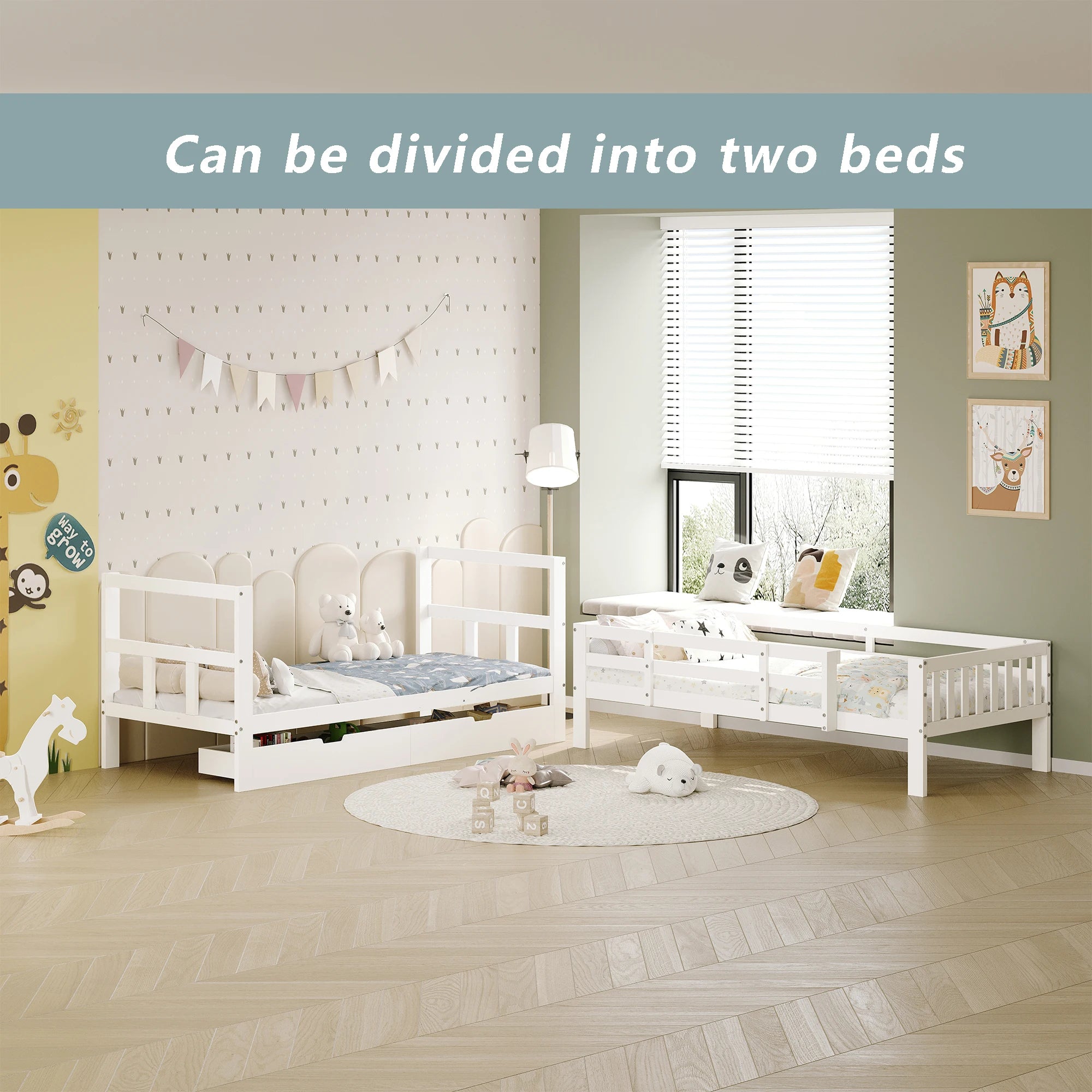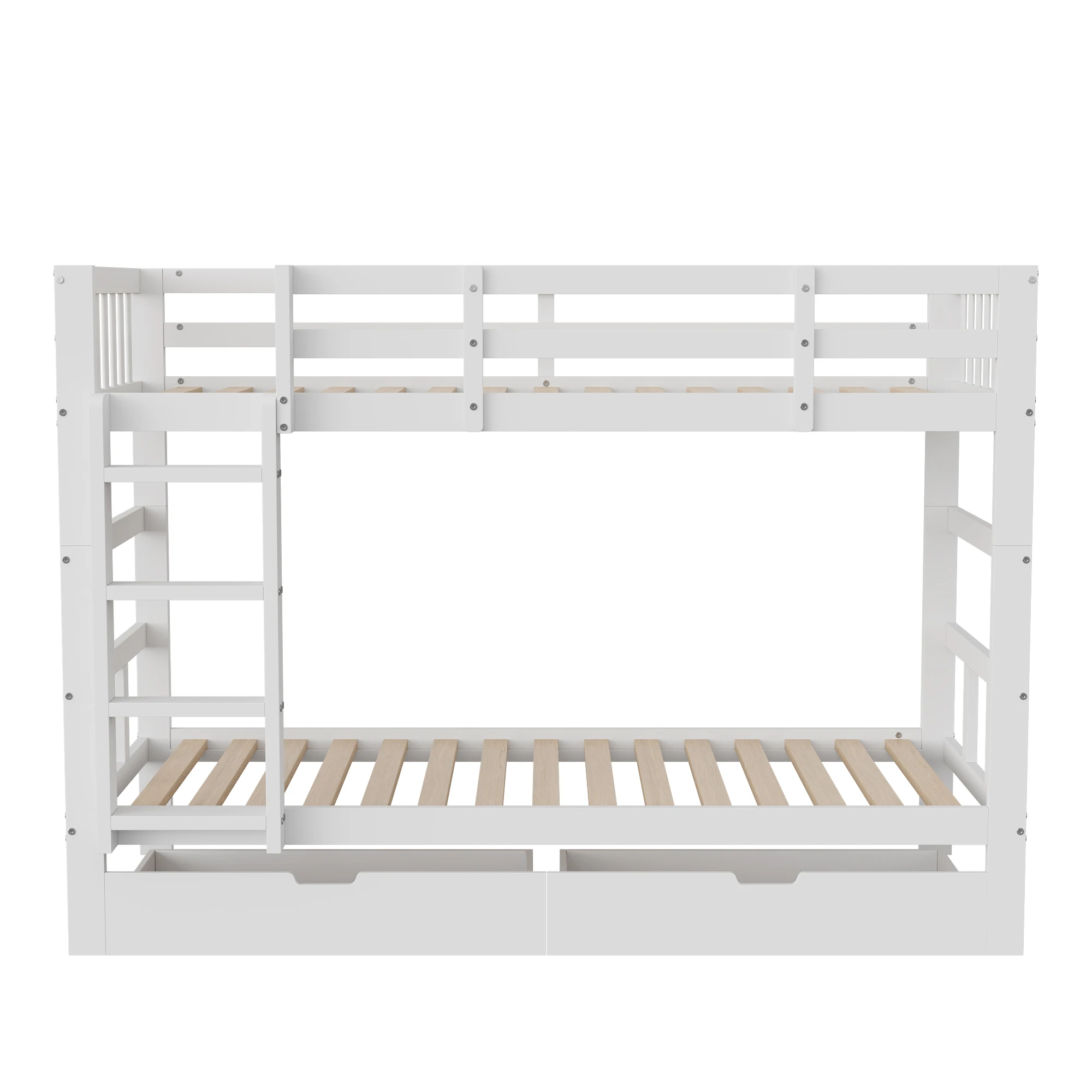 Fanganeg Letto a castello per bambini con scaletta, divano letto estraibile 90 x 200 cm con 2 basi a doghe, letto a castello con barriera di sicurezza, bianco