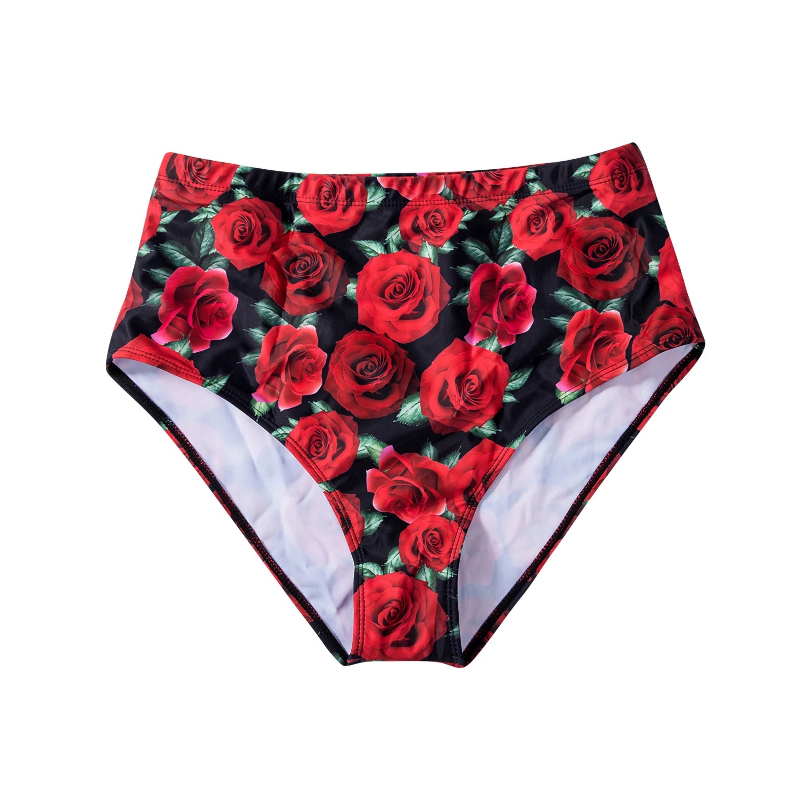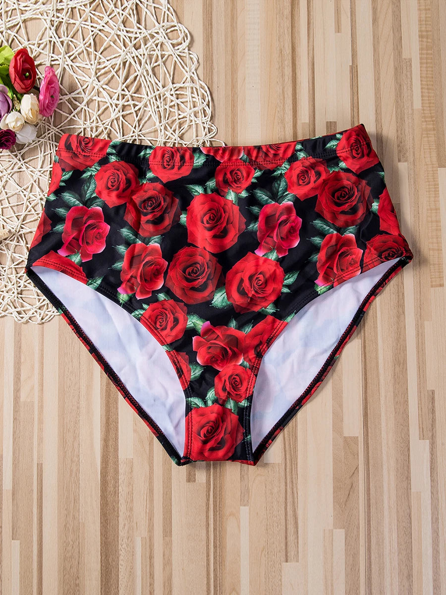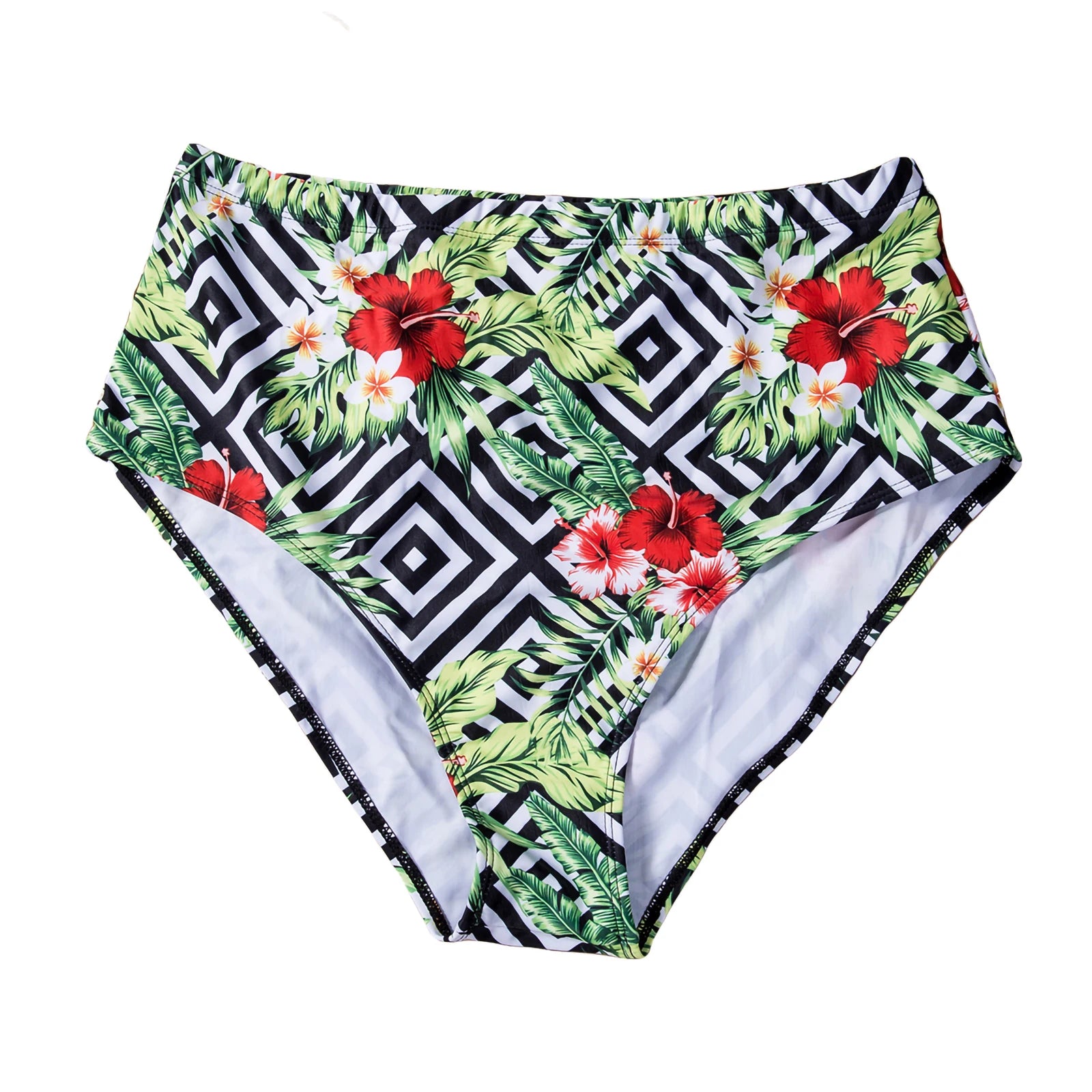 Fashion Summer Women's High Waist Swimsuit Bikini Bottoms Tankini Bottom Swim Shorts Plus Size Floral Print Shorts