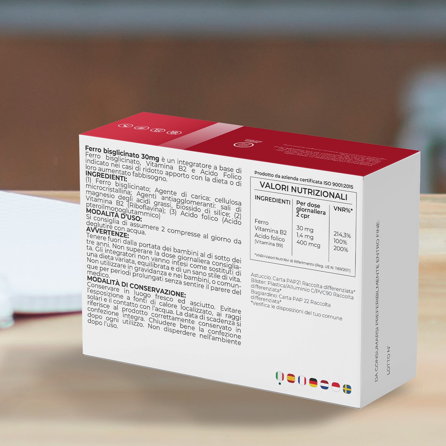 Ferro Integratore 30 mg Con Acido Folico e Vitamina B2-160 compresse - Per Globuli Rossi, Ossigeno, Sistema Immunitario, Stanchezza e Benessere Mentale