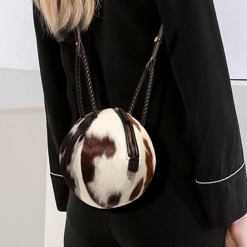 FFOrder Fur And Leather Contrast Color Versatile Shoulder Bag