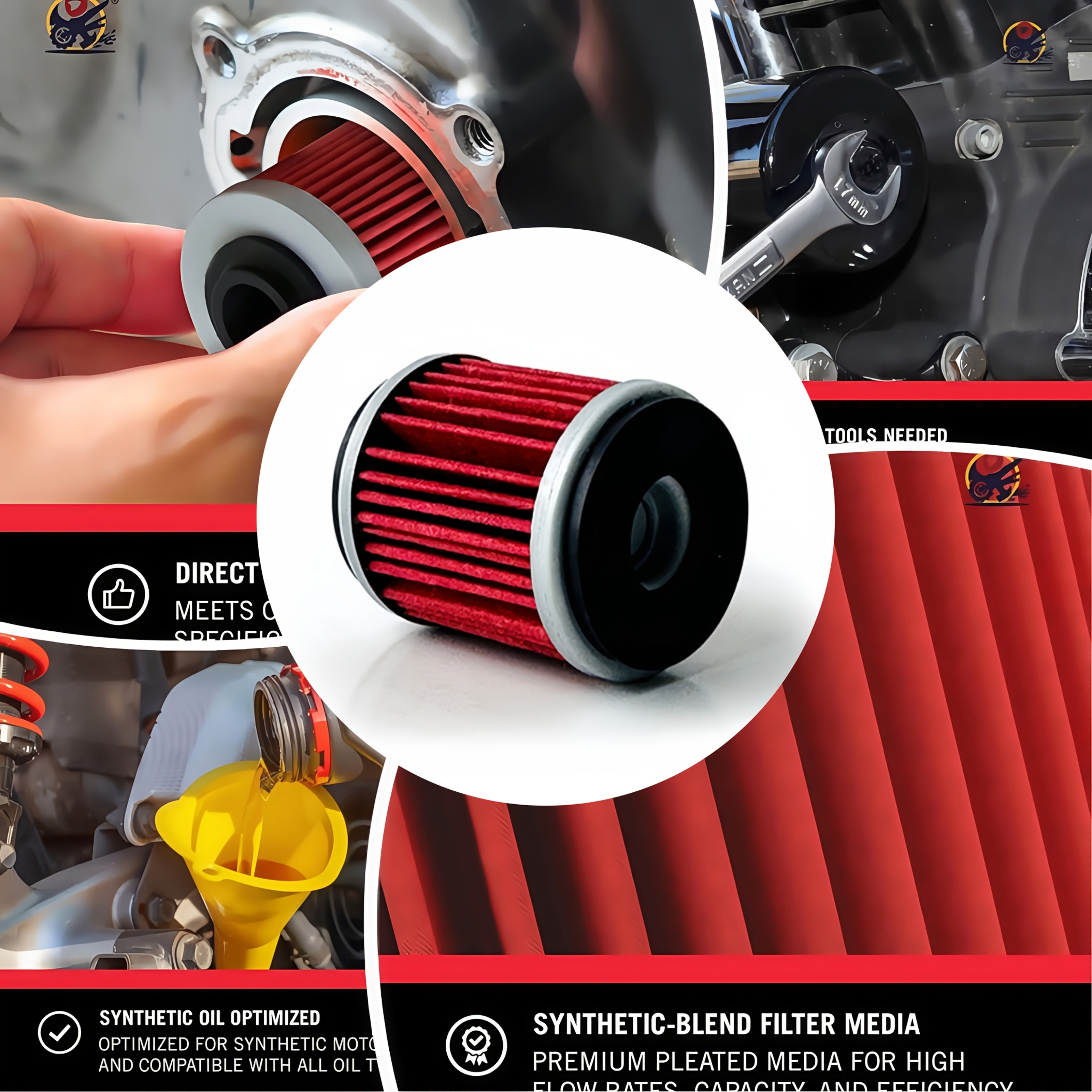 Filtro Olio per Moto in Acciaio Inossidabile - Montaggio Diretto per Yamaha WR250F/WR450F, XMAX300, Benali TRK251 e Altri, Mezzo di Miscela Sintetica, Prevenzione delle Perdite d'Olio, Protezione del Motore Migliorata