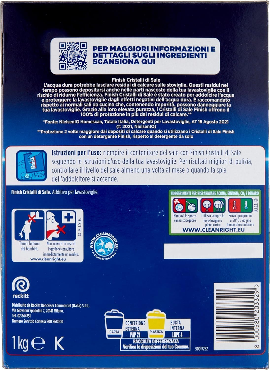 Finish Cristalli di Sale, 1 kg di Sale per Lavastoviglie, Additivo Lavastovigle contro l'Accumulo di Calcare