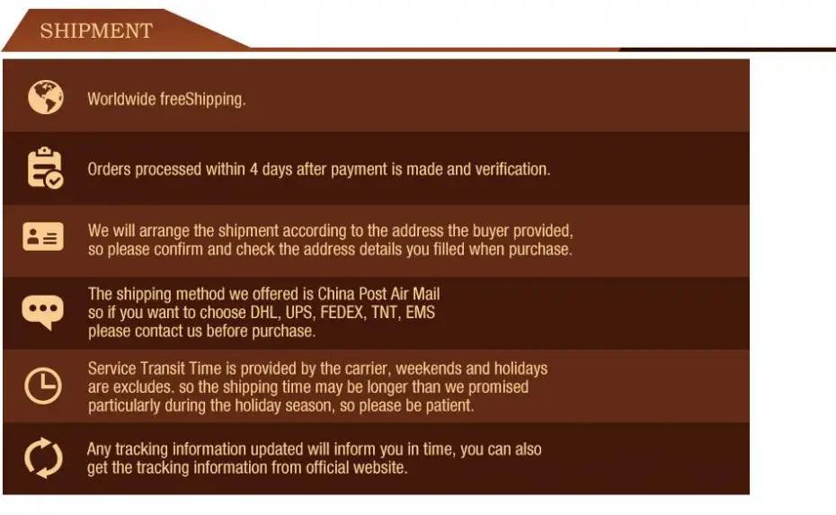 - tutti i prodotti di riparo82 vengono spediti 2 o 6 giorni lavorati
