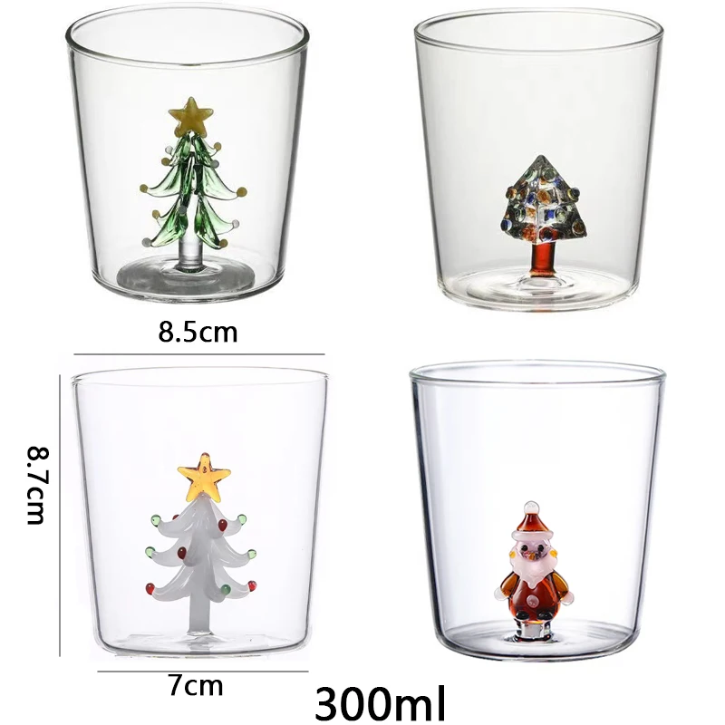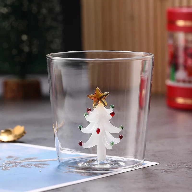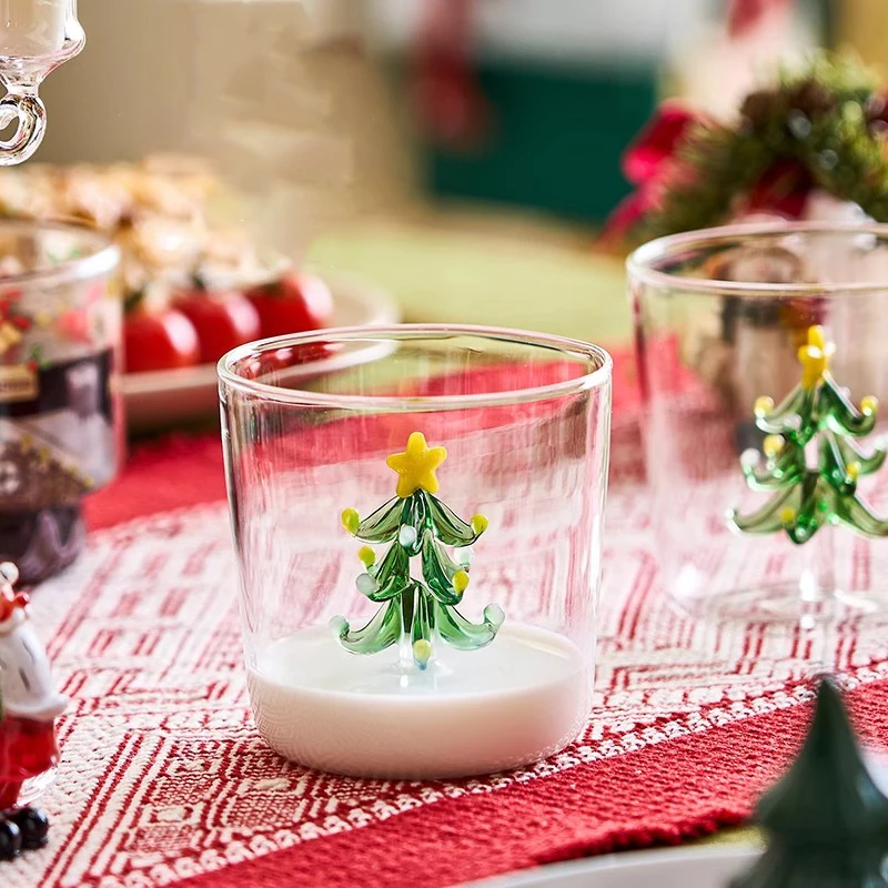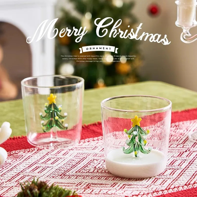 FOME Tazza di vetro creativa 1/2 pezzi Albero di Natale Caffè resistente al calore Tazza da latte Tè Tazza da caffè espresso Regali di Natale per ragazza