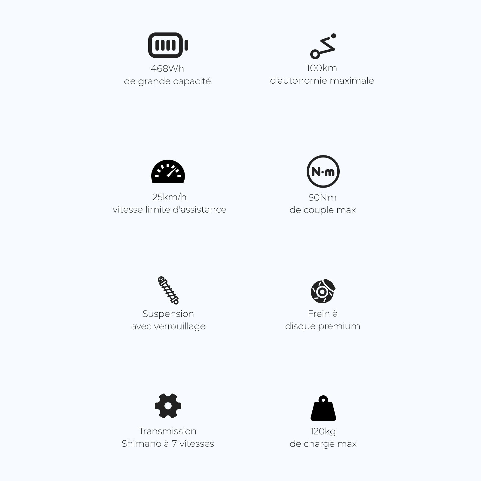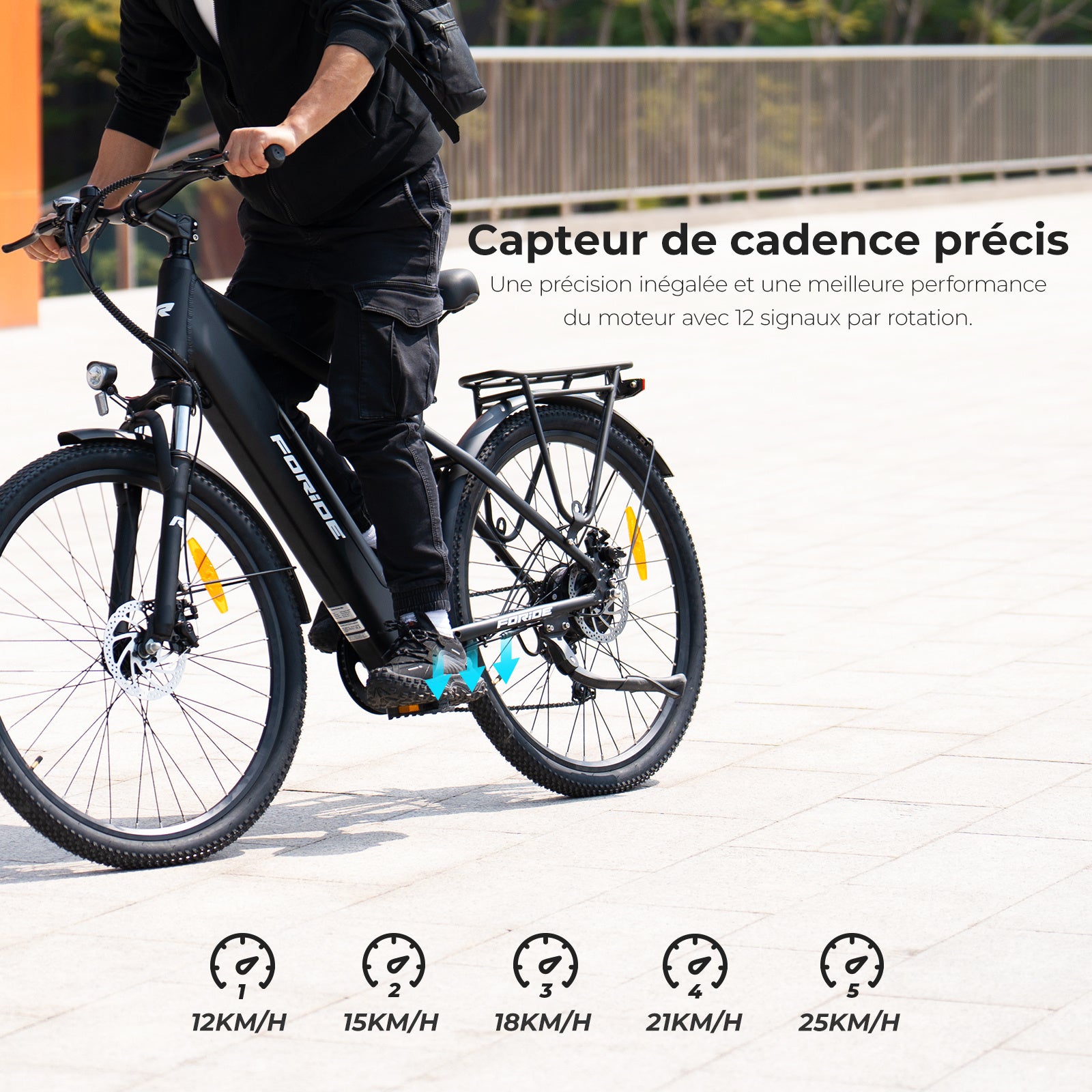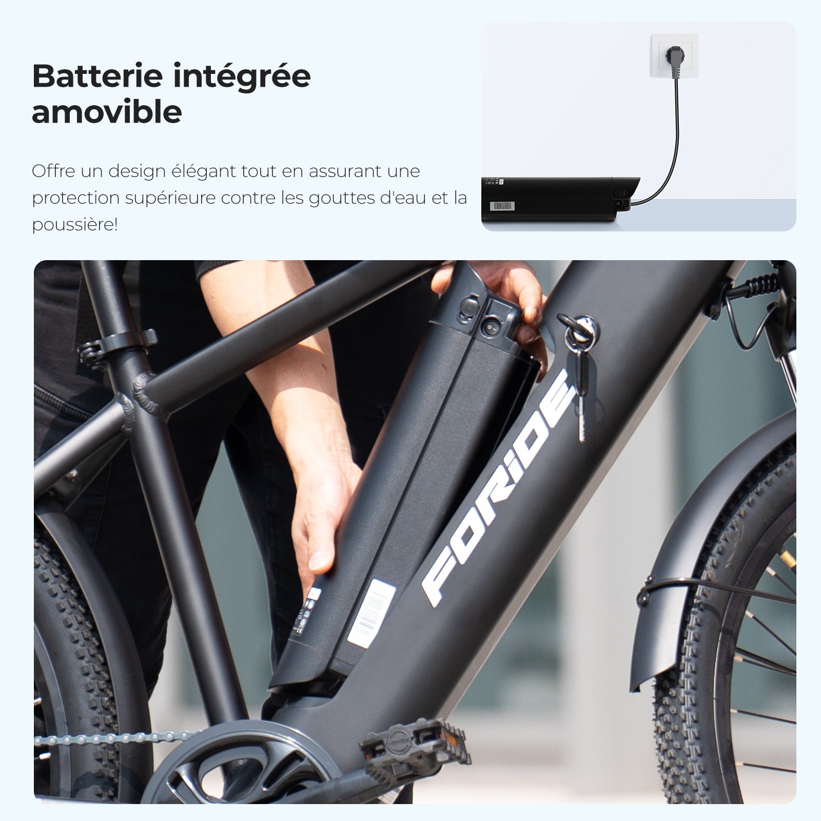 La Foride Roamer 1 è una bicicletta elettrica progettata per adulti, ideale per pendolari urbani. Dotata di un motore da 250W e 7 velocità, offre un'autonomia fino a 100 km in modalità assistita grazie alla batteria rimovibile da 36V 13Ah. La sospensione bloccabile e i freni a doppio disco garantiscono comfort e sicurezza, mentre le luci StVZO e il display LCD migliorano la visibilità e il controllo. Le ruote da 27,5" assicurano stabilità e agilità su diversi terreni. Una scelta affidabile per chi cerca efficienza e praticità negli spostamenti quotidiani.