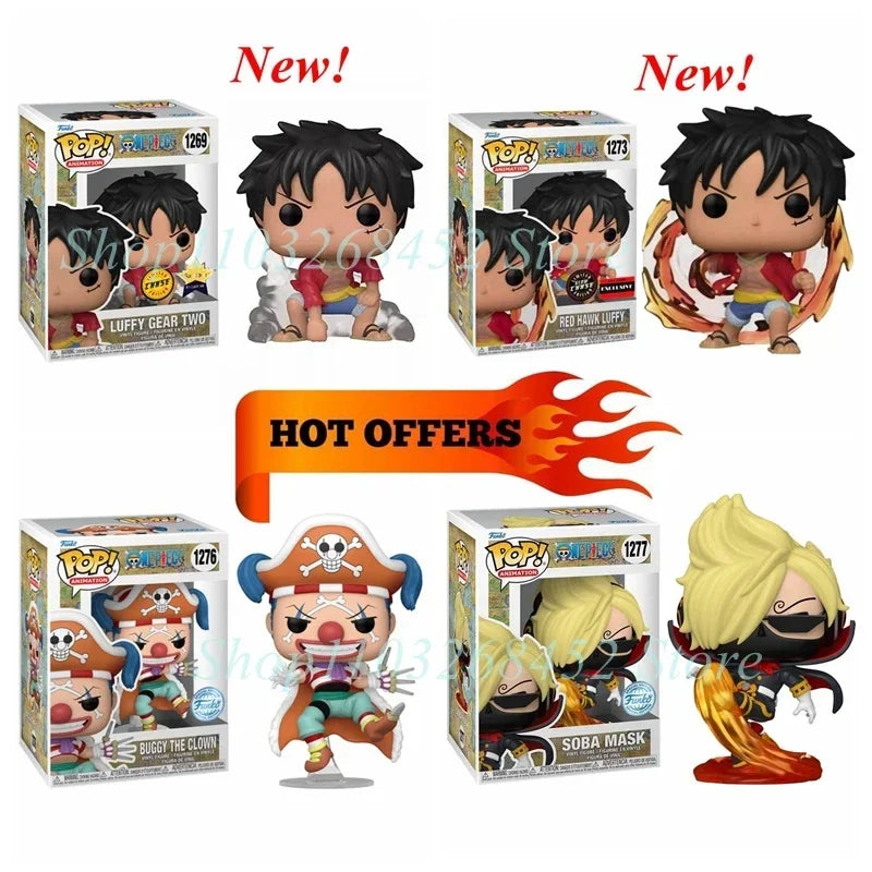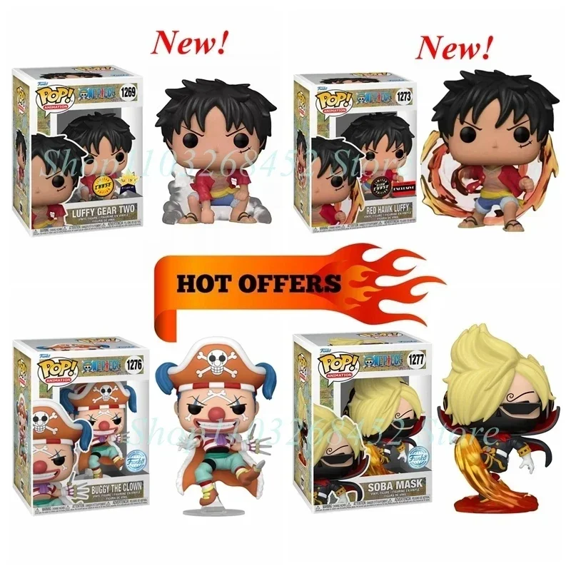 FUNKO POP ONE PIECE # 1273 Red Hawk Rufy Gear Due # 1269 Buggy il Pagliaccio # 1276 Maschera Soba # 1277 Giocattoli di action figure modello per regali