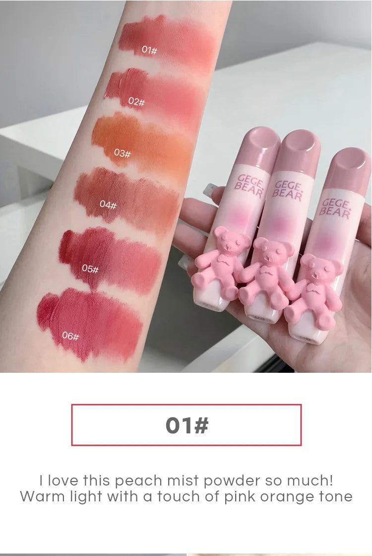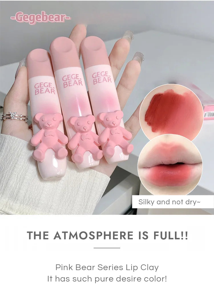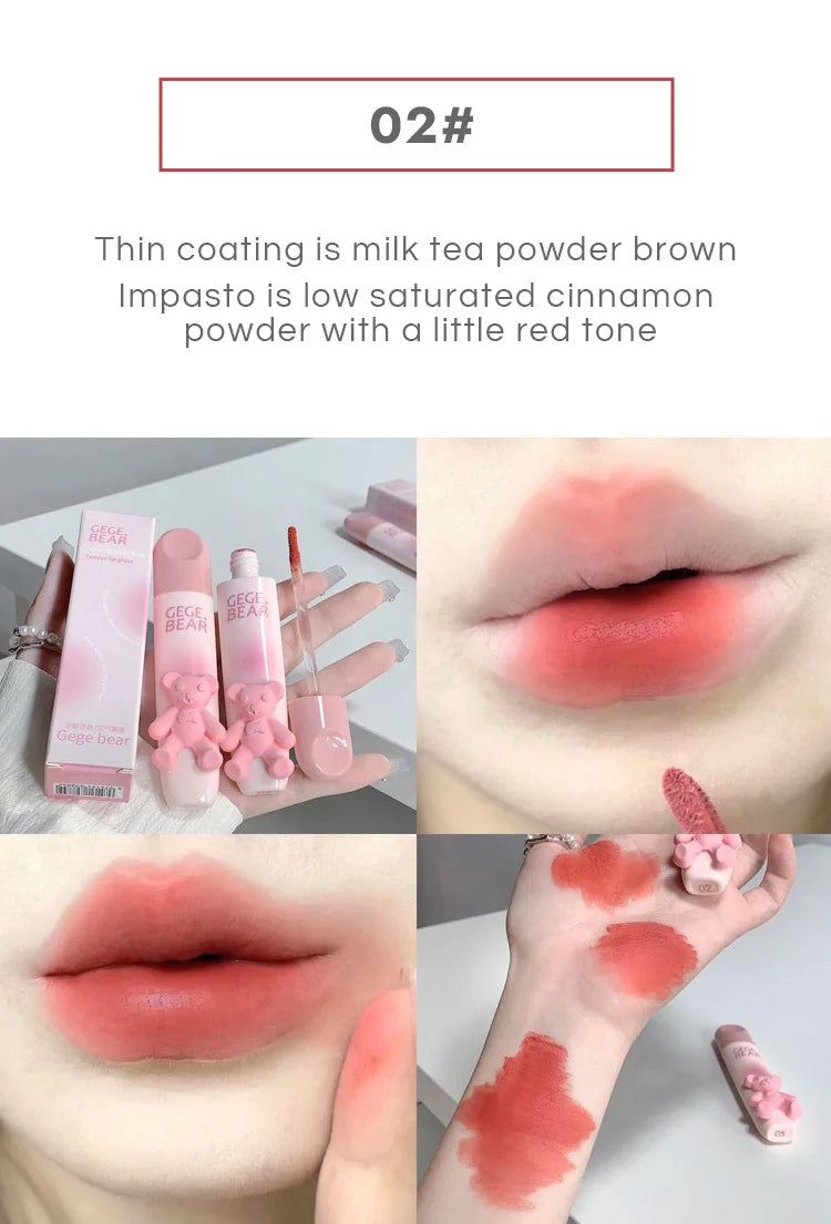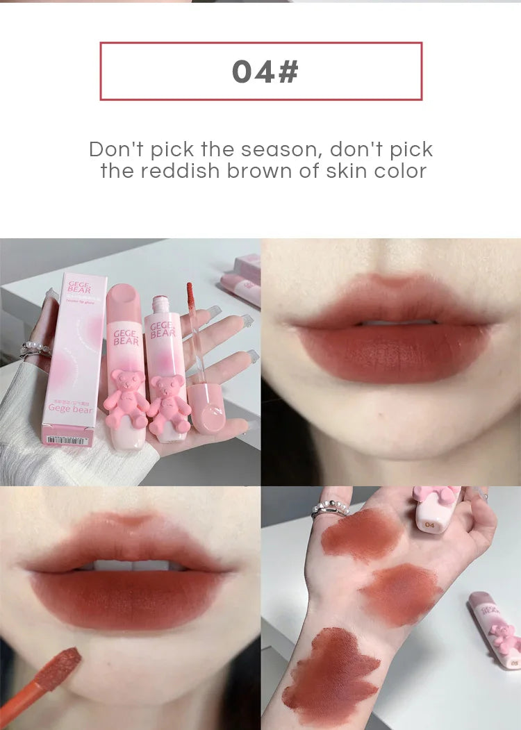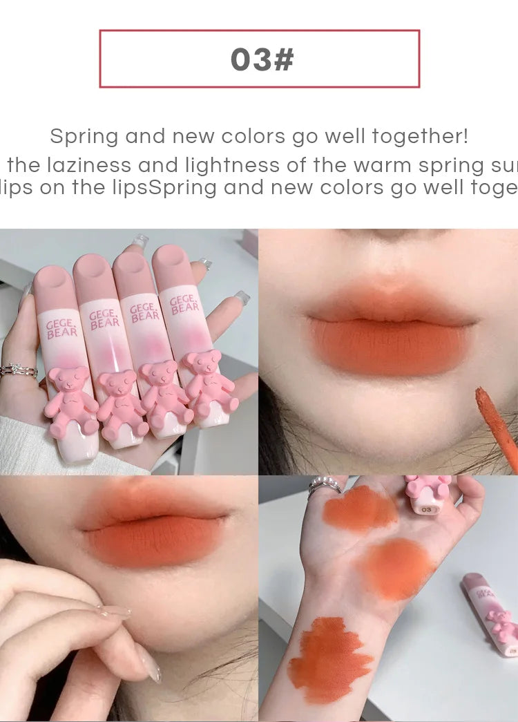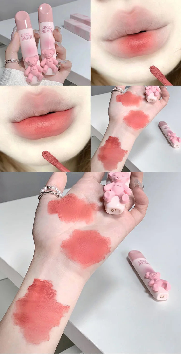Gegebear Bear Lip Glaze Matte Velvet Lipstick Long-lasting Whitening Lip Cream Lip Mud