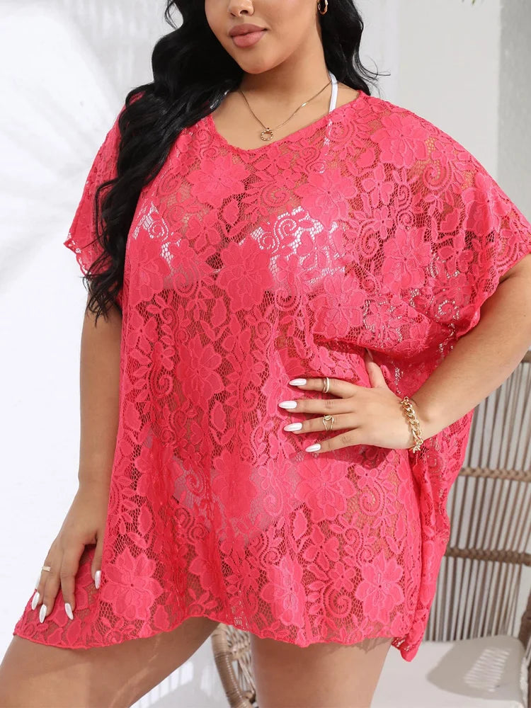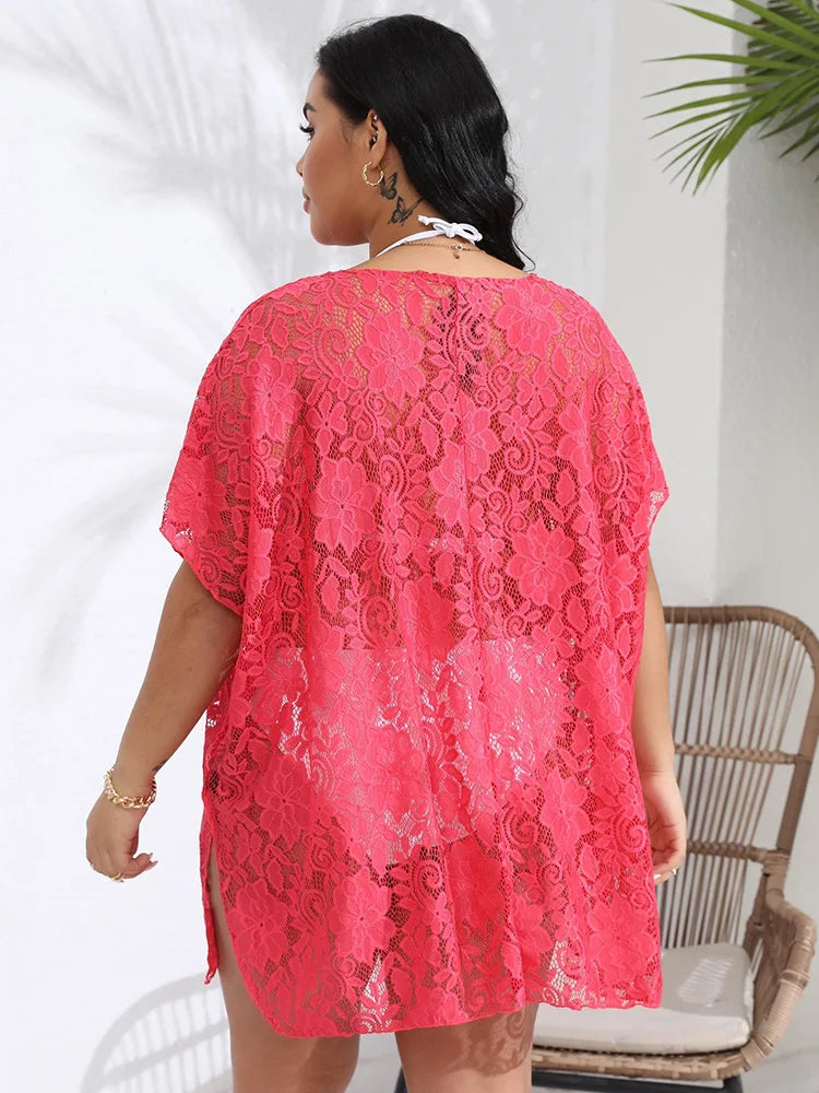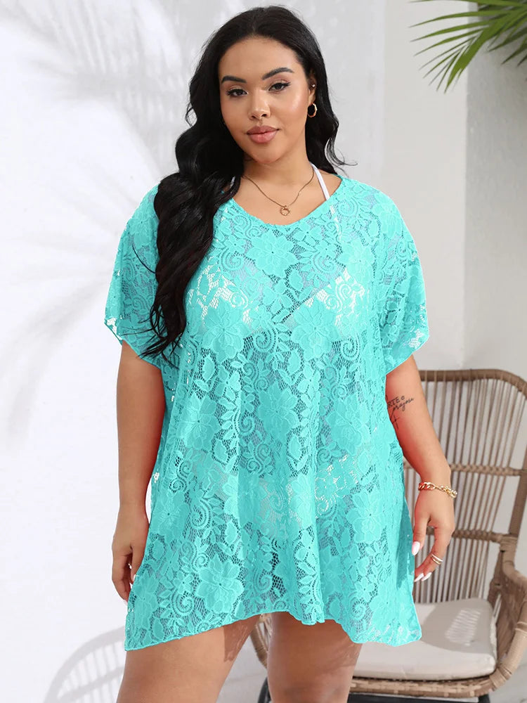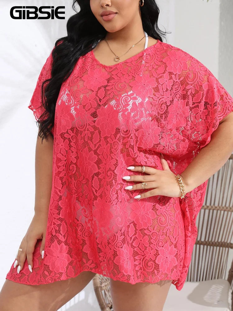 GIBSIE Plus Size Summer Lace Beach Dress Women 2024 Sexy See Through Beachwear Bikini Cover Up Female Tunic Swimwear Cover-ups