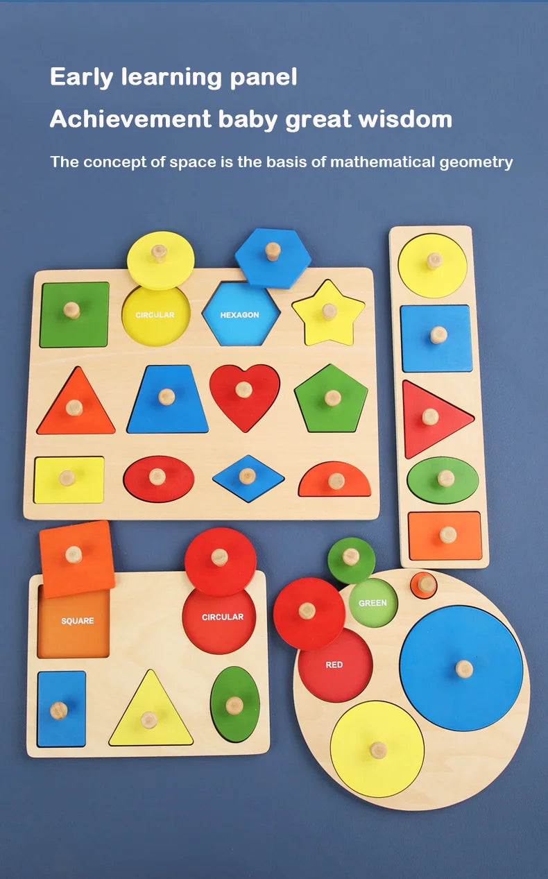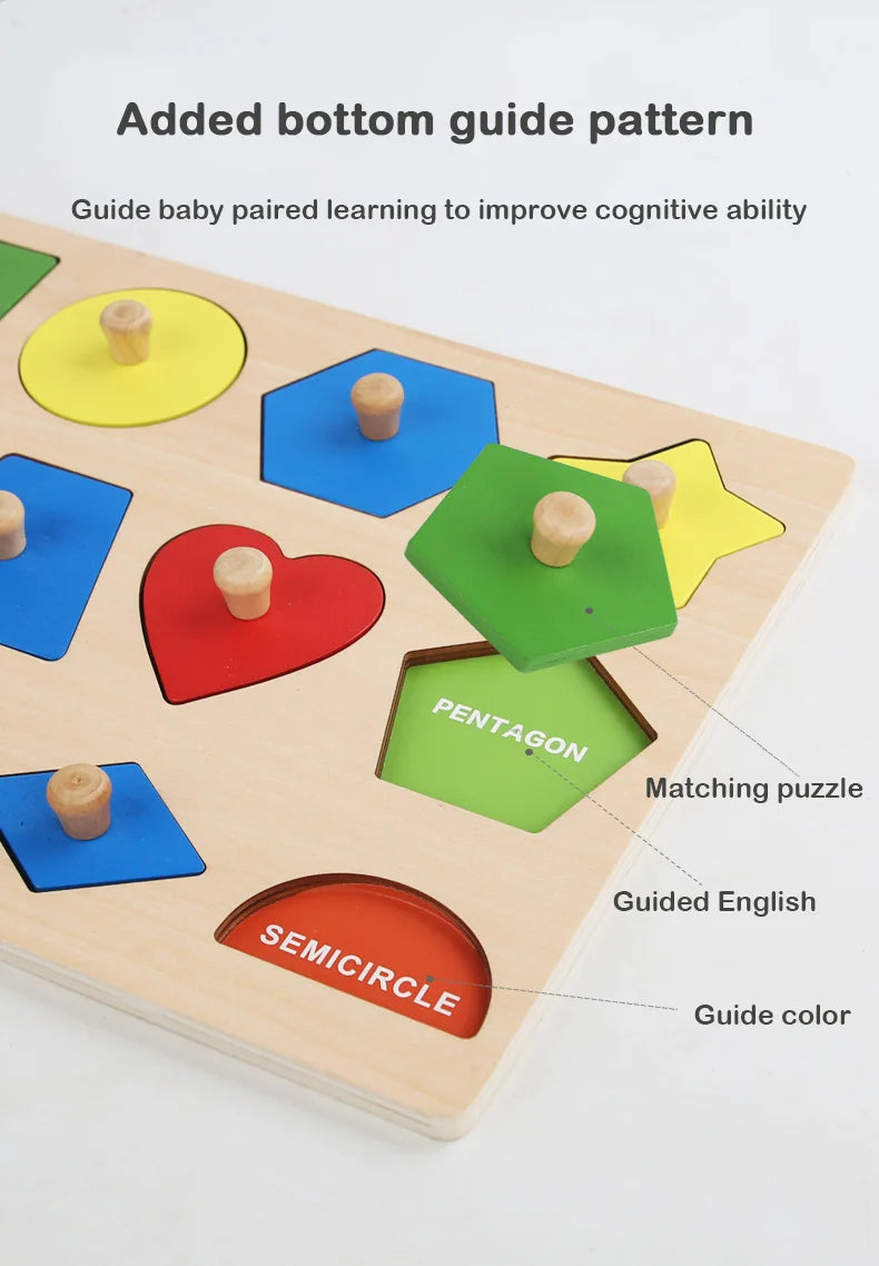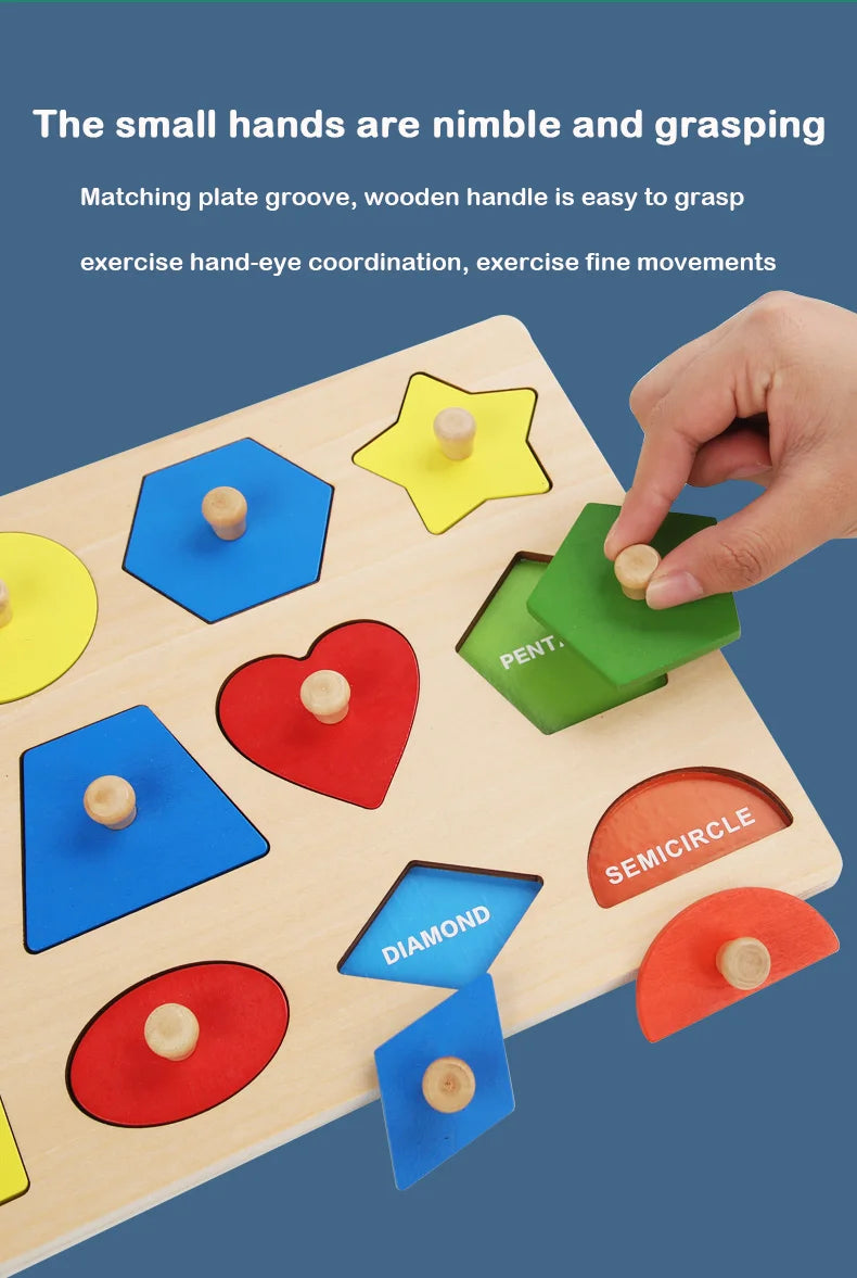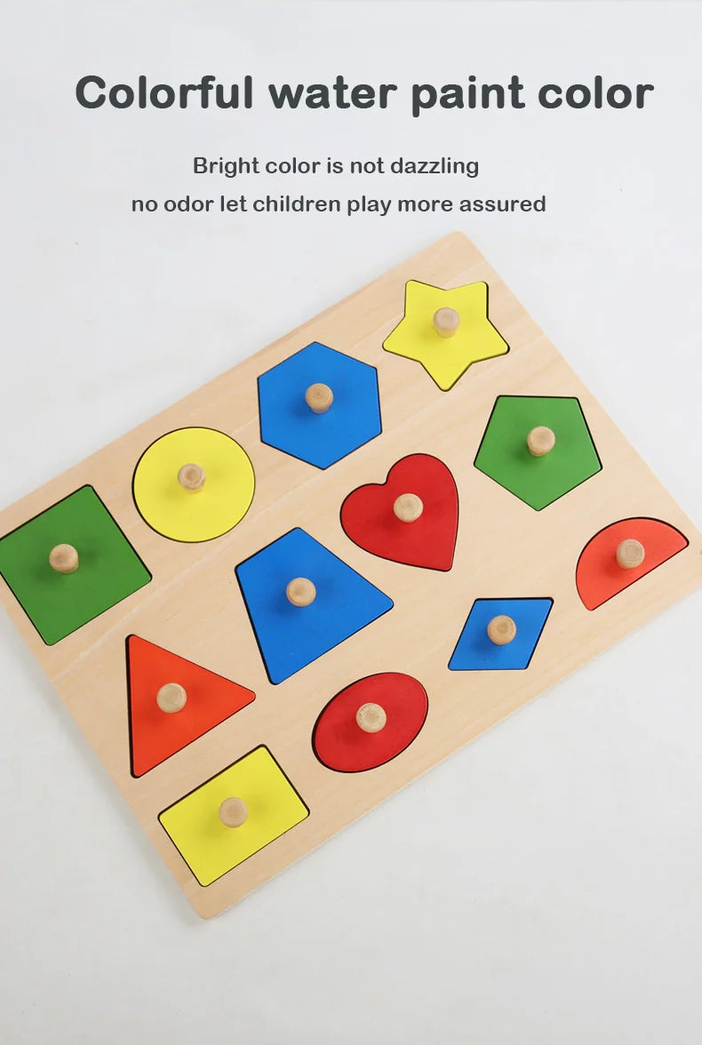Giocattoli puzzle per bambini Montessori, lavagna per graffiare le mani con forme in legno e colori abbinati, giocattoli cognitivi geometrici per l'educazione precoce