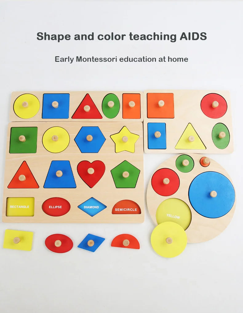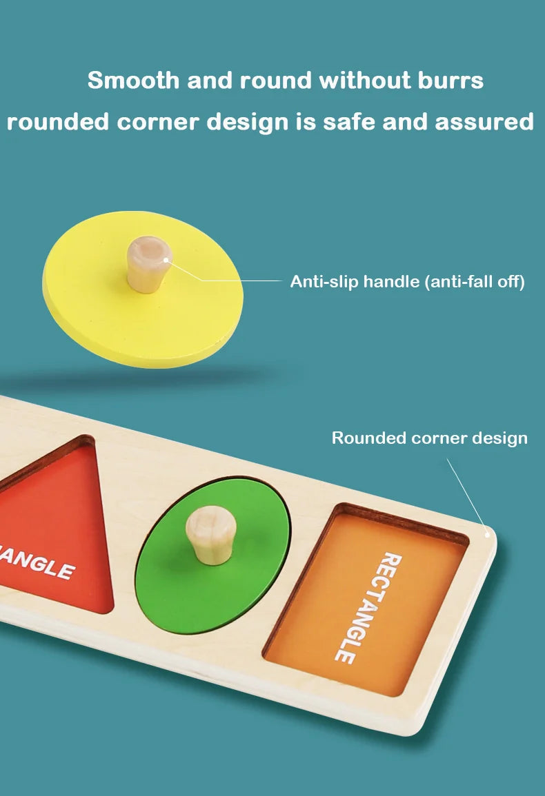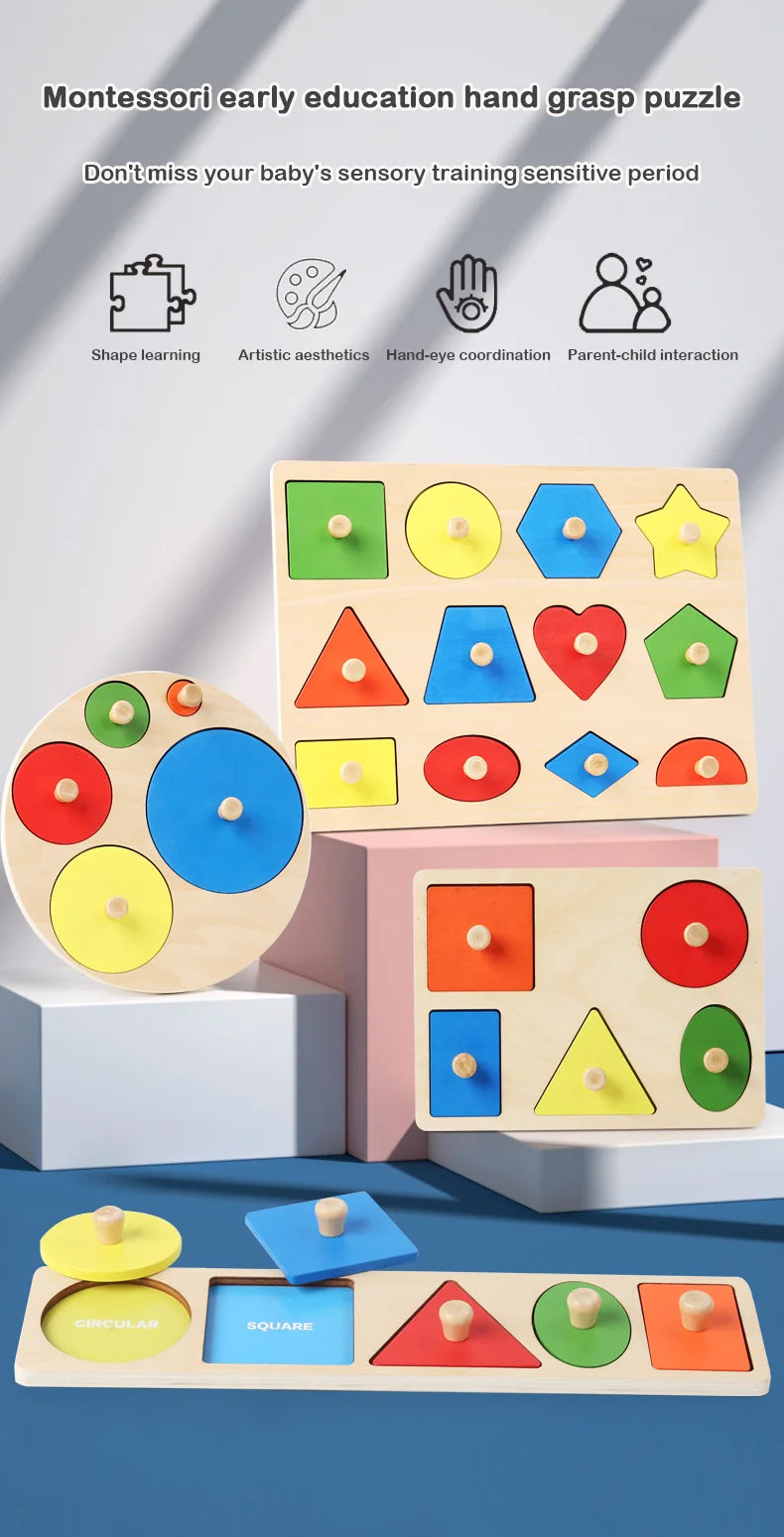 Giocattoli puzzle per bambini Montessori, lavagna per graffiare le mani con forme in legno e colori abbinati, giocattoli cognitivi geometrici per l'educazione precoce